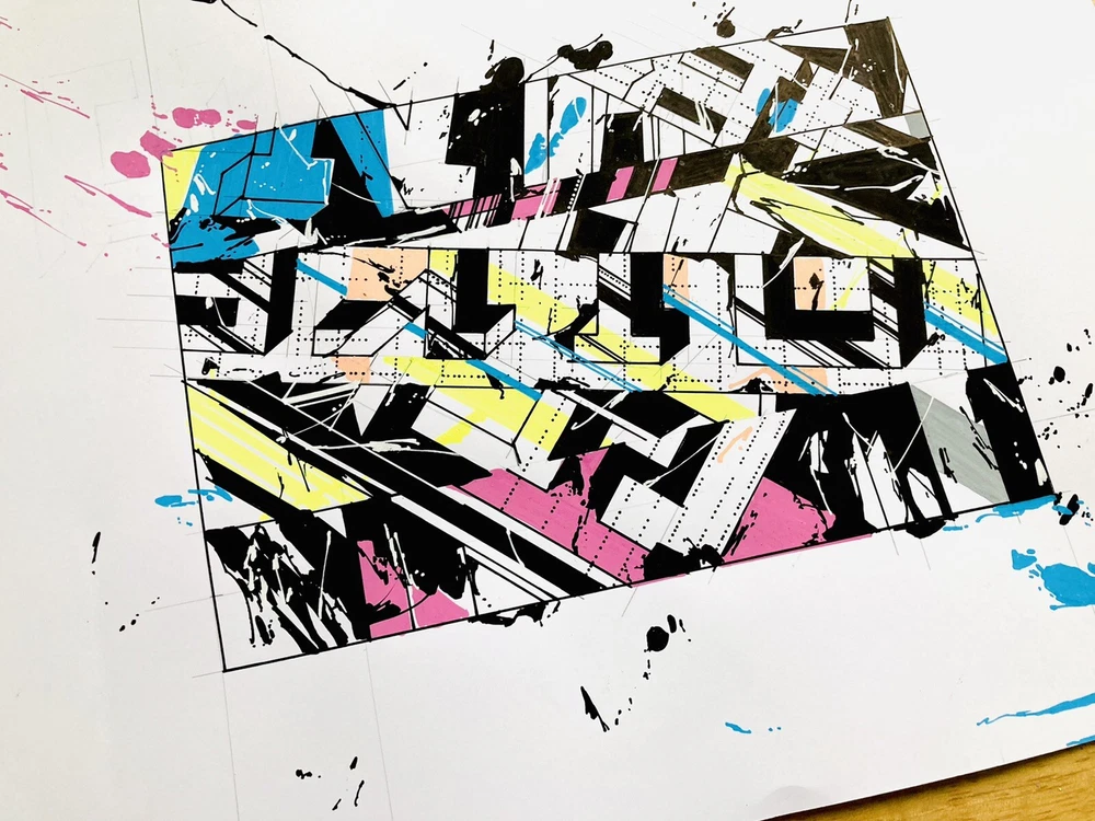 Graffiti-inspired abstract drawing using typographical influences. The piece was created using acrylic paint markers, and drawn on archival paper. The dimensions are 11 X 14 inches.