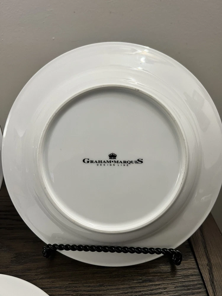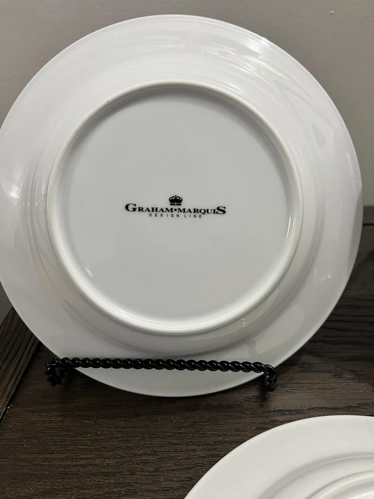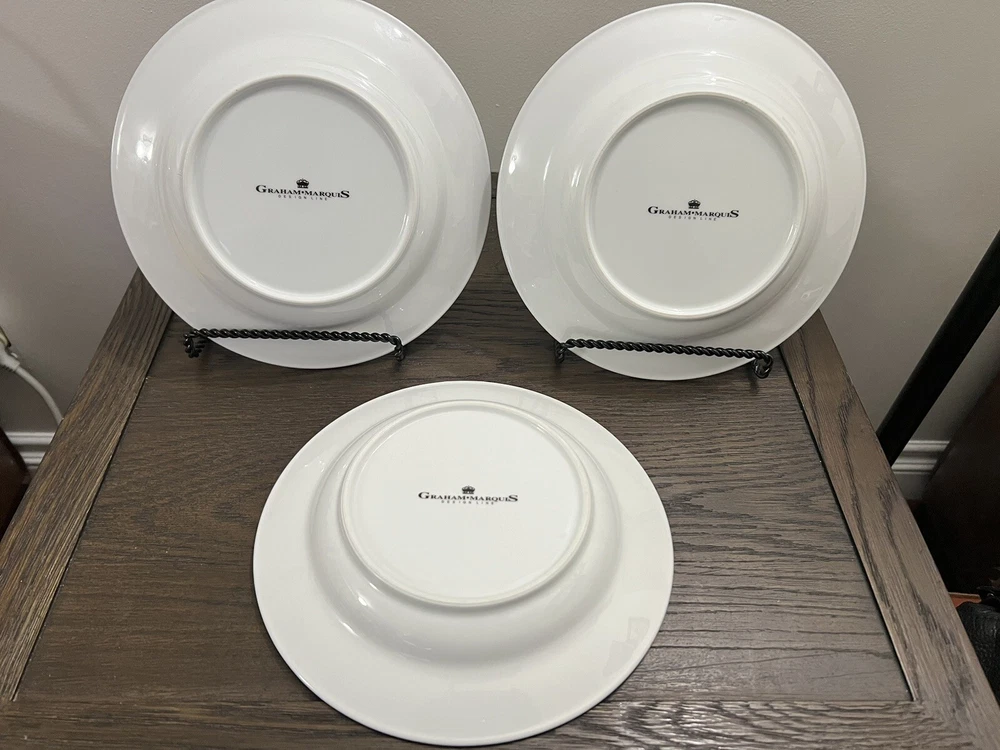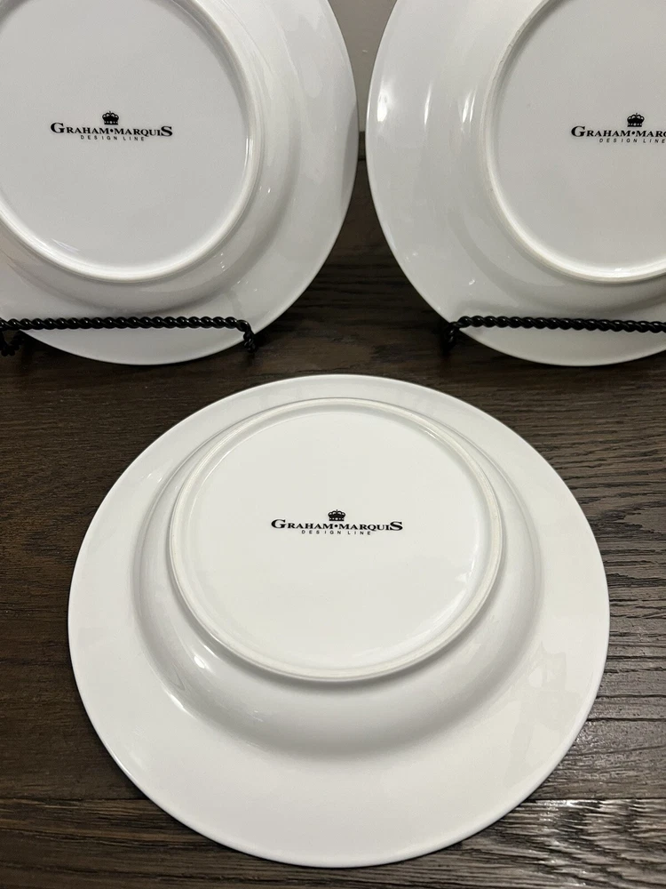 The Graham Marquis Design Line offers an elegant and sophisticated set of 3 salad bowls. Each 9-1/8 inch bowl features a solid white porcelain with a shiny finish, accented with a delicate silver rim. Perfect for all occasions, this bowl is ideal for soups, salads or serving dishes, and can be used for casual dining or special occasions. This three-piece set is an original and cannot be found anywhere else. Invest in quality and style with these Graham Marquis Design Line salad bowls.