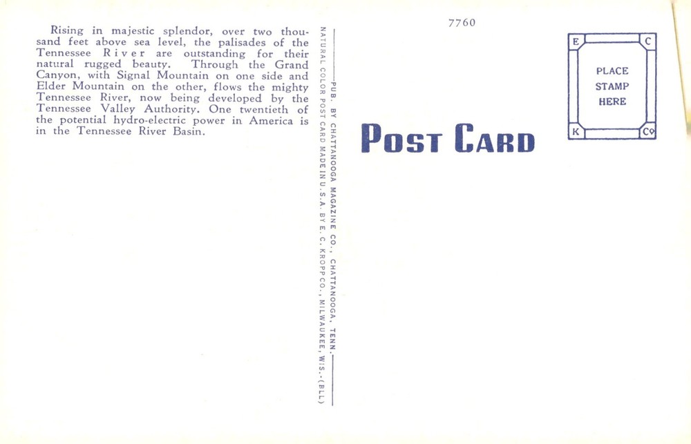 MAKE AN OFFER. THE MORE YOU BUY THE BETTER DEAL I WILL ACCEPT Experience the natural rugged beauty of the Tennessee River as it flows through the Grand Canyon, flanked by Signal Mountain and Elder Mountain. Witness the development by the Tennessee Valley Authority and the vast hydro-electric power potential in the area.