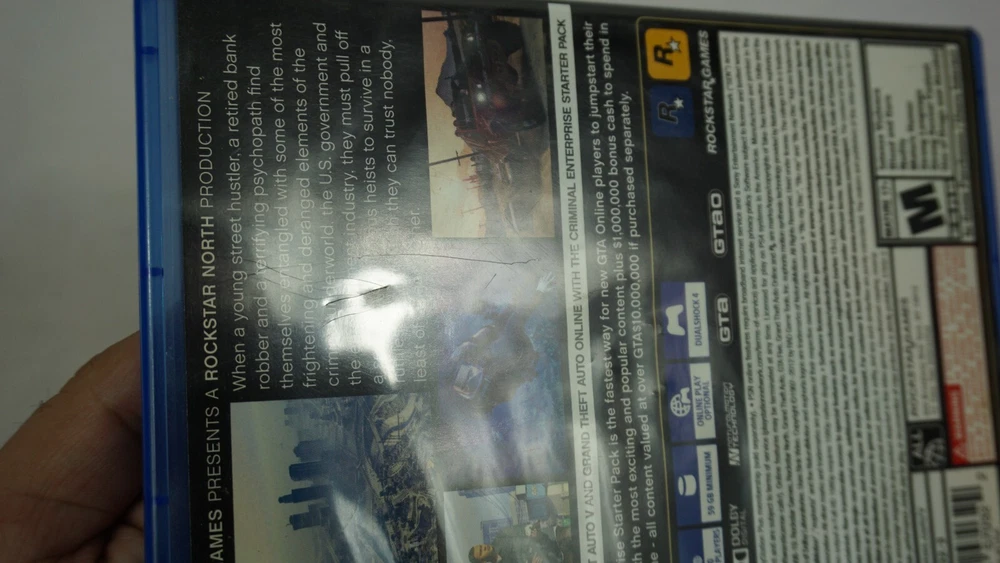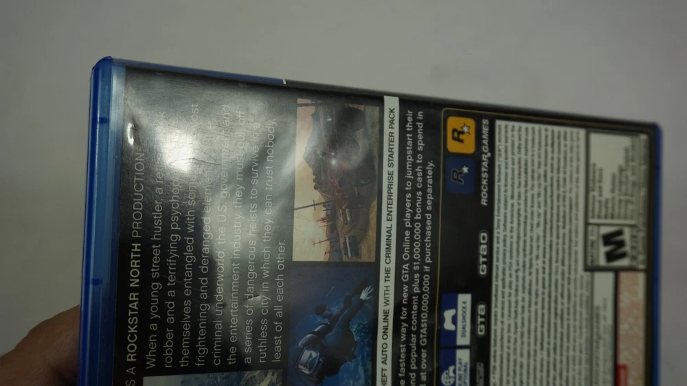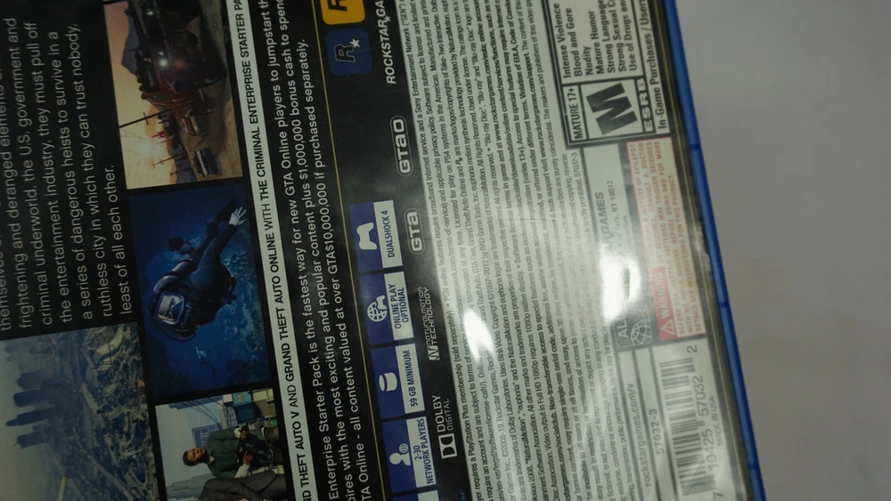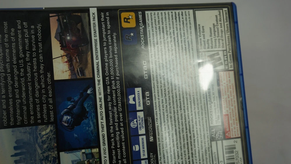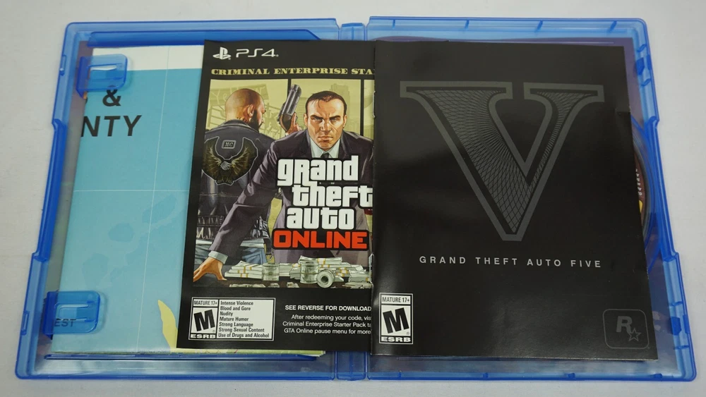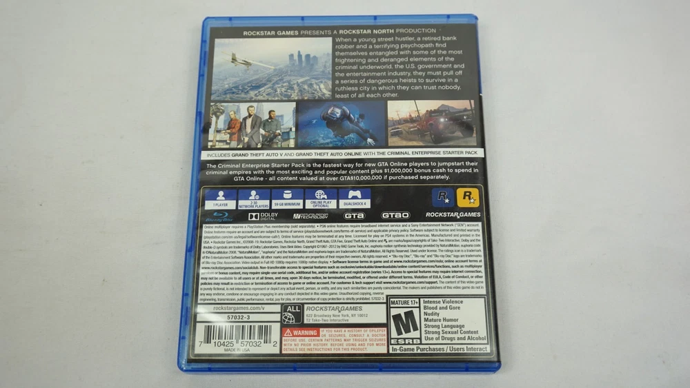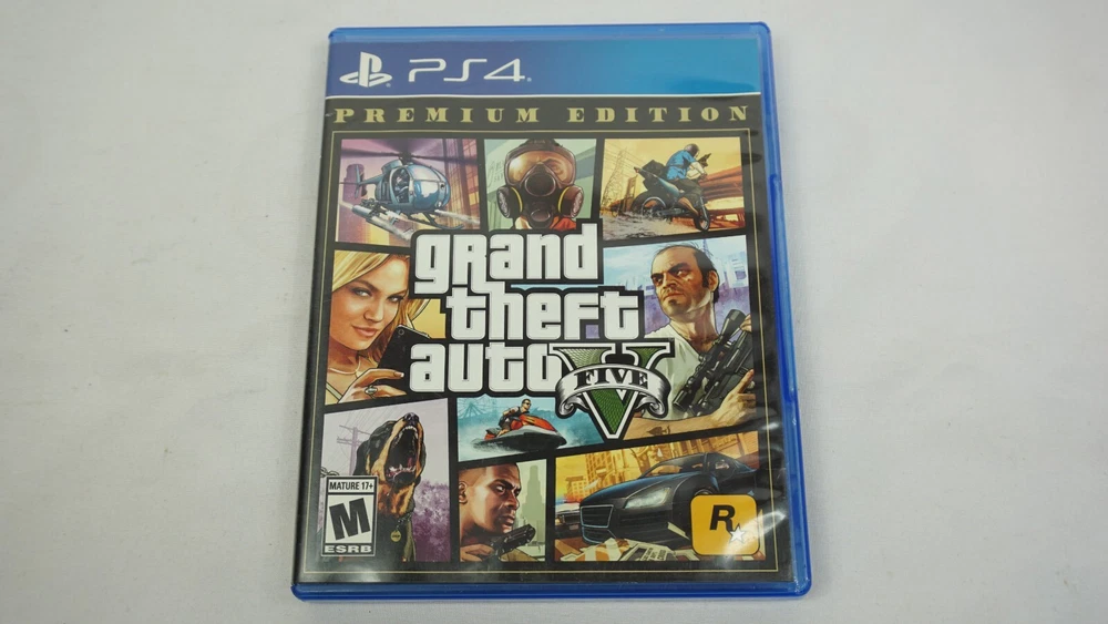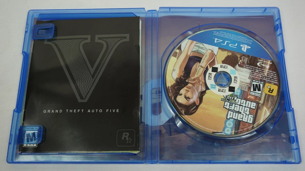 Experience the thrill of extreme sports and car racing with GTA 5 Grand Theft Auto V PS4 Premium Edition. This complete edition includes the game manual, map, and ad, along with multiplayer and online playability features. Explore the vast world of Los Santos and enjoy the action-packed gameplay of this mature-rated game. With its compelling storyline and engaging gameplay, this unit is sure to provide hours of entertainment. Get your hands on this premium edition of Grand Theft Auto V and take your gaming experience to the next level. Case has dimples. Manuals Ad and Map are clean. Disc has protection ring and surface scratches. TESTED AND WORKING! AUTHENTIC AND TESTED