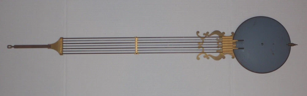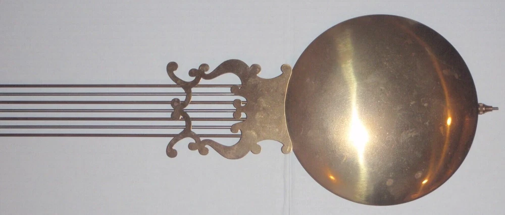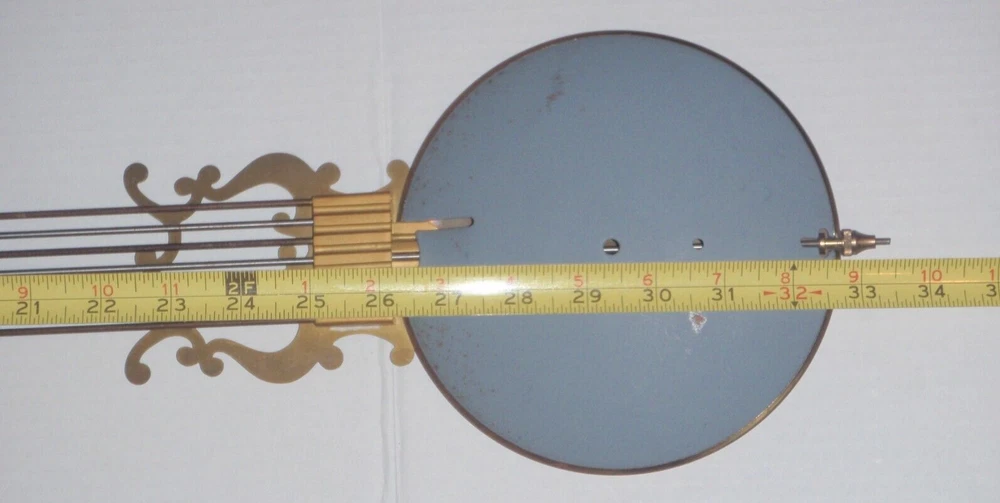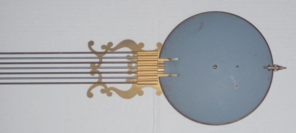 Grandfather Clock Brass Lyre BarredPendulum for Hermle Urgos Kieninger and others. See pictures for measurements. Pictures are part of the description. Listing is for the pendulum pictured ONLY! Movement is NOT included. Sold as is as pictured with no returns. See my other listings for parts from this clock!