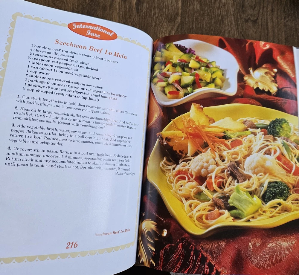 Absolutely love this cookbook—packed with homestyle comfort food! The casseroles, slow cooker meals, and one-dish recipes are easy to follow, and the color photos make every dish look tempting. The plastic cover keeps it protected, and the book itself is a great size with plenty of recipes to explore. Arrived in perfect condition and well-packaged—highly recommend for anyone who enjoys hearty, fuss-free meals!