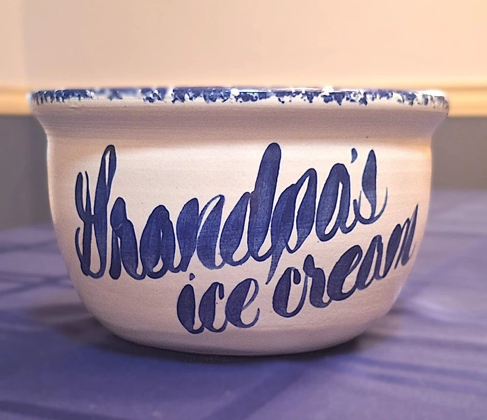 This vintage stoneware pottery spongeware bowl is a beautiful addition to any collection. The cobalt blue color and hand-painted design make it a unique and decorative piece. Measuring approximately 6.5 inches in diameter and 3.5 inches in depth, it's the perfect size for serving ice cream on any occasion. Crafted in the United States in 1993, this original bowl features a matte finish and a round shape. It is handmade and made with care, perfect for hand washing only. This bowl will add a touch of nostalgia to your home and make a great gift for anyone who loves vintage pieces and ice cream. In Excellent Vintage condition. No chips or cracks. Preowned. Please see photos. Disclaimer : Many of the items I sell are vintage, antique or used, and may not be in perfect condition. They may have age-related wear, imperfections or a minor chip here and there. You may also see air bubbles in crystal items, which are naturally occurring. I will point out any and all of these to the best of my ability. Please review the photos provided carefully, read the description, and judge accordingly. All items are insured for the purchase price in case of damage due to shipping, so please do not throw away any of the original packing materials, the shipping box, or the broken item as these will have to be returned to Memory Lane Treasure in order to file an insurance claim for reimbursement of the item. The buyer is responsible for return shipping costs and reimbursement to the Buyer will not take place until the Seller has received all of the above. Please feel free to contact me with any and all questions you may have before purchasing an item—I am happy to assist. Thank you for visiting Memory Lane Treasure! Shipping and Handling : The misnomer regarding Shipping is that the amount charged only covers what it costs to ship an item by its weight. Shipping covers more than just the weight of an item, it also includes logistics costs such as packing supplies, inventory storage, transportation, and delivery. Due to the rising costs in our economy, Memory Lane Treasure has had to start charging for shipping; however, to keep the total cost as low as possible for our customers, Memory Lane Treasure has not yet started to charge a Handling fee, which is the cost of labor. Also note, that depending on the destination of the purchased item, eBay may calculate a different Shipping from what was listed by Memory Lane Treasure. Should that occur, it is not something done by our facility and Memory Lane Treasure should not be held responsible. 100% Customer Satisfaction is Memory Lane Treasure’s ultimate standard. Should a customer have any questions or concerns, they are always encouraged to contact Memory Lane Treasure before purchasing an item—I am happy to assist.