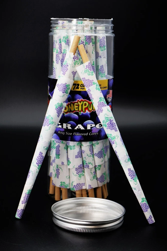 The Length of Plastic Doob: 180 MM / 7.09 Inches Flavor: Grape Flavored Material: High Quality Fiber Paper Country/Region of Manufacture: United States The Quantity of Plastic Tube: 72Cone/Can Brand: Novelty Nest Modified Item: No The Length of Cigarette Cone: 110 MM / 4.33 Inches Use: For Smoking Tobacco