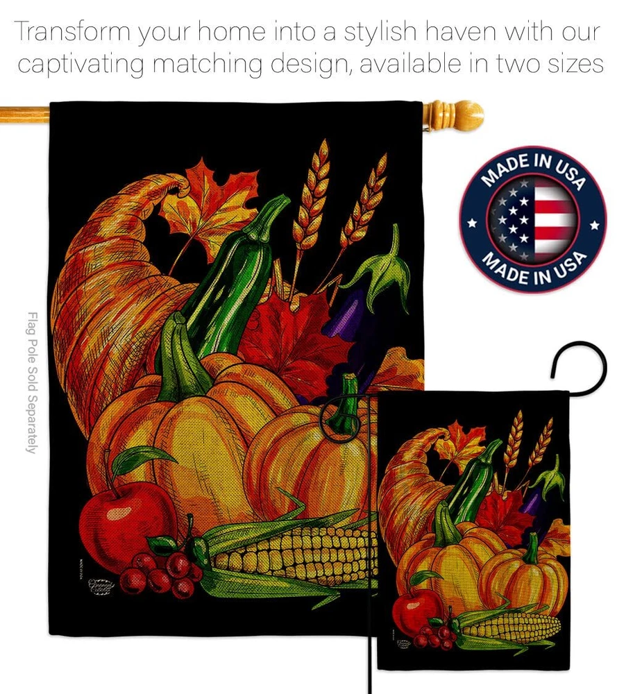 Thanksgiving Beautiful Mini Garden Flag with Garden Banner Pole Stand - Complete Set with Garden Pole - 16" x 40" Power Coated Metal Flag StandOrnament Collection have variety of Garden Flag Set for all occasions. Uniquely design for hanging indoor or outdoor use. We are committed to offering you exceptional values. Our customers enjoy displaying our Garden Flag Set for longer periods. Specification: Theme: Thanksgiving Size: Garden Flag Set 13" x 18.5" Size: Metal Garden Pole Print: Double-Sided Readable: Readable Both Sides Material: Weather Resistant Double Burlap Stitching: Double Stitched Display: Vertical Hang Type: Sleeve Artist: © Ava Storey Special Features: Origin: Made In USAPackage Include: 1 pc x Mini Garden Flag 13" x 18.5" 1 pc x Metal Yard Banner HardwareFor more than a decade, we’ve been dedicated to manufacturing flags with no comparison in quality and beautiful designs. Our flags are made with our Guard material that is soft to the touch and designs can be read correctly on the flag. A feature that our customers will love. We are committed to using eco-friendly inks that won’t leave a foot print in our environment. MPN: OC-TG-GS-192655-IP-DB-D-US21-OC 92655 92655 PROUDLY Made In USA - Package And Product Designed In California PURCHASE WITH CONFIDENCE - From 's US Authorized Resellers MADE OF DURABLE - 100% Thick Double Burlap Fabric construction helps resist the wear and tear from frequent use TEXT READABLE BOTH SIDES - Garden Flag Set Double-Sided Print DURABLE FLAG - Double stitching panels on multiple rows and high quality Sleeve to provide lasting strength VIBRANT COLORS - With UV-Resistant Maintains Its Colors All Season Long FEATURES - Free Garden Flag Hardware Included!