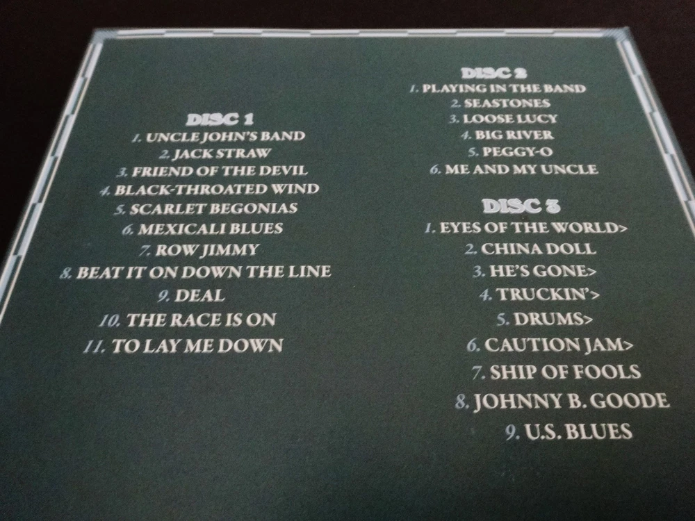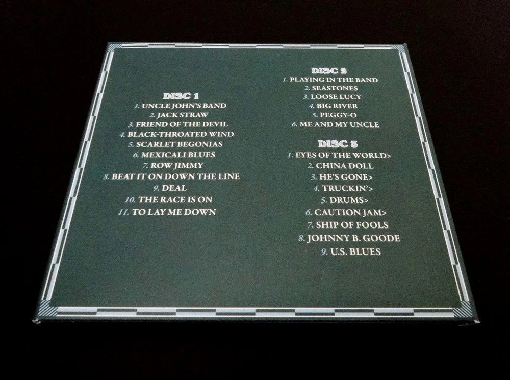 Grateful Dead : 30 Trips Around The Sun : 1974 : Parc Des Expositions - Dijon, France ( FRA ) - September 18, 1974 ( 9/18/1974 / 9/18/74 ) : 3 CD : Limited Edition of 6,500 ( All Un-Numbered CD Sets ) : GD 50 release : 2015 (1974/2015) Grateful Dead Productions, Inc. / Rhino ( GDP / Rhino ) : Brand New ! The Grateful Dead ' Live ' in Dijon, France ! - at the ' Parc des Expositions ' ! ... on the " Europe '74 " Tour !! The 1st ! Show of Three '74 Shows in France ! ... and the ' Only ' Dead Show Ever ! - in Dijon !! Fall '74 Live-Dead at it's Finest ! - with only 2-France Shows left ... until the " Grate-Hiatus ! " ( aka. the 5-Show run at Winterland in Mid-October '74 ... " The Last One(s) ! " ) ... Uncle John's ! - Scarlet ! - Race Is On ! - To Lay Me Down ! ... Playin' ! > Seastones !! ... & Eyes ! > China Doll - He's Gone > Truckin' > Caution Jam !!! Smokin' !! Grateful Dead Fans !!! Offered here is the " 1974 " CD Set ( Brand New ! ) from inside the Legendary ! Grateful Dead " 30 Trips Around The Sun " Box Set - released in 2015 in direct conjunction with the much anticipated " 50-Years ! Celebration of The Grateful Dead " ( 1965 - 2015 ) ... GD 50 !!! And, to honor this Landmark ! Rock & Roll Achievement - Grateful Dead Productions / Rhino released a Limited Edition Box Set ( of 6,500 units ) - to rightfully ' Commemorate ' " '65 "! And in unprecedented ( & So-Cool ! ) fashion ... this Monster Box Set included Thirty ( 30 ) Grateful Dead Shows on Thirty ( 30 ) CD Sets ( 80-CD's in total ) - and, each CD Set represents the sequential years of the Band's 30-Year development ... from 1966 to 1995 ! Obviously, this was a " Deadheads Dream " type Box Set - for the Beyond-Special occasion ... of 50-Years Upon Our Heads ! Fantastic, to say the least ... Wow !!! And, for the 30 Trips " 1974 " 3-CD Set selection offered here ... " Genial !!! " ( you know ... " Grate ! " in French !! - Ha ! ). But, that's pretty much it for the Jokes-here Folks ! - because This ! 5th Night ( of 7 ) of the " Europe '74 Tour ! " is All-Business !! And, in fact ... Mean-Business ! -- just-think " Caution Jam !! ". Smokin' !!! But, that's later in the night - as there is so-much before in this Awesome ! Dead-Show !! ... as it's in fact The-Only ! time the Band ever played " Dijon ". And hey ... maybe that's just why Jerry put on a little extra Hot-Mustard ! on " Wolf's ! " Fretboard !! He's ' On ! ' - ' They're On ' - heck, I mean even the Recording is " On !! ". And, not that you wouldn't all together expect that ( especially in a 2015 released " 30-Trips " 1965 - 1995 Box ... for the " 1974 " Show !! ). But ... it is note-worthy, for certain. As the truth is, this 9/18/74 Dijon, France Show ( at ' Parc des Expositions ' ) started creeping around on DAT ! in the Mid/Late '90's Era - and, at least for me ... That ! was the very 1st time I had heard it. There were some flaws though on those DAT tapes ( cuts, song order, etc. ) - but, the one thing that Really ! caught my ears ... was The-Sound ! -- " Crystal !! ". And, as for this here 3-CD version ? ... Just-About-Perfect !!! I mean ... my fellow Dead Fans - this one is a flat-out Gem !! I mean heck ... it even gets me Zoned-In ( like Totally ! ) on '74 Dead !! As let's face it - the Boys ( & Gal ) have just about what ?? ... 2-More-Shows left ! - until the " Grate-Haitus !?! ". Well, you know - not counting " The Last One(s) " 5-Show run at the Winterland Arena ( just think ... " The Grateful Dead Movie " ! ). So yeah, enough said - as This ! is the Dead-Era that we are talking about here. And this 9/18/1974 Dijon Dead-Night ? ... it Completely ! " Encapsulates !! " it. Uncle John's to Open ! the Show ... Jack Straw ! to follow ( nicely ... ) ... Scarlet !! - Row Jimmy ... The Race Is On ! -- HOT !! - Deal ! ... Then, it's nearly Playin' > Seastones ! time - and trust me, as you'll want to listen to this one Twice ! right-in-a-row. Awesome ... And then, the Eyes ! > China Doll - He's Gone > Truckin' > Drums > ... Caution Jam !!! ... Whoa !?!? - which, I'd probably have-to-say ... is my own personal favorite part of this Fall Tour '74 French Dead-Night !! I mean ... This ! is a straight-up Cooker !! People ! With J.G. just Drillin'-Away ! on the Irwin Wolf !! Then ... Johnny B. Goode ! - because even-they ' Know ' they are Red-Hot ! Which, yep ... They-Are !! Mighty-Mighty 1974 Dead ! U.S. Blues ! for the Encore, and then that's all she wrote for " Dijon-Dead " - Forever ! Two-More France Shows to follow this Hot ! night ( both at Palais de Sports - in Paris ) ... and then, it's Back ! to the Good Ol' U.S. ... of A. !! And, furthermore ... I do know that some knowledgeable Dead Fans have a tendency to say that this Show starts Strong ! in the 1st Set, and then tuckers-out just a tad bit ? And my answer ... No ! - I'm not at all there. This Show is Thick !! with precision interplay & spot-on timing all-throughout. Sure, it's '74 Dead in the Post-Pigpen format ( unlike, say ... Europe '72 ) - but ... I've Always-Loved ! this one. I've also heard ( obviously ... ) that the Band ! was a little down on this Tour ( being only 7-Shows ( England > Germany > France ) ), and with it ' naturally ' being a tough act to follow ... with Europe '72 really being the unavoidable benchmark of ( unfair ) comparison. But, again ... I myself am just not there. As when it comes to '74 ... at least in my own opinion - I say Bring-On ! 9/18/74 " Dijon " - and even Dick's Picks 7 ! too ( from London ). Personally, I find this Europe '74 Tour just So-Unique ! - as it was a natural transition all-in-itself from the Indoor & Outdoor Summer '74 " Wall Of Sound " U.S. Tour. As this " Europe '74 " Tour put the Grateful Dead back into some prime places to play Indoor ! in Europe, and through this recording ... you can just hear the little extra-efforts ( on the string-play, drum-kit, keys, you name-it ! ) virtually Everywhere !! - of the Band ' Genuinely ' trying to make this Tour special. You k