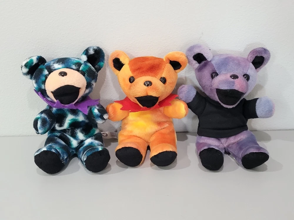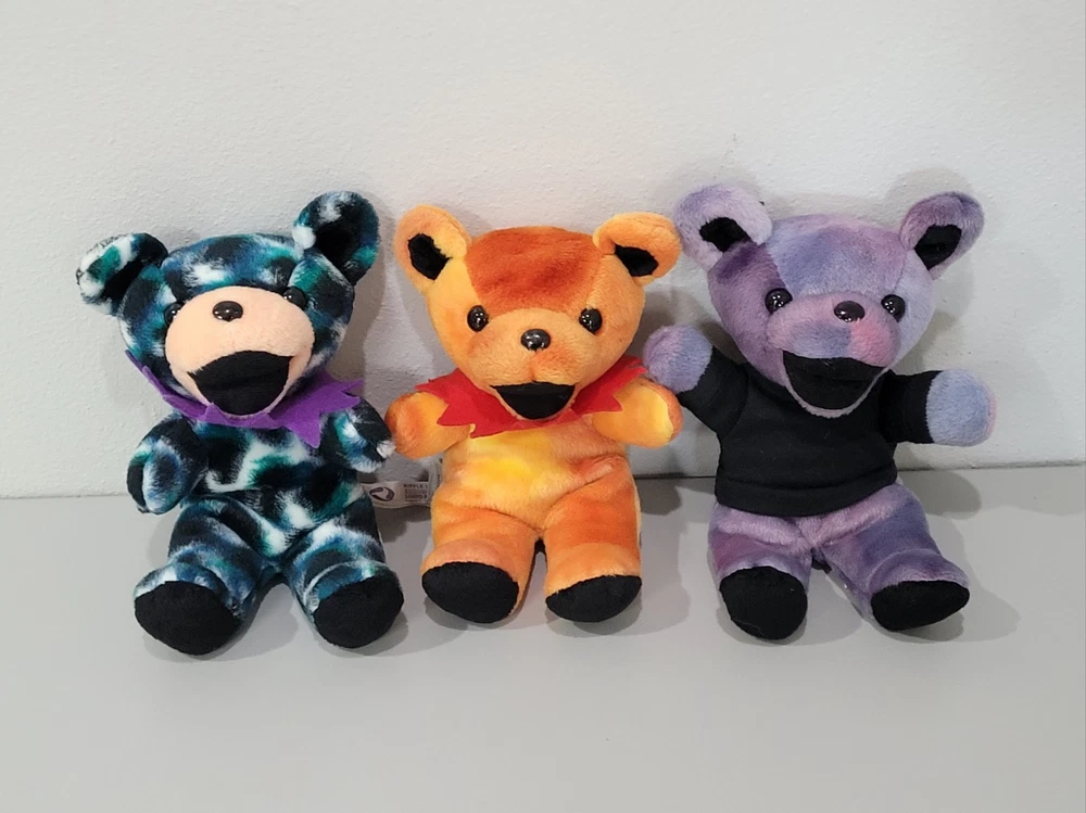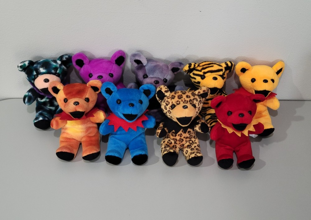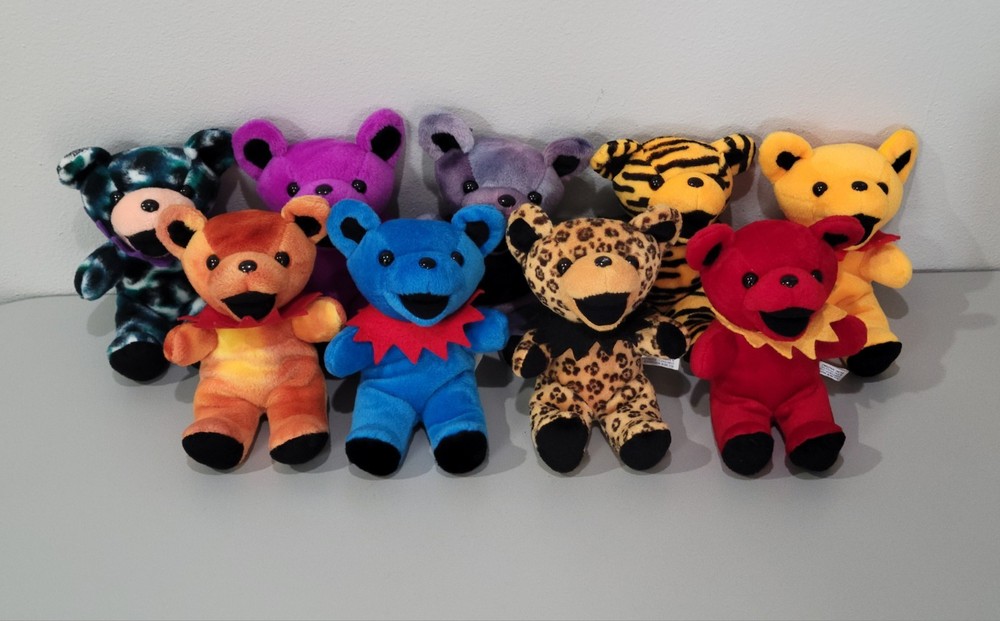 Grateful Dead Steven Smith 7" Bear Plush 9x Lot Bean Bag 80-90s' VINTAGE CLEAN - SHIPS FREE IN USA ✅️ ALL PRE-OWNED COLLECTIBLES COME CLEANED AND SANITIZED, THEN REPACKAGED IN POLYBAG FOR ADDED PROTECTION ✅️ Figures come surface cleaned and repackaged in polybags, ready to enjoy. Figures are loose and set does not include any original packaging or accessories. All plush figures include original bottom tags, mostly in great shape with minor fray on one. Set ships from WI in sturdy packaging - set ships free within USA using USPS or equivalent service. International shipping is available, standard delivery rates apply. Please reach out with any questions, and thanks for looking! Lot #DEAD-BEARS