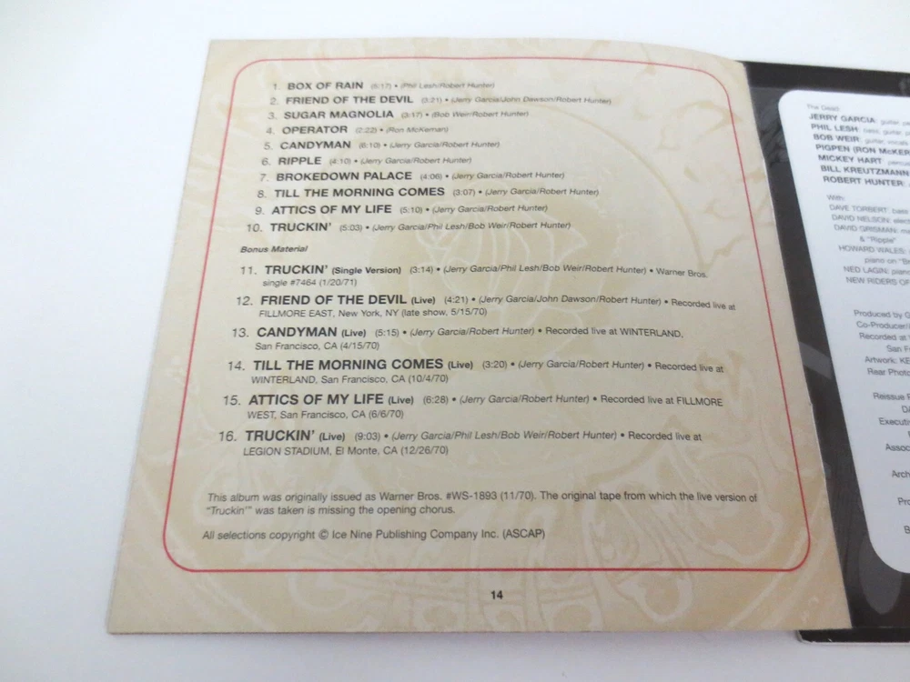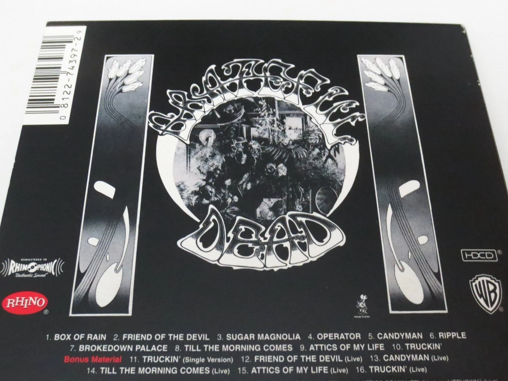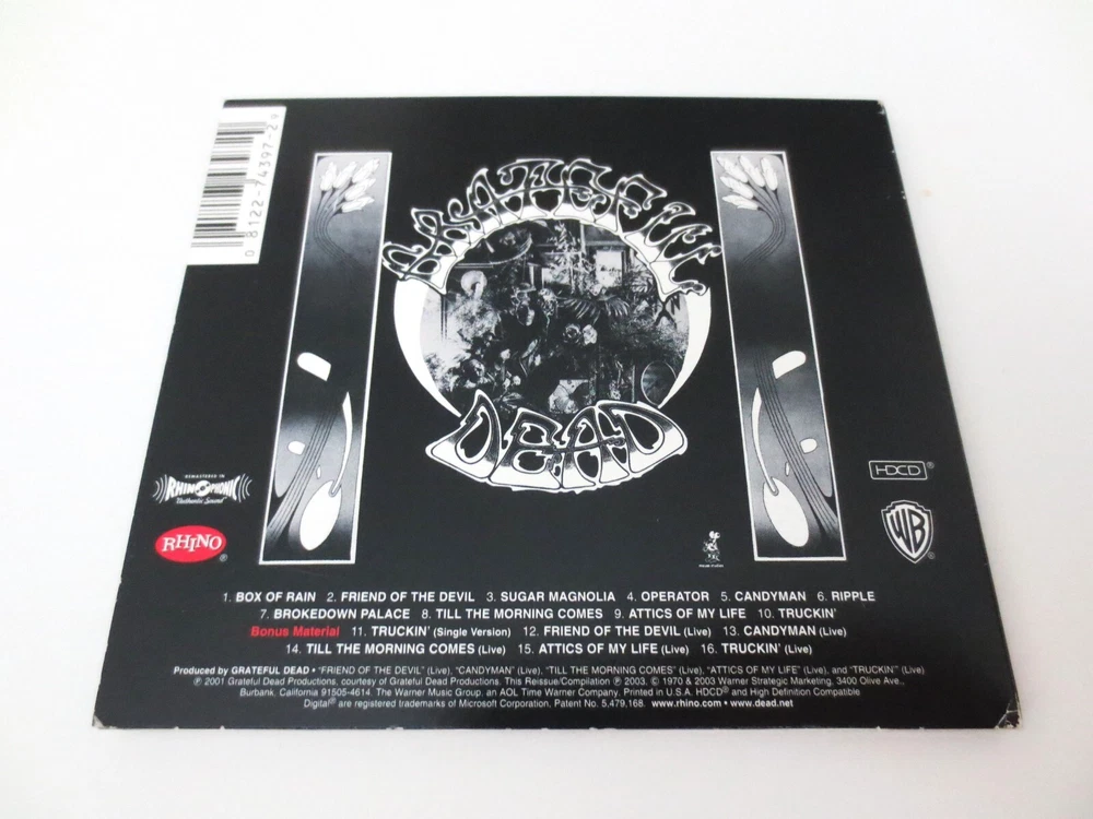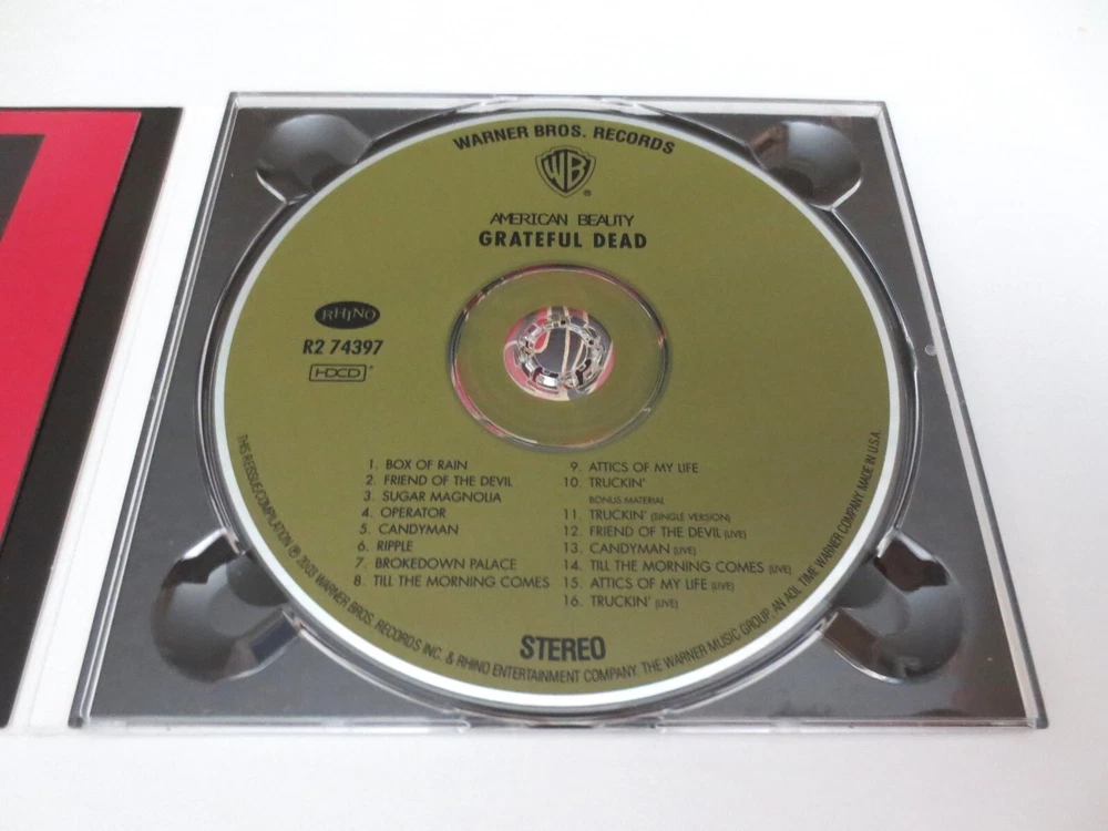 Grateful Dead - The Grateful Dead / American Beauty - 1970 - 1 CD - Remaster / Remastered - 2003 Warner Bros. Records / Grateful Dead Productions / Rhino (1970/2001/2003) - R2 74397 - Recorded from August to September in 1970 1970 Grateful Dead ( Jerry Garcia / Bob Weir / Ron Pigpen McKernan / Phil Lesh / Mickey Hart / Bill Kreutzmann ) - August to September 1970 - ( Supporting Musicians - Dave Torbert / Dave Nelson / David Grisman / Howard Wales / Ned Lagin / New Riders Of The Purple Sage ) Recorded from August to September 1970 at Wally Heider Studios San Francisco California CA Originally Produced by the Grateful Dead ( Co-producer : Audio - Steve Barncard ) Originally Released on November 1, 1970 ( 11/1/1970 ) Very Good - near Very Good/Like New ( like new ( near mint-mint ) CD / light-medium surface wear/indentations on CD case ( very good ) / like new ( near mint-mint ) liner notes )