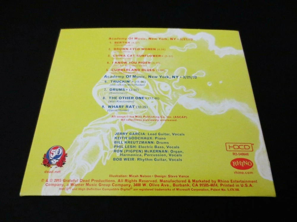 Grateful Dead : Dave's Picks 2015 Bonus Disc CD : Academy Of Music - New York, New York ( NY ) : March 21 & 27, 1972 ( 3/21/1972 & 3/27/1972 ) : 1-CD : 2015 (1972/2015) Grateful Dead Productions, Inc. / Rhino ( GDP / Rhino ) : Annual-Subscription Only ! - " Bonus Disc !!! " Grateful Dead 1972 Spring Tour ! - at the Academy Of Music in N.Y.C. ! ... 3/21/72 & 3/27/72 --- Delivered !!! - in the Fabulous ! form of the " Dave's Picks 2015 Bonus Disc " !!! ... Wow !!!!! Dead Fans !!!!?! ... now, how about it - and what do you-say ! More Delicious !! Spring Tour '72 Live-Dead at the Academy of Music ! in New York City !!! Wow. I don't know what your reaction was, when you 1st caught the word on this one ... that it would indeed be a Reality ! But, for me ? I spun out of my chair ( literally ! ) ... and put both-hands straight up-in-the-air !! Started clappin' and then let out one of those WaaaaHooooosss !!! I mean you can hear me here, right ? Right-on ... for certain. I mean, let's put it this way ... way-back in 2004, in the near-final days of the 36-Installments of the Dick's Picks Series ... Volume 30 delivered a Beyond-Smoker !!! -- known simply as ' Dick's Picks Volume 30 ' !! ... which, naturally - was Four ( 4 ) Discs of Academy of Music N.Y.C. Spring Tour '72 Magic !!!! And ... that-one came in the form of two Huge-chunks of March '72 Goodness ! --- March 25 & 28, 1972 ( 3/25/1972 & 3/28/1972 ) - 4-CD's with CD 1 actually featuring 5-Tracks with Bo Diddley himself ! That set starts out so unique & different that most Dead Fans just kinda sit there thinking ... Wow ?!?, this is Really~Hot ?!!!! And, soon after the Bo Diddley live-action, it's all Pure-Bred Grateful Dead !!! Which means, Pigpen ! giving just about all that he had left in the tank - to the Fans !!! At least in my opinion, Pigpen truly defines the definition of a Rock & Roll ' Professional ' in this Period & Era. He's not feeling himself as we all well know, but even the finest-tuned Fan ' Ear ' - can hardly really even tell ! Seriously impressive ... Bob, Phil & the Masterful! Drums Time-keeping ... just Perfecto ! -- and, completely consistent too, fluid & tight ! Totally air-tight ... And, as far as Garcia goes ... just trademarking & attacking ! that Colorsound Wah !!! A guitar-playing Clinic ! - for any guitar-player ... who believes wholeheartedly in timing, tempo ... & most-of-all - Fat-Tone !!! Wow ... So, my point here being - this was the 3/25/72 & 3/28/72 action that most all have been Loving ! for over a decade now. And then too ( in 2004 ), the Ultra Rare Academy Of Music ' Bonus Disc CD ' even added more March '72, when it was distributed with the 2004 release of the " Rockin' The Rhein " 3-CD Set ! The Bonus Disc delivers 5-tracks from the 3/22/1972 Show ! - and then too ... also the Dark Star ! from 3/23/1972 Show !!! So ... you can really see just exactly where I'm headed here with this " Dave's Picks 2015 Bonus Disc " CD Set ... Yes ! We've all gotten both tastes & heavy-duty installments as well of 3/22/1972 - 3/23/1972 - 3/25/1972 - 3/26/1972 - 3/28/1972 from Dick's Picks 30, the Academy of Music ' Bonus Disc ' CD & in Dave's Picks 14 combined ... and now ! here you will gratefully have the " Bonus Disc " CD which Delivers Academy Of Music '72 from both ! 3/21/1972 !! & 3/27/1972 !!! This Dave's Picks 2015 Bonus Disc CD delivers Live G.D. action from yet 2-More !! Academy of Music '72 Shows !!! So, essentially ... this Bonus Disc CD release will further quench your Dead Fan Thirst ! for even-more ! Academy Of Music March 1972 Live G.D. Action !!! It's almost like releasing an Essential ! additional-installment of an Academy Of Music '72 Set - over a Decade later ! But hey, we're real patient Deadheads ... right ? No, but with all seriousness ... as if you have Dick's Picks 30 ( 4-CD ), the Academy Of Music Bonus Disc CD ( 1-CD ) & Dave's Picks Volume 14 ( 3-CD ) -- by adding this Dave's Picks 2015 Bonus Disc CD ... You ! will now have Nine ( 9 ) CD's of the March '72 Grateful Dead run at the Academy of Music !!! Just Such ! a Legendary run too, considering that it was indeed this G.D. Energy & overall Confidence-Vibe that was taken overseas for the April & May 1972 Europe '72 Tour !!!!! Seriously-important G.D. stuff & Rock History ! here, to say the very least. Wow ... the 3/21/72 Truckin' > Drums > Other One > Wharf Rat -- the 3/27/72 Cumberland Blues ! -- and ... the 3/27/72 China > Rider !!!!! Clearly, and without any-question ... this here is one of the " of Pinnacle-Importance ! " releases in this currently ( in 2015 ) up to Fourteen ( 14 ) Volumes " Dave's Picks " Series - with Three ( 3 ) Bonus Discs issued so far ! I must say, I was always pretty realistic - in thinking that there might be no more pro-released action from this ' Academy '72 ' run ... but, so-Thankfully ! -- I was completely wrong !!! My goodness, as there really is no argument - that this Spring > Summer 1972 Period & Era is one of the Finest ! All-Time !! periods of the Good Ol' Grateful Dead !!! Simply Stellar ! through & through ... & Through ! Ha ! What a release ... Enjoy !!!!!!!! TRACK LISTING >>> Grateful Dead : Recorded ' Live ' at the Academy Of Music - New York, New York ( NY ) : March 21 & 27, 1972 ( 3/21/1972 & 3/27/1972 ) : Dave's Picks 2015 ' Bonus Disc CD ' : 3/27/1972 : Bertha Brown-Eyed Women China Cat Sunflower > I Know You Rider Cumberland Blues 3/21/1972 : Truckin' > Drums > The Other One > Wharf Rat Item Condition : This Very-Rare ! Out of Print ( 2015 GDP / Rhino release ) Dave's Picks 2015 Bonus Disc CD ( Academy Of Music - New York, NY - 3/21/1972 & 3/27/1972 ) 1 CD is is in Good condition - close to Good/Very Good overall. CD ( 1-CD ) is in Good condition - close to Good/Very Good, with light-medium scratches/marks on the playing surface ( cosmetic-only ) - please see photos. CD Case ( ' Artistic ' Single Sleeve ) is in Very Good condition - close to Very Good/Like New overall, with light corner/edge su