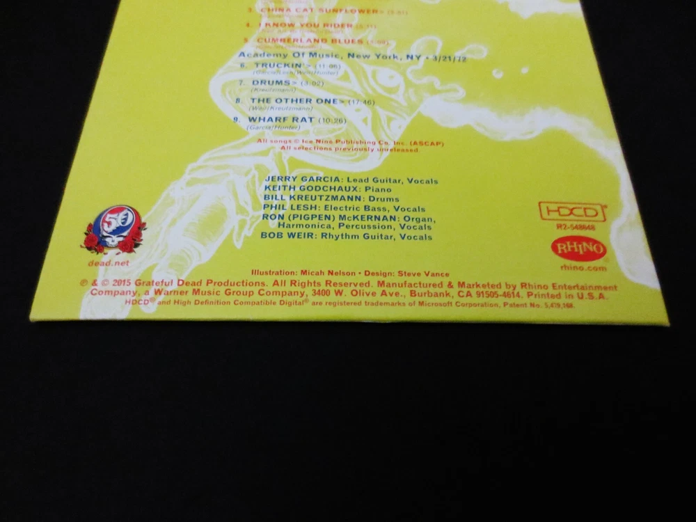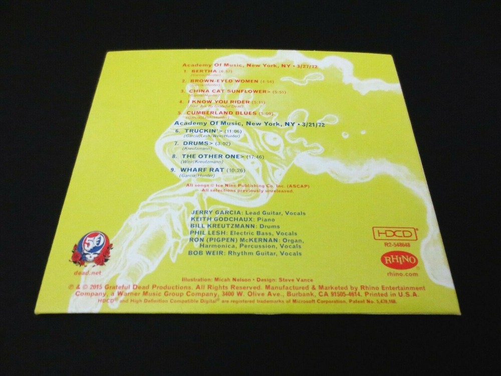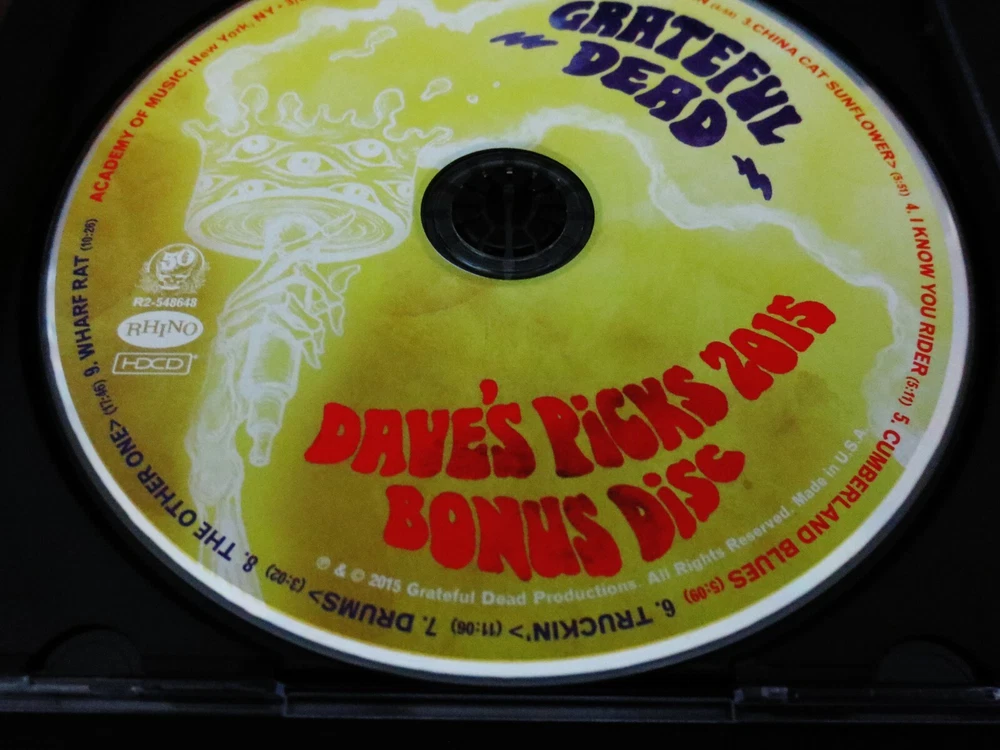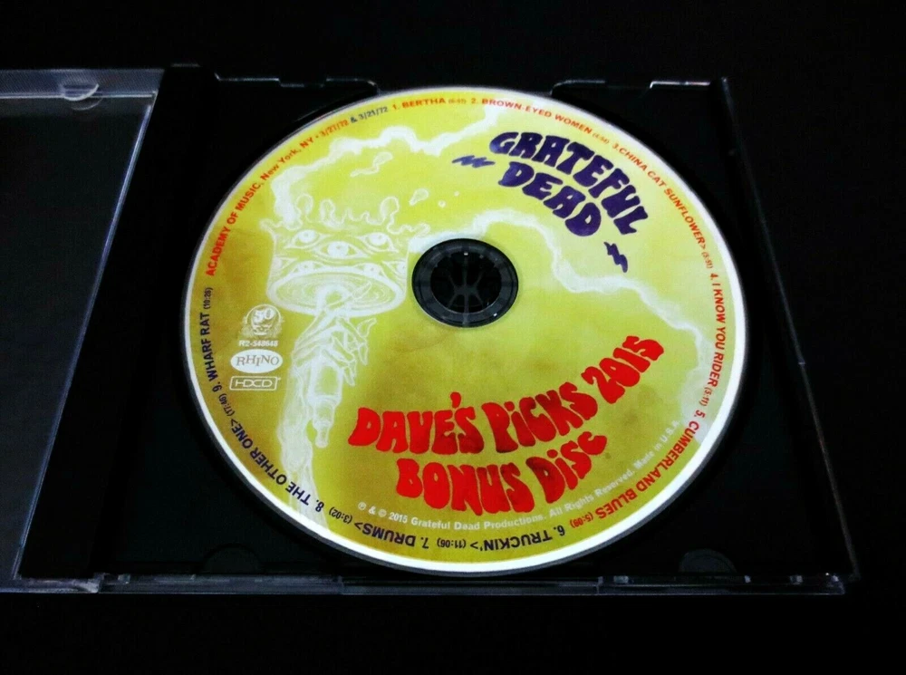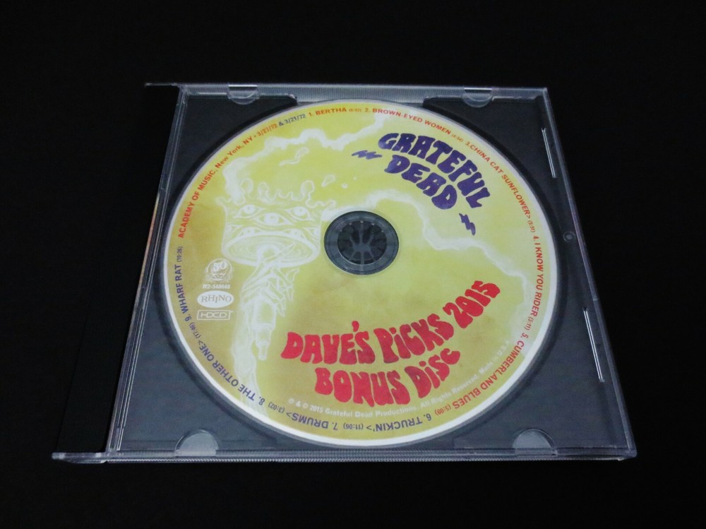 Grateful Dead : Dave's Picks 2015 Bonus Disc CD : Academy Of Music - New York, New York ( NY ) : March 21 & 27, 1972 ( 3/21/1972 & 3/27/1972 ) : 1-CD : 2015 (1972/2015) Grateful Dead Productions, Inc. / Rhino ( GDP / Rhino ) - R2 548648 : Annual-Subscription Only ! - " Bonus Disc !!! " Grateful Dead 1972 Spring Tour ! - at the Academy Of Music in N.Y.C. ! ... 3/21/72 & 3/27/72 --- Delivered !!! - in the Fabulous ! form of the " Dave's Picks 2015 Bonus Disc " !!! ... Wow !!!!! Dead Fans !!!!?! ... now, how about it - and what do you-say ! More Delicious !! Spring Tour '72 Live-Dead at the Academy of Music ! in New York City !!! Wow. I don't know what your reaction was, when you 1st caught the word on this one ... that it would indeed be a Reality ! But, for me ? I spun out of my chair ( literally ! ) ... and put both-hands straight up-in-the-air !! Started clappin' and then let out one of those WaaaaHooooosss !!! I mean you can hear me here, right ? Right-on ... for certain. I mean, let's put it this way ... way-back in 2004, in the near-final days of the 36-Installments of the Dick's Picks Series ... Volume 30 delivered a Beyond-Smoker !!! -- known simply as ' Dick's Picks Volume 30 ' !! ... which, naturally - was Four ( 4 ) Discs of Academy of Music N.Y.C. Spring Tour '72 Magic !!!! And ... that-one came in the form of two Huge-chunks of March '72 Goodness ! --- March 25 & 28, 1972 ( 3/25/1972 & 3/28/1972 ) - 4-CD's with CD 1 actually featuring 5-Tracks with Bo Diddley himself ! That set starts out so unique & different that most Dead Fans just kinda sit there thinking ... Wow ?!?, this is Really~Hot ?!!!! And, soon after the Bo Diddley live-action, it's all Pure-Bred Grateful Dead !!! Which means, Pigpen ! giving just about all that he had left in the tank - to the Fans !!! At least in my opinion, Pigpen truly defines the definition of a Rock & Roll ' Professional ' in this Period & Era. He's not feeling himself as we all well know, but even the finest-tuned Fan ' Ear ' - can hardly really even tell ! Seriously impressive ... Bob, Phil & the Masterful! Drums Time-keeping ... just Perfecto ! -- and, completely consistent too, fluid & tight ! Totally air-tight ... And, as far as Garcia goes ... just trademarking & attacking ! that Colorsound Wah !!! A guitar-playing Clinic ! - for any guitar-player ... who believes wholeheartedly in timing, tempo ... & most-of-all - Fat-Tone !!! Wow ... So, my point here being - this was the 3/25/72 & 3/28/72 action that most all have been Loving ! for over a decade now. And then too ( in 2004 ), the Ultra Rare Academy Of Music ' Bonus Disc CD ' even added more March '72, when it was distributed with the 2004 release of the " Rockin' The Rhein " 3-CD Set ! The Bonus Disc delivers 5-tracks from the 3/22/1972 Show ! - and then too ... also the Dark Star ! from 3/23/1972 Show !!! So ... you can really see just exactly where I'm headed here with this " Dave's Picks 2015 Bonus Disc " CD Set ... Yes ! We've all gotten both tastes & heavy-duty installments as well of 3/22/1972 - 3/23/1972 - 3/25/1972 - 3/26/1972 - 3/28/1972 from Dick's Picks 30, the Academy of Music ' Bonus Disc ' CD & in Dave's Picks 14 combined ... and now ! here you will gratefully have the " Bonus Disc " CD which Delivers Academy Of Music '72 from both ! 3/21/1972 !! & 3/27/1972 !!! This Dave's Picks 2015 Bonus Disc CD delivers Live G.D. action from yet 2-More !! Academy of Music '72 Shows !!! So, essentially ... this Bonus Disc CD release will further quench your Dead Fan Thirst ! for even-more ! Academy Of Music March 1972 Live G.D. Action !!! It's almost like releasing an Essential ! additional-installment of an Academy Of Music '72 Set - over a Decade later ! But hey, we're real patient Deadheads ... right ? No, but with all seriousness ... as if you have Dick's Picks 30 ( 4-CD ), the Academy Of Music Bonus Disc CD ( 1-CD ) & Dave's Picks Volume 14 ( 3-CD ) -- by adding this Dave's Picks 2015 Bonus Disc CD ... You ! will now have Nine ( 9 ) CD's of the March '72 Grateful Dead run at the Academy of Music !!! Just Such ! a Legendary run too, considering that it was indeed this G.D. Energy & overall Confidence-Vibe that was taken overseas for the April & May 1972 Europe '72 Tour !!!!! Seriously-important G.D. stuff & Rock History ! here, to say the very least. Wow ... the 3/21/72 Truckin' > Drums > Other One > Wharf Rat -- the 3/27/72 Cumberland Blues ! -- and ... the 3/27/72 China > Rider !!!!! Clearly, and without any-question ... this here is one of the " of Pinnacle-Importance ! " releases in this currently ( in 2015 ) up to Fourteen ( 14 ) Volumes " Dave's Picks " Series - with Three ( 3 ) Bonus Discs issued so far ! I must say, I was always pretty realistic - in thinking that there might be no more pro-released action from this ' Academy '72 ' run ... but, so-Thankfully ! -- I was completely wrong !!! My goodness, as there really is no argument - that this Spring > Summer 1972 Period & Era is one of the Finest ! All-Time !! periods of the Good Ol' Grateful Dead !!! Simply Stellar ! through & through ... & Through ! Ha ! What a release ... Enjoy !!!!!!!! TRACK LISTING >>> Grateful Dead : Recorded ' Live ' at the Academy Of Music - New York, New York ( NY ) : March 21 & 27, 1972 ( 3/21/1972 & 3/27/1972 ) : Dave's Picks 2015 ' Bonus Disc CD ' : 3/27/1972 : Bertha Brown-Eyed Women China Cat Sunflower > I Know You Rider Cumberland Blues 3/21/1972 : Truckin' > Drums > The Other One > Wharf Rat Item Condition : This Very-Rare !! Out of Print ( 2015 GDP / Rhino release ) Dave's Picks 2015 Bonus Disc CD ( Academy Of Music - New York, NY - 3/21/1972 & 3/27/1972 ) 1 CD is is in Like New (Near Mint/Mint!) condition. CD ( 1-CD ) is in Like New (Near Mint/Mint!) condition (please see photos). CD Case ( ' Artistic ' Single Sleeve ) is in Like New (Near Mint/Mint!) condition (please see photos). This Bonus Disc CD was purchased brand new/factory-sealed upon it's inaugural (2015) release - has been p
