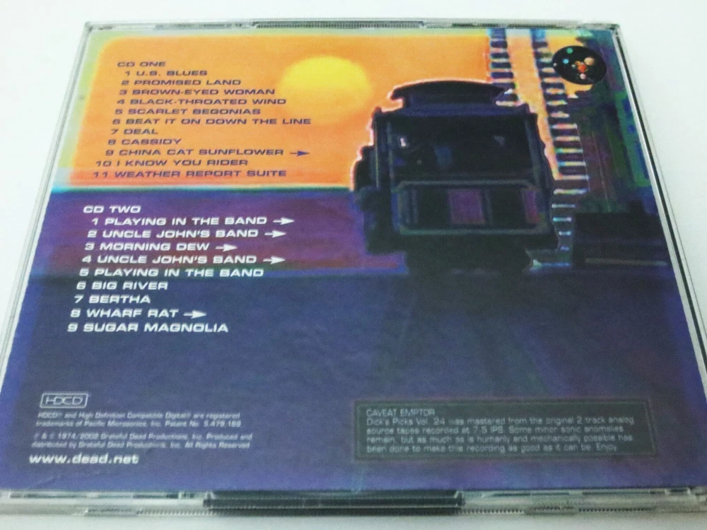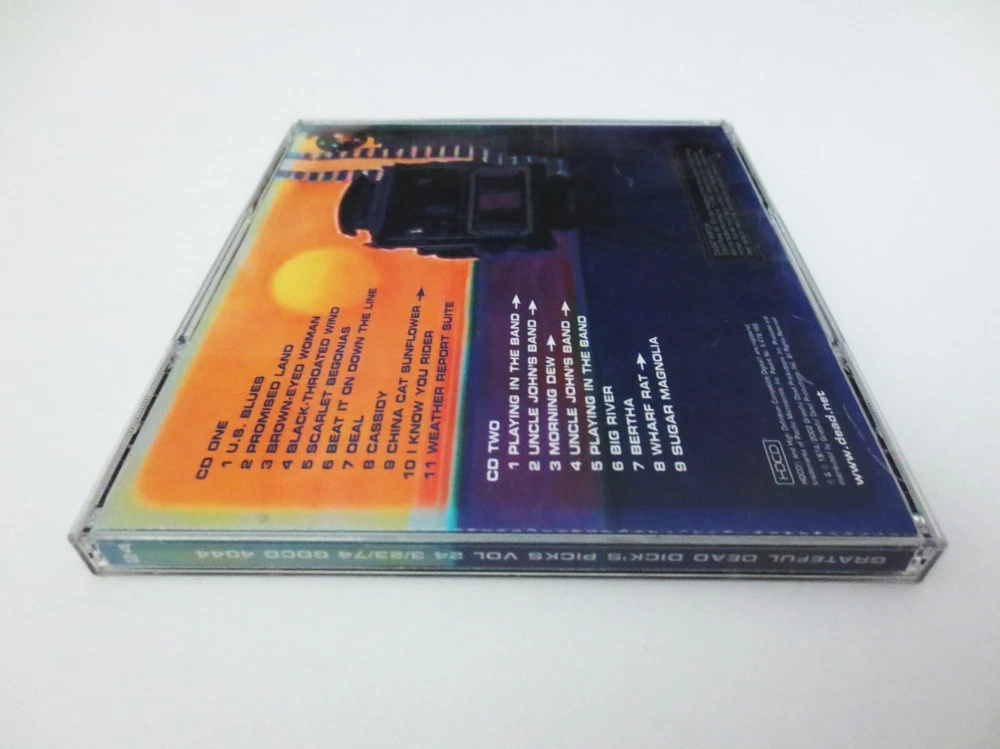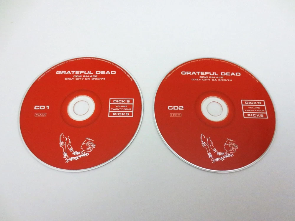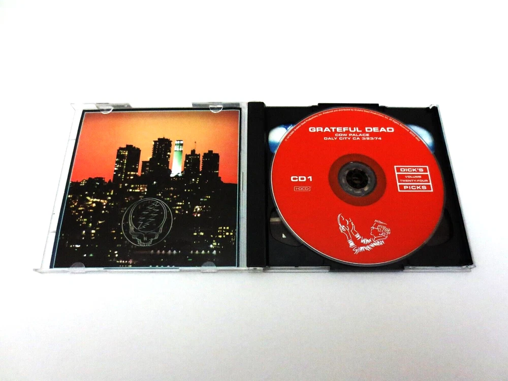 Grateful Dead - Dick's Picks 24 Volume Twenty Four - March 23, 1974 ( 3/23/1974 ) - Cow Palace - Daly City, California ( CA ) - 2002 Grateful Dead Productions (1974/2002) - GDCD 4044 - Original First Printing ( 2002 GDP ) 1974 Spring Tour Grateful Dead ( Jerry Garcia / Bob Weir / Phil Lesh / Bill Kreutzmann / Keith Godchaux / Donna Jean Godchaux ) - 3/23/74 March 23, 1974 ( 3/23/1974 ) - Cow Palace - Daly City, California ( CA ) One of the Earliest ( the 4th ) & Most-Impressive " Wall Of Sound " Grateful Dead Shows - a Stand-Alone Show ( Show-One of Only-One ) Indoors at the Infamous & Legendary Cow Palace - in the Grate ! State of California ... Wow !! Very Good condition ( light scratches on CD's / light indentations on liner notes / light-medium scratches on CD case )