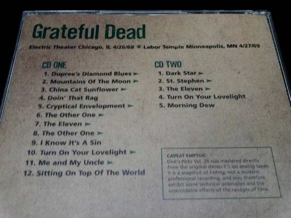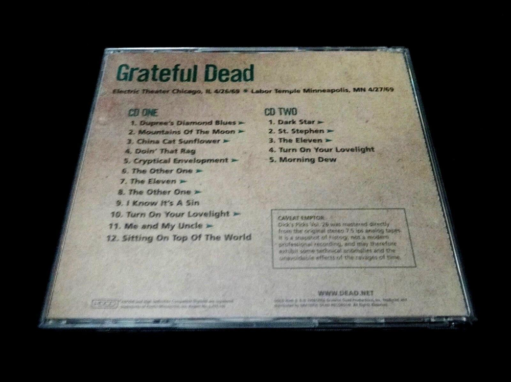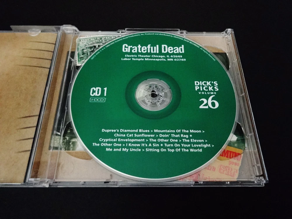 Grateful Dead : Dick's Picks 26 Volume Twenty Six : April 26, 1969 ( 4/26/1969 ) - Electric Theater - Chicago, Illinois ( IL ) & April 27, 1969 ( 4/27/1969 ) - Labor Temple - Minneapolis, Minnesota ( MN ) : 2002 (1969/2002) Grateful Dead Productions, Inc. ( GDP ) - GDCD 4046 : ' Original ! ' ( 1st ! ) Printing ! : Very-Rare !! Power-Packed !!! '69 Live-Dead with some Amazing ! ( Historic !! ) Song-Segue Transitions !!! -- The " Original ! " Grateful Dead Productions 1st Issue Printing ( GDCD 4046 ) - Not the Real Gone Re-Issue / Re-Print !!! Good Ol' Grateful Dead Fans !!! Here offered is the Rare ' Original ' 1st Printing ! ( GDCD 4046 ) of the Amazing !! Dick's Picks Volume 26 2-CD Set from both the Electric Theater in Chicago ( 4/26 ), and the Labor Temple in Minneapolis ( 4/27 ) in 1969. In my personal opinion ( and also the opinion of many others ... ) this 2 CD release offers " Out of This World !!! " Live-Dead !! In both of these Spring '69 Shows the performances are downright aggressive ( almost vicious ! ), creative / fresh, and the heavy jamming & song-segue transitions neatly demonstrate the early signs that this was simply a band like no other. I've often joked that there's a small chance that these Shows might very well be the Very-First GREAT !!! Dead Shows ... two ( 2 ) truly Magnificent ! " time-capsules " of The Grateful Dead at their early ( and arguably ) 1st " Best ". I am tempted to actually even go even further here ... in sharing my personal opinion that this release is ( believe it or not ) a true candidate for " Top Five ( 5 ) Dick's Picks " of the 36 in the Series ! Naturally, of course depending on your ear-for-era and personal favorite time-periods & tours - but the powerful nature of this release can simply not be denied. And to think that sheer '69 G.D. Magic ! like this happened on 2-straight nights in 2 different mid-west cities !?! I think I want this whole '69 Spring Tour released ... the more I think about. Garcia's Gibson-tone is just flat out raunchy & awesome ! Phil pushes the time-structure & jamming pockets like there is no tomorrow - consistently challenging Garcia, who openly welcomes it. Pigpen is in fairly good health, and his delivery vocally would lead you to believe he was in perfect health - as the Lovelight will just blow you back in your easy chair !! The T.C. presence & sound-tones of the equipment seem to be " just-right ", nearly perfect - really. And B.K. & Mickey ravage the drums with near-perfection - as tempos change, and the band takes some big transitional-chances here - while both of them never even drop a beat. The China Cat > Doin' That Rag > Cryptical > Other One > It's a Sin are absolutely mind-blowing, and the Lovelight > Me & My Uncle > Sitting On Top of the World offers brilliant segue-transitions that will likely deliver chills up your spine. Oh, and here's what Disc 2 has to say about that : Dark Star > St. Stephen > Eleven > Lovelight > Dew !!!!! If you haven't heard this one, you really need to. And if you don't already own this one in your collection ? - then you might really want to consider doing so - seriously. This release is a flat-out Heater ! where our beloved Grateful Dead have just realized that they really-are-actually " Just That Good ", and they show it all-night-long here - twice ! - in April '69 for some so very fortunate Chicago & Minneapolis crowds. Some truly unreal musicianship is offered here - most definitely. Enjoy this G.D. Masterpiece !! And Thank You Dick for This-One !!! - WOW !!!!! TRACK LISTING >>> Grateful Dead ' Live ' at the Electric Theater in Chicago, Illinois ( IL ) on April 26, 1969 ( 4/26/1969 ) - and - at the Labor Temple in Minneapolis, Minnesota ( MN ) on April 27, 1969 ( 4/27/1969 ) : CD 1 : Dupree's Diamond Blues > Mountains Of The Moon > China Cat Sunflower > Doin' That Rag Cryptical Envelopment > The Other One > The Eleven > The Other One > I Know It's A Sin Turn On Your Lovelight > Me & My Uncle > Sitting On Top Of The World CD 2 : Dark Star > St. Stephen > The Eleven > Turn On Your Lovelight Morning Dew Item Condition : This Very-Rare ! Out of Print ( 2002 GDP release ) Grateful Dead Dick's Picks 26 ( 4/26/69 IL & 4/27/69 MN ) ' Original ! ' First ( 1st ! ) Printing ( GDCD 4046 ) 2-CD Set is in Very Good condition - close to Very Good/Like New overall. CD's ( Disc 1 & Disc 2 ) are in Very Good/Like New condition with faint light marks on the CD 1 playing surface - CD 2 is Like New (please see photos). Liner Notes ( Inside Inserts ( Tri-Fold & Back Insert Card ) ) are in Very Good condition - close to Like New with very light indentations (please see photos). CD Case ( Original 2-CD Fold-Out Case ) is in Very Good condition with light surface wear (please see photos). This CD Set has been carefully stored inside my professional CD rack. Please see all photos provided. Photos included are of the actual item you will receive. Dick's Picks 26 ! - The " Original ! " 2002 GDP release !! ... Enjoy !!! Please Note : This Dick's Picks 26 2-CD Set is the " Original ! " 2002 Grateful Dead Productions, Inc. release ( GDCD 4046 ) - and it is Not the 2012 Real Gone Re-Print / Re-Issue. Please ask any questions before bidding/buying & Best of Luck ! ( also ... please feel free to click the 'see other items' button above to check out my other related live listings - Thanks ! ) U.S. & International buyers welcome (additional shipping charges & delivery time will apply for international destinations). Shipping charges include delivery confirmation on every item. Returns accepted within 14 days of purchase if item is returned unused & undamaged (buyer pays return shipping). All items will be shipped as merchandise with the winning bid entered as item value (2025-2026).