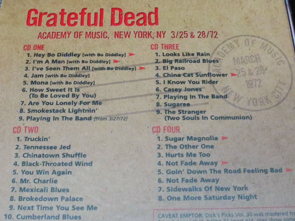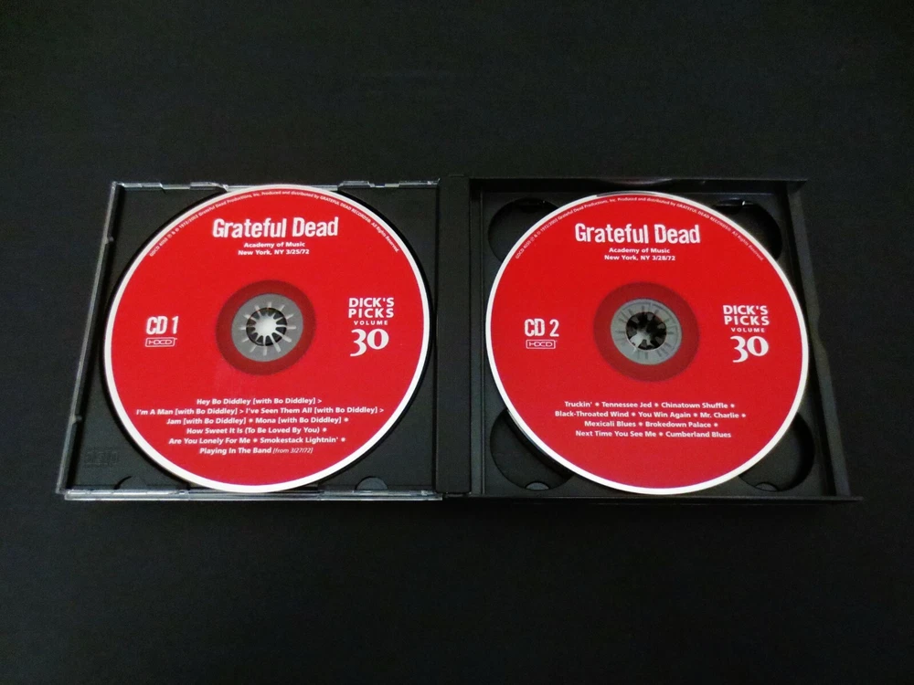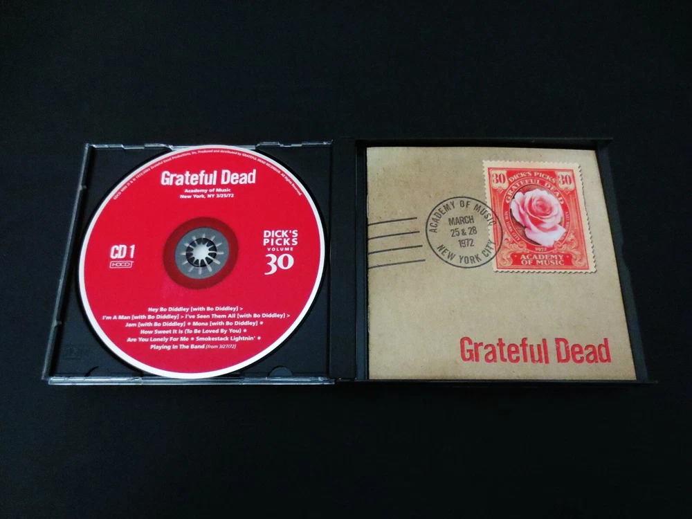 Grateful Dead : Dick's Picks 30 Volume Thirty : Academy Of Music 3/25,28/1972 : March 25 & 28, 1972 ( + March 27, 1972 ) - 3/25/1972 - 3/27/1972 - 3/28/1972 - Academy Of Music - New York, New York ( NY ) : 4 CD : 2003 (1972/2003) Grateful Dead Productions, Inc. ( GDP ) - GDCD 4050 : ' Original ! ' First ( 1st ! ) Printing ! - Very-Rare !!!! Smokin' Hot ! '72 Grateful Dead !! + Grateful Dead Playin' the Blues ! with Bo Diddley !!! ... ' Original ' 1st GDCD Printing ! - One of Rarest ! & Best !! of the ' Dick's Picks ' Thirty-Six ( 36 ) Volume Series !!!!! Hey Bo Diddley Dee !!!?! This Very-Rare ! ( 2003 GDP, Inc. Original 1st Printing ! ) Dick's Picks 30 4-CD Set captures an Amazing & Historic ! event in both Grateful Dead ! & Rock 'n Roll ! History !! Also considered to be the live & on-stage " tune-up " for the Legendary ! Europe '72 Tour, this Seven ( 7 ) Night U.S. run at New York City's Academy of Music is well-preserved in this official release by offering the goodness ( and probably the very-best ) of the 3/25 & 3/28 ( + 3/27 ) Shows from this run. Outside of the stand alone magic that '72 Dead nearly always delivers, this release offers Pigpen at his late best - still vocally strong, and giving it all he's got ! And the real treat ( and probably the true reason for this CD Set being so rare ), is that they are even joined on stage by Bo Diddley for Five ( 5 ) Songs on CD 1. This is one of the most-unique Dick's Picks ever, in the fact that a special guest is featured ' Playing in the Band ' with the Dead !!! And if that's not cool enough, I mean it's Bo Diddley we're talkin' about here !?! This is powerful & historic stuff ... indeed. My guess is that any music collector that loves either The Grateful Dead and/or " just the blues " has to have this one, simply because it is so downright awesome. Killer Grateful Dead ( with a Friend too ! ) in their Pre-Europe Tour 1972 Prime !!!!! A definite must-have here folks, indeed. Enjoy !!!!! TRACK LISTING >>> Grateful Dead ' Live ' at the Academy of Music in New York, New York ( NY ) on March 25 & 28, 1972 ( 3/25/1972 & 3/28/1972 ) : CD ONE : Hey Bo Diddley ( with Bo Diddley ) > I'm A Man I've Seen Them All Jam Mona How Sweet It Is ( To Be Loved By You ) Are You Lonely For Me Smokestack Lightnin' Playing In The Band ( from 3/27/72 ) CD TWO : Truckin' Tennessee Jed Chinatown Shuffle Black-Throated Wind You Win Again Mr. Charlie Mexicali Blues Brokedown Palace Next Time You See Me Cumberland Blues CD THREE : Looks Like Rain Big Railroad Blues El Paso China Cat Sunflower > I Know You Rider Casey Jones Playing In The Band Sugaree The Stranger ( Two Souls In Communion ) CD FOUR : Sugar Magnolia > The Other One Hurts Me Too Not Fade Away > Goin' Down The Road Feeling Bad > Not Fade Away Sidewalks Of New York One More Saturday Night Item Condition : This Very-Rare !! Out of Print ( 2003 GDP release ) Grateful Dead Dick's Picks Volume 30 Thirty ( Academy Of Music - New York, NY - 3/25 & 28/1972 ) Original ( 1st ) Printing 4-CD Disc Set ( GDCD 4050 ) is in Good/Very Good condition - close to Very Good. CD's ( Disc 1, Disc 2, Disc 3, Disc 4 ) are in Very Good condition with light marks/scratches on the playing surfaces (cosmetic-only) - please see photos. Liner Notes ( 6-Page Booklet & Front/Back Inserts ) are in Very Good condition with light indentations (please see photos). CD Case ( 4-CD Wide Jewel Case ) is in Like New (Near Mint/Mint) condition (please see photos). This CD Set has been carefully stored inside protective plastic in my professional CD rack. Please see all photos provided. Photos included are of the actual item you will receive. DP # 30 ! ... New York City !! - Academy Of Music !!! Wow !!!! Enjoy !!!!! * Please Note * : This is the Very Rare ! Genuine Original ! First ( 1st ! ) Printing - 2003 Grateful Dead Productions ( GDCD 4050 ) !!! - Not the recent 2011 Real Gone / Razor & Tie Re-Issue / Re-Print ! ). Please ask any questions before bidding/buying & Best of Luck ! ( also ... please feel free to click the 'see other items' button above to check out my other related live listings - Thanks ! ) U.S. & International buyers welcome (additional shipping charges & delivery time will apply for international destinations). Shipping charges include delivery confirmation on every item. Returns accepted within 14 days of purchase if item is unused & undamaged (buyer pays return shipping). All items will be shipped as merchandise with the winning bid entered as item value (2023-2024).