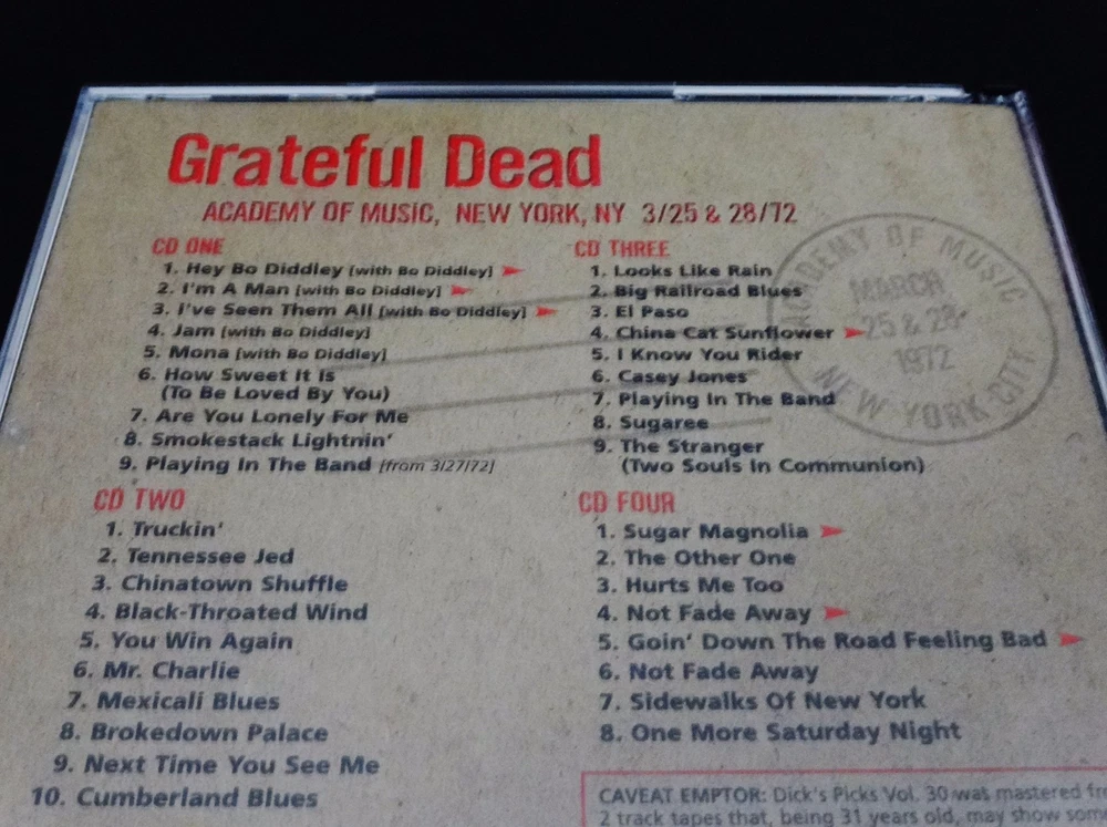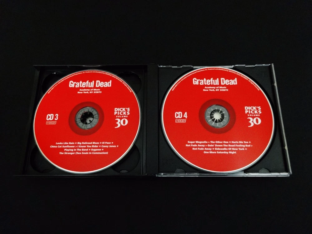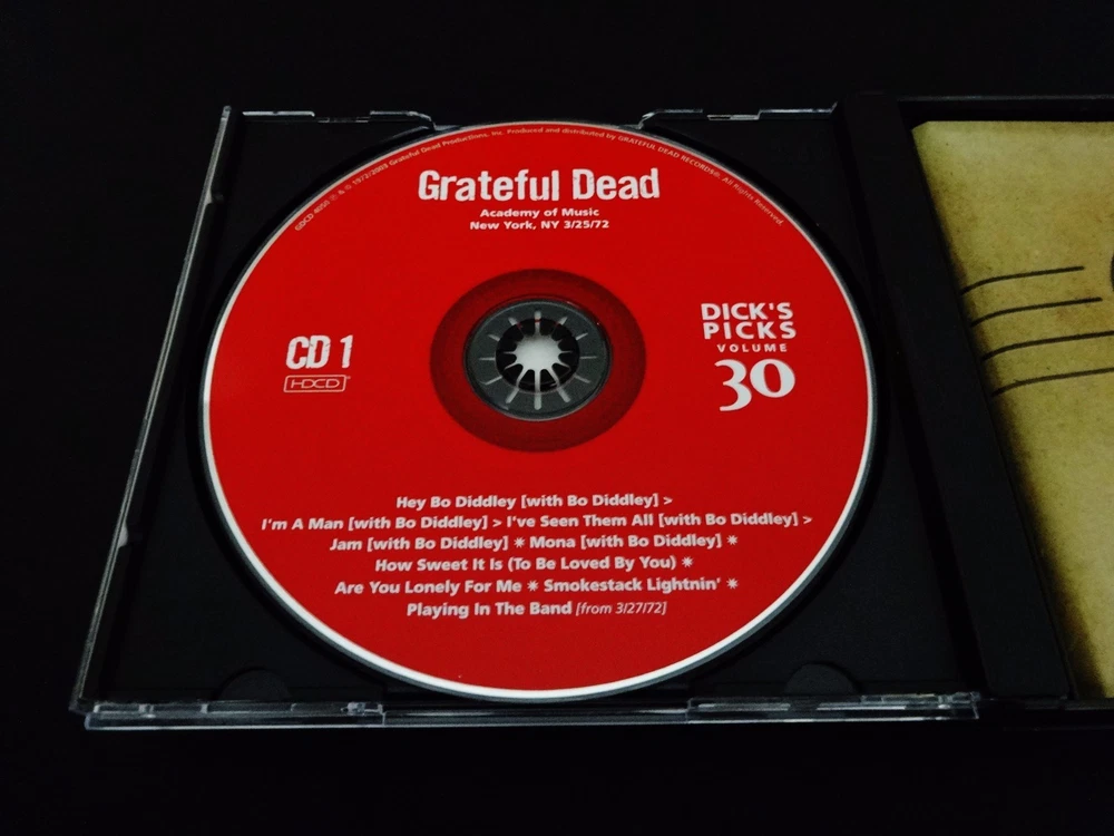 Grateful Dead : Dick's Picks 30 Volume Thirty : Academy Of Music 3/25,28/1972 : March 25 & 28, 1972 ( + March 27, 1972 ) - 3/25/1972 - 3/27/1972 - 3/28/1972 - Academy Of Music - New York, New York ( NY ) : 4 CD : 2003 (1972/2003) Grateful Dead Productions, Inc. ( GDP ) - GDCD 4050 : ' Original ! ' First ( 1st ! ) Printing ! - Very-Rare !!!! Smokin' Hot ! '72 Grateful Dead !! + Grateful Dead Playin' the Blues ! with Bo Diddley !!! ... ' Original ' 1st GDCD Printing ! - One of Rarest ! & Best !! of the ' Dick's Picks ' Thirty-Six ( 36 ) Volume Series !!!!! Hey Bo Diddley Dee !!!?! This Very-Rare ! ( 2003 GDP, Inc. Original 1st Printing ! ) Dick's Picks 30 4-CD Set captures an Amazing & Historic ! event in both Grateful Dead ! & Rock 'n Roll ! History !! Also considered to be the live & on-stage " tune-up " for the Legendary ! Europe '72 Tour, this Seven ( 7 ) Night U.S. run at New York City's Academy of Music is well-preserved in this official release by offering the goodness ( and probably the very-best ) of the 3/25 & 3/28 ( + 3/27 ) Shows from this run. Outside of the stand alone magic that '72 Dead nearly always delivers, this release offers Pigpen at his late best - still vocally strong, and giving it all he's got ! And the real treat ( and probably the true reason for this CD Set being so rare ), is that they are even joined on stage by Bo Diddley for Five ( 5 ) Songs on CD 1. This is one of the most-unique Dick's Picks ever, in the fact that a special guest is featured ' Playing in the Band ' with the Dead !!! And if that's not cool enough, I mean it's Bo Diddley we're talkin' about here !?! This is powerful & historic stuff ... indeed. My guess is that any music collector that loves either The Grateful Dead and/or " just the blues " has to have this one, simply because it is so downright awesome. Killer Grateful Dead ( with a Friend too ! ) in their Pre-Europe Tour 1972 Prime !!!!! A definite must-have here folks, indeed. Enjoy !!!!! TRACK LISTING >>> Grateful Dead ' Live ' at the Academy of Music in New York, New York ( NY ) on March 25 & 28, 1972 ( 3/25/1972 & 3/28/1972 ) : CD ONE : Hey Bo Diddley ( with Bo Diddley ) > I'm A Man I've Seen Them All Jam Mona How Sweet It Is ( To Be Loved By You ) Are You Lonely For Me Smokestack Lightnin' Playing In The Band ( from 3/27/72 ) CD TWO : Truckin' Tennessee Jed Chinatown Shuffle Black-Throated Wind You Win Again Mr. Charlie Mexicali Blues Brokedown Palace Next Time You See Me Cumberland Blues CD THREE : Looks Like Rain Big Railroad Blues El Paso China Cat Sunflower > I Know You Rider Casey Jones Playing In The Band Sugaree The Stranger ( Two Souls In Communion ) CD FOUR : Sugar Magnolia > The Other One Hurts Me Too Not Fade Away > Goin' Down The Road Feeling Bad > Not Fade Away Sidewalks Of New York One More Saturday Night Item Condition : This Very-Rare !! Out of Print ( 2003 GDP release ) Grateful Dead Dick's Picks Volume 30 Thirty ( Academy Of Music - New York, NY - 3/25 & 28/1972 ) Original ( 1st ! ) Printing 4-CD Disc Set ( GDCD 4050 ) is in Very Good condition - close to Like New overall. CD's ( Disc 1, Disc 2, Disc 3, Disc 4 ) are in Very Good & Like New condition with faint light marks on the playing surfaces (cosmetic-only) - please see photos. Liner Notes ( 6-Page Booklet & Front/Back Inserts ) are in Very Good/Like New condition with factory indentations only on the spine edge area (please see photos). CD Case ( 4-CD Wide Jewel Case ) is in Like New (Near Mint/Mint) condition (please see photos). This CD Set has been very carefully stored inside protective plastic in my professional CD rack. Please see all photos provided. Photos included are of the actual item you will receive. DP # 30 ! ... New York City !! - Academy Of Music !!! Wow !!!! Enjoy !!!!! * Please Note * : This is the Very Rare ! Genuine Original ! First ( 1st ! ) Printing - 2003 Grateful Dead Productions ( GDCD 4050 ) !!! - Not the recent 2011 Real Gone / Razor & Tie Re-Issue / Re-Print ! ). Please ask any questions before bidding/buying & Best of Luck ! ( also ... please feel free to click the 'see other items' button above to check out my other related live listings - Thanks ! ) U.S. & International buyers welcome (additional shipping charges & delivery time will apply for international destinations). Shipping charges include delivery confirmation on every item. Returns accepted within 14 days of purchase if item is unused & undamaged (buyer pays return shipping). All items will be shipped as merchandise with the winning bid entered as item value (2023-2024).