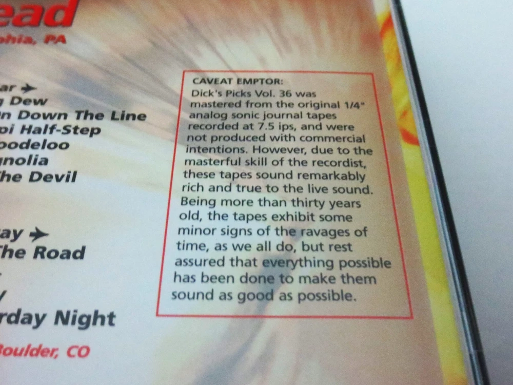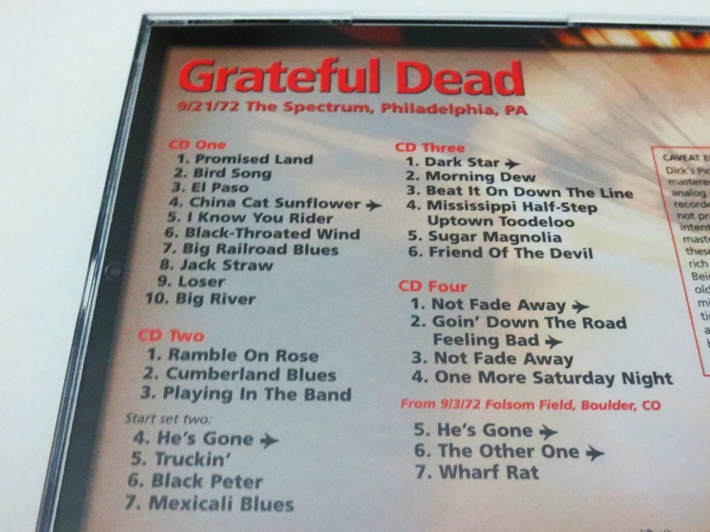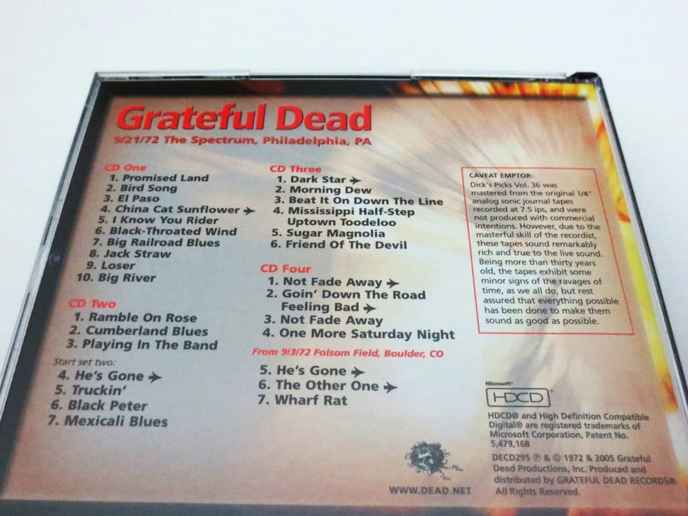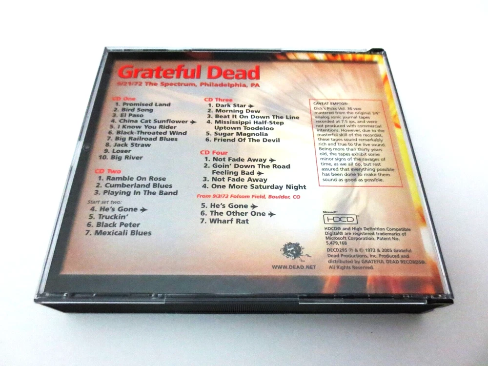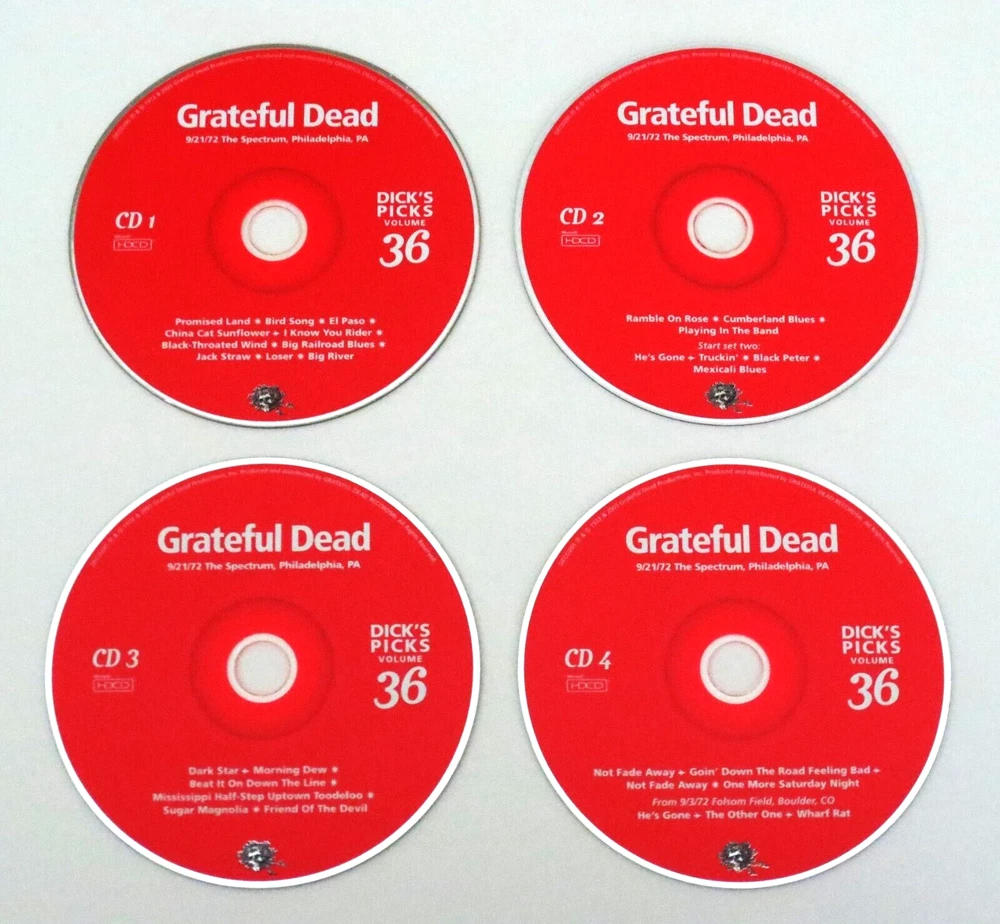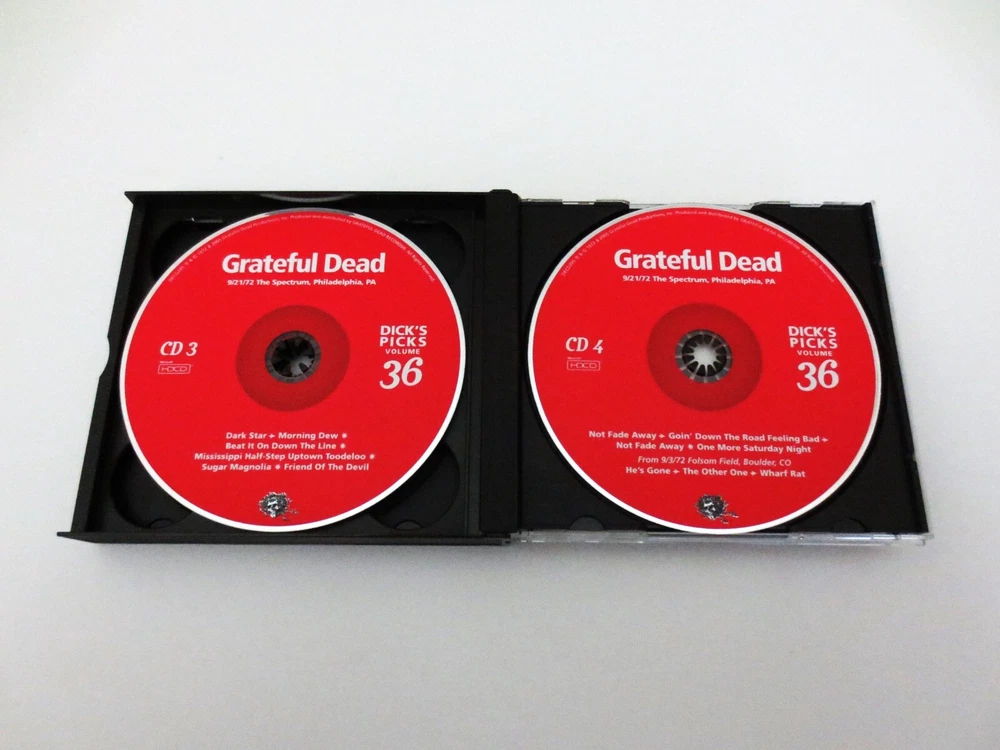 Grateful Dead - Dick's Picks 36 Volume Thirty Six - September 21, 1972 ( 9/21/1972 ) - The Spectrum - Philadelphia, Pennsylvania ( PA ) - 4 CD - 2005 Grateful Dead Productions (1972/2005) - DECD295 - Original First Printing 1972 Grateful Dead ( Jerry Garcia / Bob Weir / Phil Lesh / Bill Kreutzmann / Mickey Hart / Keith Godchaux / Donna Jean Godchaux ) - 9/21/1972 September 21, 1972 ( 9/21/1972 ) - The Spectrum - Philadelphia, Pennsylvania ( PA ) Very Good condition - near Very Good / Like New ( light scratches on CD's / very light wear on liner notes booklet / near mint-mint 4-CD case )