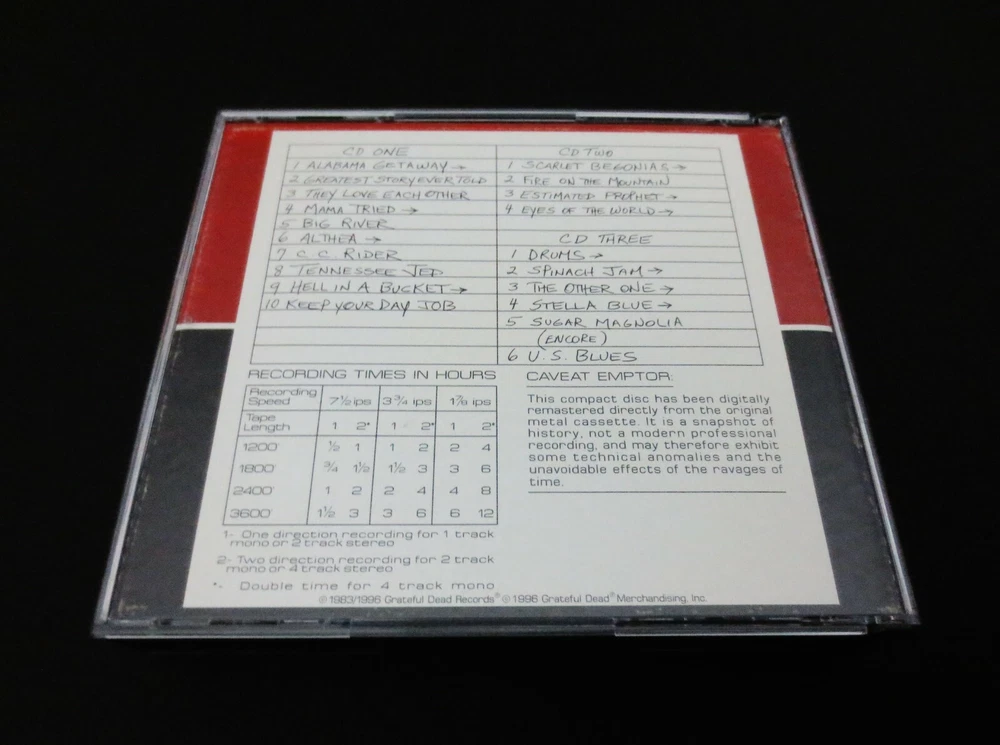 Grateful Dead : Dick's Picks 6 Volume Six : October 14, 1983 ( 10/14/1983 ) - Hartford Civic Center - Hartford, Connecticut ( CT ) : 3 CD : 1996 (1983/1996) Grateful Dead Records / Grateful Dead Merchandising, Inc. ( GDR / GDM ) - GDCD 4026 - ' Original ! ' First ( 1st ! ) Printing ! : Very Rare !! Dick's 1st Delivery ! of Early-80's ! Grateful Dead !!! = HOT !!!!!!! Three-Cheers !!! for " The Eighties !!! " - and right in Hartford, CT ! Style & Fashion !!! Yeah !!!!! ... ' Down & Dirty ' Fall Tour '83 Live-Dead !!! Thank You ! Dick's Picks !! for Number Six !!!!!! This one was released way back in 1996 ( now close-to 30-years ago !?! ), and I can distinctly-remember then being in the midst of an " Early/Mid 80's Dead-Addiction " ( one of my very-very many, self admittedly ! ) right exactly ... when it happened. My Hartford tapes from both '82 & '84 were indeed Crispy Boards, but both the '83's were audiences that could have definitely used a little ' equalization ' ... let's just say - Ha ! Not bad ( solid Nak / Beta Hi-Fi's ) - but most definitely not 2-track stereo recordings right off the Reels from the Vault !?!! Yeah Dick - Charrrrge !!! This was the 1st Dan Healy recording released in this semi-new ( at the time ) Dick's Picks Series, and it demonstrated the degree of both what Dan's knowledge and Early/Mid 80's sound technology could really offer. I mean at this point, the 1st Soundboard recording on DAT was only just a few years away ( on the 1985 Fall Tour ). And, as for this performance itself, the Band definitely brings the Heat !!! As this is a performance that goes ' upward ' all night long and they really-really put some serious live muscle into this one ! I always thought that this performance itself was very " Caveat Emptor " ( to quote Dick ! ), in the fact that it was a true snap-shot of how it would often happen live for the Boys back then in this Early-'80s Era. There are certainly some early mulligans & extra ball-drops here, early in the 1st Set - which as usual, opened the gateway for really pushing the envelope on late 1st Set material, and then set the stage for being on Fire ! ( & delivering the Goods !! ) for Set 2. I think it's great that Dick selected this one because yeah there are some off-timings & forgotten lyrics early, but then they really meld & get super tight ! There eventually becomes a Billy / Mickey / Brent / Phil rhythm-unit background that fits like a glove, while Garcia & Weir begin trading turns - just dueling this one out ! Bob is the catalyst, 1st upping the ante with an upbeat Mama Tried > Big River, which serves to Jerry like a nice cup of joe. One of Bob's early Modulus Black Axe's strikes again during the C.C. Rider, thus pushing for the Bucket > Day Job burner to close One. Then come the Big-Guns !, right straight out of the gate ... Scarlet > Fire > Estimated > Eyes > Drums > Jam > Other One !!! Smack, DeeP !!! to Center Field - & way-deep, for that matter. A heartfelt Stella leads into a hearty Sugar Mag closer with a U.S. Blues Encore too. This Show just goes from nearly nodding off ( or just waking up ? ) & asleep at the wheel, to the Band aggressively challenging themselves and barnstorming the P.A.'s !! So perfect, and as mentioned - such a real gutsy pick too by Dick ! to deliver what a certain & distinct quadrant of Deadheads are really truly thirsty for ... the Rock & Roll '80's ! G.D. deeply saturated in Both ! the Blues ... ( sometimes Distortion !! too ) & Rock & Roll !!! Sometimes it's a little slop that creates a little space & allows the creative juices to flow for the Grateful Dead to work their one & only Brand of Live Magic !! Another thing too fellow fans, don't forget that this is The Era of " Circus " Magazine - so with that pleasant reminder : Bobby Ace, Thank You for the Whammy-Bar !! Yes, I'm in the ' elite ' camp of Fan-Faithful that think you should have never unscrewed it ?!? Bring back the Whammy ! - Bring Back the Whammy !! Yeah '80's Live-Dead !!! - just bringing-it !! Right-on . . . Enjoy !!!!! TRACK LISTING >>> Grateful Dead recorded ' Live ' at the Hartford Civic Center in Hartford, Connecticut ( CT ) on October 14, 1983 ( 10/14/1983 ) : CD ONE ( 1 ) : Alabama Getaway > Greatest Story Ever Told They Love Each Other Mama Tried > Big River Althea > C.C. Rider Tennessee Jed Hell In A Bucket > Day Job CD TWO ( 2 ) : Scarlet Begonias > Fire On The Mountain Estimated Prophet > Eyes Of The World > CD THREE ( 3 ) : Drums > Spinach Jam > Other One > Stella Blue > Sugar Magnolia Encore : U.S. Blues Item Condition : This Very-Rare ! Out of Print ( 1996 GDR / GDM release ) Grateful Dead Dick's Picks Volume Six ( 6 ) Hartford Civic Center - Hartford, CT ( GDCD 4026 ) 3-CD Set is in Good/Very Good condition - Very Good overall. CD's ( Disc 1, Disc 2, Disc 3 ) are in Very Good condition, with light marks/scratches on the playing surfaces (please see photos). Liner Notes ( Inside Insert ( 2-Page Fold-Out ) & Front/Back Inserts ) are in Very Good/Like New condition - near Like New (Near Mint), with light curling indentations (please see photos). CD Case ( 3-CD Wide Jewel Case ) is in Like New (Near Mint/Mint) condition (please see photos). This 3-CD Set has been very carefully stored inside protective plastic in my professional CD rack (please see photos). Please see all photos provided. Photos included are of the actual item you will receive. The ' 1st-Taste ! ' of G.D. '80's Heat !! in the Dick's Picks Series ! - Courtesy of Dick !! - 10/14/83 Hartford !!! ... Enjoy !!!!! Please ask any questions before bidding/buying & Best of Luck ! ( also ... please feel free to click the 'see other items' button above to check out my other live listings - Thanks ! ) U.S. & International buyers welcome (additional international shipping charges & delivery time will apply for international destinations). Shipping charges include delivery confirmation on every item. Returns accepted within 14 days of purchase if item is returned unus