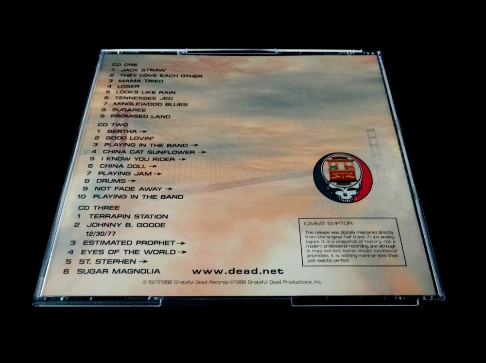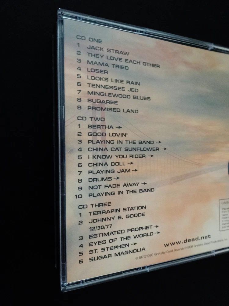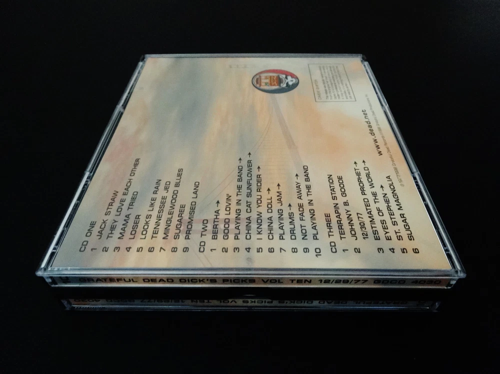 Grateful Dead : Dick's Picks 10 Volume Ten : December 29, 1977 ( 12/29/1977 ) Winterland Arena - San Francisco, California ( CA ) + December 30, 1977 ( 12/30/1977 - Winterland ) : 3 CD : 1998 (1977/1998) Grateful Dead Records / Grateful Dead Productions, Inc. ( GDR / GDP ) - GDCD 4030 : ' Original ! ' First ( 1st ! ) Printing ! ... Very-Rare !!! Night Two ( 2 ) of the 4-Night " Farewell to 1977 Dead ! " run at the Winterland Arena ( where else !? ) !!! Fabulous !! '77 Live-Dead !!!!! Growing up ( .... in the analog days ), I always mentally viewed this 1977 New Years Eve run as a sort of Farewell ! & Celebration !! to what is arguably the Band's greatest year -- from a standpoint of quality performances, and also from the standpoint of touring a darn-good studio album in Terrapin Station. From the very 1st '77 Tour opener at the Swing Auditorium in San Bernardino ( 2/26/77 ), you could tell that this band line-up had solidified, and they were really on to something. I would have loved to have seen the faces of the fans from the stage, as the band did -- right in the thick of them launching into the beautiful & musically complex " Terrapin Station " for its inaugural-appearance in a live Dead Set. Mmmm ... Heck, there were probably even mixed-reviews - as rumor has it that some of us Deadheads don't like change !? Ha ! But the incredible West Coast / East Coast Spring Tour run, led on to what is simply one of " Rock & Roll's " Greatest Tours of All-Time : Summer Tour 1977 !!! As we know, in early & mid-May the Band takes the fans straight to the Moon ! Well, enough on that ... but then it just won't stop - & the train kept-on-a-running, I mean What ??! -- 11/06/77 Binghamton ? Probably " The " example as far as the Fall Tour on the East Coast goes. Then this run to settle down the Winter Tour in the Bay Area at the cozy Winterland, and call it a year. Maybe the Band's best year ? Just maybe ? To my ear, Dick hit the head on the nail ( oops, visa-versa - or something like that ! ) when he chose this 12/29/77 Show from this absolutely great 4-night run. Don't forget, this was released way back in 1998, but it was only the 2nd head-first dive into '77 material, with DP #3 being the initial taste for the tone hungry fans. Set One offers the ideal array ( even order ! ) of '77 material with maybe Jack Straw - Loser - or maybe even Sugaree taking the cake. Smooth, that's what 1977 G.D. is, it's " Smooth ! ". But, if Set One took the cake, then Set Two clearly takes it away and chows it down !! A Rockin' ! Bertha > Good Lovin' to launch the groove & set the mood. But then a spacy ( and at times upbeat / aggressive ) Playin' in the Band leads to one of one of my personal favorite live moments of '77 ( and rest assured, there are many indeed ) . . . the China Cat > Rider > China Doll > Playin' Jam into Drums .... Holy Fender-Twin Reverb !!?!!! Jerry, naturally ... Disc 3 also has four ( 4 ) tracks from the very next night ( 12/30/77 ), which is great too because you can get a real nice feel of how the band measures up / compares, and can even get exact early insight on what New Years Eve 1977-78 might have in store. Fare Thee Well " '77 " our Grate ! Friend !!! Enjoy !!!!! TRACK LISTING >>> Grateful Dead recorded ' Live ' at the Winterland Arena in San Francisco, California ( CA ) on December 29, 1977 ( + December 30, 1977 ) - 12/29/77 ( Complete ) & 12/30/77 ( 4-Tracks ) : CD One : Jack Straw They Love Each Other Mama Tried Loser Looks Like Rain Tennessee Jed Minglewood Blues Sugaree Promised Land CD Two : Bertha Good Lovin' Playing In The Band > China Cat Sunflower > I Know You Rider > China Doll > Playing Jam > Drums > Not Fade Away > Playing In The Band CD Three : Terrapin Station Johnny B. Goode 12/30/77 : Estimated Prophet > Eyes Of The World > St. Stephen > Sugar Magnolia Item Condition : This Very Rare ! Out of Print ( 1998 GDR / GDP release - ' Original ! ' First ( 1st ! ) Printing - GDCD 4030 ) Grateful Dead Dick's Picks 10 Ten ( Winterland Arena - San Francisco, CA - 12/29/77 ( +12/30/77 Tracks ) ) is in Like New condition. CD's ( Disc 1, Disc 2, Disc 3 ) are in Like New (Near Mint/Mint) condition (please see photos). Liner Notes ( Inside Tri-Fold Insert & Front/Back Insert Cards ) are in Like New (Near Mint/Mint) condition (please see photos). CD Case ( 3-CD Jewel Case ) is in Like New (Near Mint/Mint) condition (please see photos). Please see all photos provided. Photos included are of the actual item you will receive. '77 G.D. in S.F. !! - the New Year's Eve ! run - at the Winterland !!! ... Enjoy !!!!! * Please Note * : This Grateful Dead Dick's Picks Volume 10 3-CD Set is the ' Original ! ' First ( 1st ! ) Printing of this release ( GDCD 4030 : 1998 GDR / GDP ) - not the later 2000 GDP Issue, or the Real Gone ( RGM ) re-issue from much later ( 2014 ). This set was purchased upon it's initial 1998 release, and can be easily identified by the GDCD 4030, and the " full " black inner circles on the CD's (please see photos). Please see all photos provided ... & Enjoy !!! Please ask any questions before bidding/buying & Best of Luck ! ( also ... please feel free to click the 'see other items' button above to check-out my other related live listings - Thanks ! ) U.S. & International buyers welcome (additional shipping charges & delivery time will apply for international destinations). Shipping charges include delivery confirmation on every item. Returns accepted within 14 days of purchase if item is returned unused & undamaged (buyer pays return shipping). All items will be shipped as merchandise with the winning bid entered as item value (2025-2026).