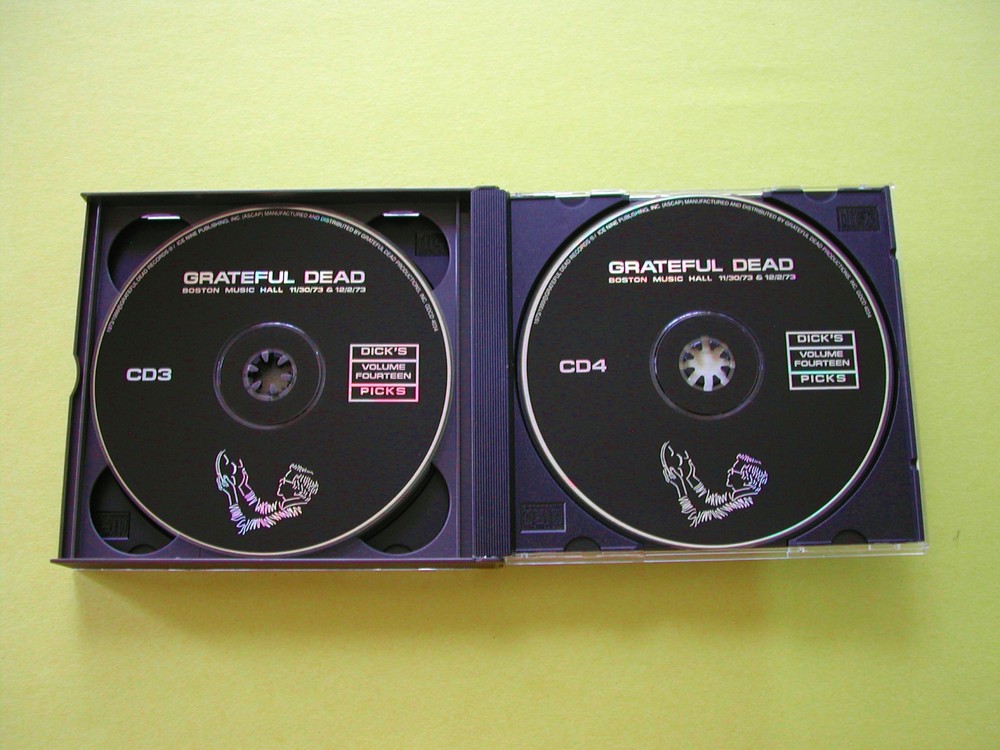 Grateful Dead : Dick's Picks 14 Volume Fourteen : Boston Music Hall - Boston, Massachusetts ( MA ) - November 30, 1972 ( 11/30/1973 ) & December 2, 1973 ( 12/2/1973 ) : 4 CD : 1999 (1973/1999) Grateful Dead Productions, Inc. ( GDP ) - GDCD 4034 : ' Original ! ' First ( 1st ! ) Printing ! : Very-Rare !!! Fabulous ! Winter Tour 1973 Grateful Dead performances from the Boston Music Hall ... 4-CD Set !!!! - Both ! November 30, 1973 & December 2, 1973 from the Boston Music Hall !! - in Boston, Mass. !!! So ... " What Would The Grateful Dead Do ? " More specifically - that is, if it was the 1973 Winter Tour back East and you were about to kick-off a Ten ( 10 ) Show East Coast run ( starting with Three ( 3 ) nights in front of a Feisty & Ready Boston crowd ) ?!?!? Open the show with " Morning Dew ". I mean what else ? Ahhhh ... the Dew Show-Opener !! That is indeed the very-last time that ever happened in the remainder of The Grateful Dead's 30-Year Career . . . I think it is remarkably symbolic that 1973 is the last time that happened. In fact, I think it is fair to say that '73 was the very last time that a lot of things happened, from a standpoint of " just that way ". I mean this is a year/era/period where just anything could & might happen, but if it did it would happen in a fantastically-controlled and excellent fashion - and often, with a tinge of pure musical perfection. I mean this is the Mucho ! & Bueno !! period for the Band ! You might have walked out of a show back then 45-Years ago and tried to remember the set list, but you couldn't ? But don't worry, because it really wasn't your fault. The Dead are to blame, completely. Because unlike any other live-bands playing concerts in '73 ( arguably the tail-end of Rock's finest-era ... ), the Grateful Dead choose to deliver over 25 + songs to you in just One ( 1 ) Show !!!!! I mean from a comparative standpoint, what did a band like Led Zep do ? Play maybe 15 or 16 songs that you knew were coming anyways because they were touring a new album ? And if you made the push to the next show, you would hear the exact same set, maybe only switching a song or two in the name of variety ? I love my Zeppelin, and am by no means knocking them ( I mean who could, right ? ) -- but in the U.S. in '73, that Tour was the biggest & it was indeed " The Bomb " - no doubt ... basically re-writing the rules on Rock 'n Roll, and especially from a ' promotion ' standpoint ( or should I say band vs. promoter ? ). But here the Dead are in '73, not only in one of their most exciting sonic periods - but also in their most generous times ... more generous to the loyal fans then ever, really ??! Twenty-five(-ish) tunes per night for the Deadhead Faithful, with many of them very-long, jammed out, maybe spacey, and many even segued too ??!?! I Love ! my '73 Dead, and I ( along with many Fans ) consider it to be one of the bands Four ( 4 ) major " Peak " periods and eras. It is all about crystally-tight delivery & immaculate time-keeping ( to say the least ! ). Song after song. Night after night, and jam after Jam !!! Every member is not only settled in their voice, tone and role - but the bold musical chances are taken pretty much absolutely at will. And one other thing all ye' fellow Deadheads ... Do we all collectively agree that no other era that had as many ' PERFECT ' song segue transitions then our beloved '73 Dead ??? Now we can politely argue ( discuss ! ) later which specific period/era/year was the Band's Very-Best !? ... as Wow - that's always a real-long ...conversation. Oh my. But, until then, enjoy this Massive 4-Disc Set delivered way-back-when in Beantown, because it is indeed a Big-One ! Some pretty Huge !!! '73 G.D. - no doubt. " Walk me out in the Morning Dew ! my friend " ... Twice !! Enjoy !!!!! TRACK LISTING >>>> Grateful Dead ' Live ' from the Boston Music Hall in Boston, Massachusetts ( MA ) on the 1973 Winter Tour ( 11/30/1973 & 12/2/1973 ) : DISC 1 : Morning Dew Mexicali Blues Dire Wolf Black-Throated Wind Don't Ease Me In Big River They Love Each Other Playing In The Band DISC 2 : Here Comes Sunshine Weather Report Suite > Dark Star Jam > Eyes Of The World > Sugar Magnolia DISC 3 : Cold Rain And Snow Beat It On Down The Line Brown-Eyed Woman / The Merry-Go-Round Broke Down / Beer Barrel Polka Jack Straw Ramble On Rose Weather Report Suite Wharf Rat > Mississippi Half-Step Uptown Toodeloo > DISC 4 : Playing In The Band > Jam > He's Gone > Truckin' > Stella Blue Morning Dew Item Condition : This Very-Rare ! Out of Print ( 1999 GDP release ) - ' Original ! ' First ( 1st ! ) Printing ( GDCD 4034 ) - Grateful Dead Dick's Picks Volume Fourteen ( 14 ) Boston 1973 4-CD Disc Set is in overall Like New condition. All Four ( 4 ) CD's ( Disc 1, Disc 2, Disc 3, Disc 4 ) are in Like New (Near Mint/Mint) condition. Liner Notes ( Inside Insert ( Tri-Fold ), and Front/Back Insert Cards ) are in Very Good/Like New condition, as there is some rippling on the Inside Insert from being caught inside the Jewel Case - no wear from use, just from having the case closed on it (please see photos). CD Case ( 4-CD ) is in Like New (Near Mint/Mint!) condition (please see photos). This 4-CD Set has been very carefully stored inside protective plastic in my professional CD rack. Please see all photos provided. Photos included are of the actual items you will receive. 4-CD Live-Dead ! - in Boston !! - from '73 !!! ... Enjoy !!!! * Please Note * : This Rare & Out of Print 4-CD Set is the ' Original ! ' First ( 1st ! ) Printing ( GDCD 4034 ) - it is Not the later ' Re-Printing ' with the barcode printed on the Back Insert Card - or - the 11-digit serial number on the sides of the spine ( please see photos ! ). The Real-Original First ( 1st Generation ! ) Printing of GDCD 4034 offered here ! Thanks !! ... & Enjoy !!! Please ask any questions before bidding/buying and Best of Luck ! ( also ... please feel free to click the 'see other items' button to check-out my other related 