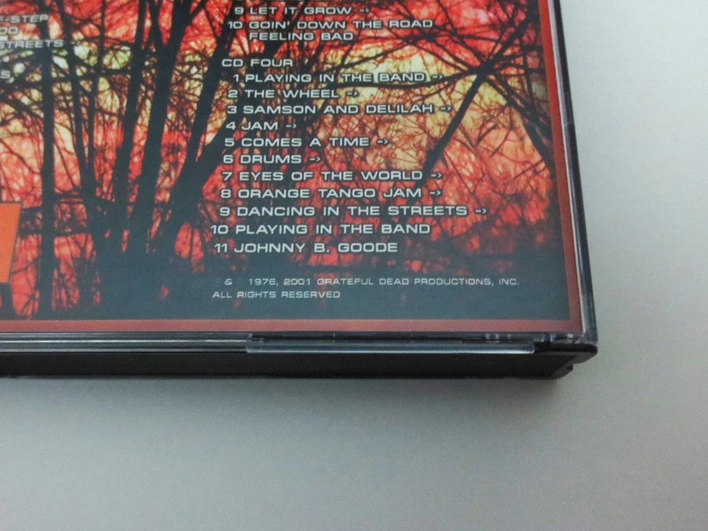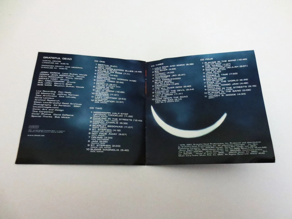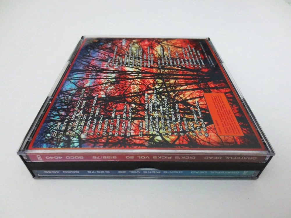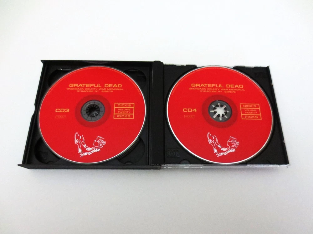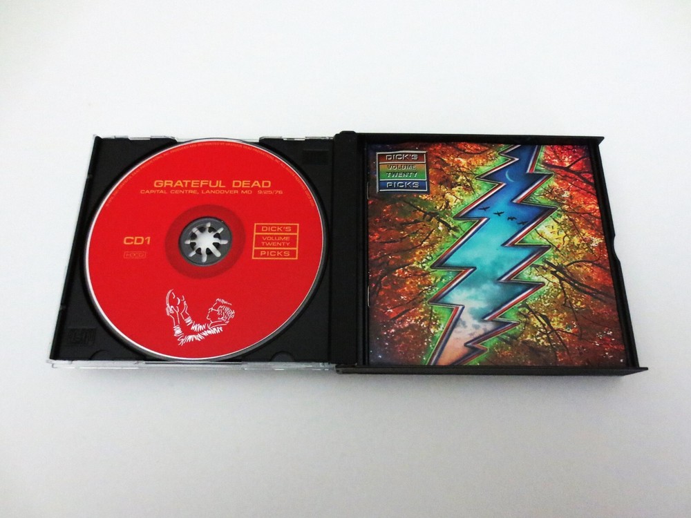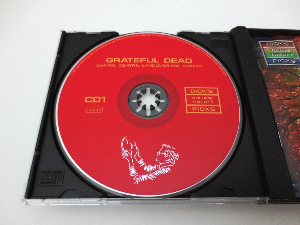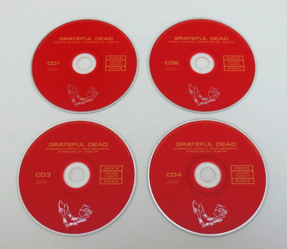 Grateful Dead - Dick's Picks 20 - Volume Twenty - 1976 - September 25, 1976 ( 9/25/1976 ) - Capital Centre - Landover, Maryland ( MD ) & September 28, 1976 ( 9/28/1976 ) - Onondaga County War Memorial - Syracuse, New York ( NY ) - 4 CD - 2001 Grateful Dead Productions (1976/2001) - GDCD 4040 ( 1st Edition ) - Original First Printing 1976 Grateful Dead ( Jerry Garcia / Bob Weir / Phil Lesh / Bill Kreutzmann / Mickey Hart / Keith Godchaux / Donna Jean Godchaux ) - 9/25/76 Landover, MD & 9/28/76 Syracuse, NY September 25, 1976 ( 9/25/1976 ) - Capital Centre - Landover, Maryland ( MD ) September 28, 1976 ( 9/28/1976 ) - Onondaga County War Memorial - Syracuse, New York ( NY ) The Immaculate & Powerful ! 3rd and 5th East-Coast Shows from the Grateful Dead '76 Fall Tour - from both the Good Ol' Cap Centre in Maryland, and the Onondaga Co. War Memorial in Syracuse, NY. Live G.D. with J. Garcia on his Travis Bean ! Guitar. Very Good condition ( light scratches on CD's / light indentations on liner notes / near mint-mint CD case )