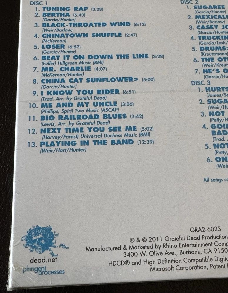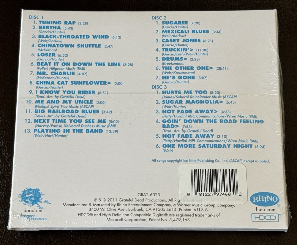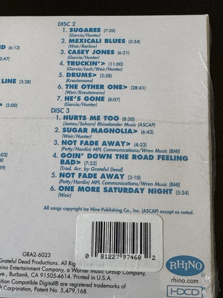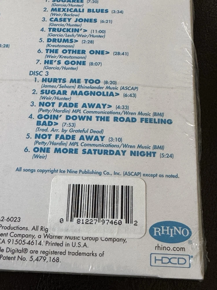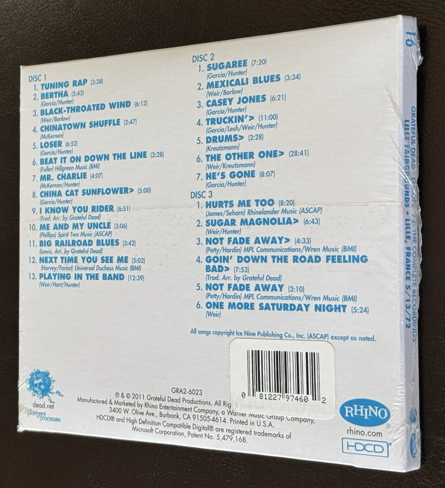 *****ON THE FRONT OF THE CD, THE TOP AND BOTTOM LEFT AND RIGHT HAND CORNERS ARE CREASED AND ROUNDED. ON THE BACK, THE TOP AND BOTTOM LEFT AND RIGHT HAND CORNERS ARE CREASED AND ROUNDED. ON THE FRONT, THERE ARE DENTS TO THE LEFT OF THE RIGHT SIDE EDGE. THE TOP AND BOTTOM EDGES OF WHERE THE CDS ARE REMOVED AND THE SPINE OF THE CD CASE ARE DENTED AND CREASED. PLEASE SEE ALL 24 PHOTOS OF THE ACTUAL ITEM THAT YOU WILL BE RECEIVING. PLEASE READ THE DESCRIPTION AND CONTACT ME IF YOU HAVE ANY QUESTIONS REGARDING THE CONDITION PRIOR TO PURCHASING THE ITEM. THE CD HAS ROUNDED CORNERS, CREASES, AND OTHER IMPERFECTIONS***** *****CUSTOMER SERVICE IS OUR PRIORITY**** Please contact me with any questions. I will respond to all questions within 24 hours. ***You will receive 1 Grateful Dead Europe ‘72 Lille, France 5/13/72 CD! It is factory sealed and brand new! I will provide an estimated arrival date of your package. Packages may be delayed due to circumstances that are beyond my control. Packages may be delayed due to the following reasons: *Natural Disasters, Holidays, and other situations that will cause the mail service to slow down. The estimated arrival date of your order is an estimate and not an exact date and it is provided by the Post Office. *INTERNATIONAL SHIPPING International Shipping available through Ebay Global Shipping Program. *Please note that International May be delayed due to the pandemic.**** *SHIPPING IN THE US I will insure it for the full amount for US customers only. I will also provide you with a tracking number to track it for US customers only. *LOCAL PICK UP We will meet in front of a Police Station to ensure a safe pick up. *Monday through Friday Orders Orders will ship within 48 hours or sooner. *Saturday Orders -Orders received before 6am Pacific Time on Saturday will be shipped. Orders received after 6am Pacific Time will be shipped on Monday. *Sunday Orders-Orders received on Sunday will be shipped on Monday. Holidays and natural disasters may cause a delay with your order. If an order is received on a Sunday and Monday is a holiday, it will be shipped on Tuesday. *Post Office All orders are shipped through the United State Post Office unless you prefer another shipping method. Please contact me if you prefer another shipping method or if you would like your order delivered at a faster rate. ******Please read and contact me if you have any questions. **If your order is damaged during the shipping process, keep the bubble envelope, contact me and provide me pictures of the bubble envelope and the damaged item. After I have received the pictures of the damaged bubble envelope and the damaged item, I will then file a claim with the United States Post Office since all items I sell are 100% insured. Once the damaged item claim is settled, you will receive a full refund*** This cd has never been played. There are dings and bends on the four corners on the front and back. Please see the pictures. I took pictures of all 4 corners on the front and back. The corners have areas where they are not perfectly sharp and square and the four corners are rounded on the front and back. The CD sleeve is angled and does not line up evenly and the spine is not straight but at an angle. On the front, the top and bottom left hand corners are creased and there are other imperfections. The top and bottom right hand corners are creased and there are other imperfections. The left and right side edges have bent edges and white scuff marks. On the back, the top and bottom left hand corners are rounded, creased, and they have white scuff marks. The top and bottom right hand corners are rounded, creased, and they have white scuff marks. The spine of the cd case top and bottom edges are creased and bent and there are white scuff marks. The area where the CDs are removed and the top and bottom edges are creased and bent and there are white scuff marks. All four corners on the front and back are rounded. Please see the pictures. There are other areas of imperfections, scratch marks, and marks on the cd case. I am the original owner. Please contact me with any questions prior to your purchase.