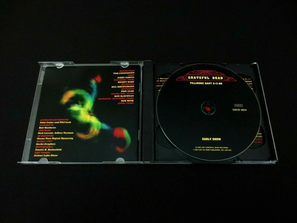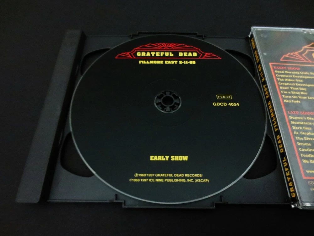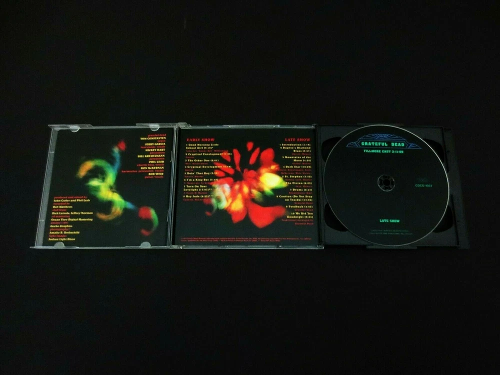 Grateful Dead : Fillmore East 2-11-69 : Live in New York City ! - at Bill Graham's Fillmore East ! : February 11, 1969 ( 2/11/1969 ) - Fillmore East - New York, New York ( NY ) : 2 CD : 1997 (1969/1997) Grateful Dead Records / Arista Records ( GDR / Arista ) - GDCD 4054 - ' Original ' First ( 1st ! ) Printing ! : G.D. Live ! in 1969 !! - in NYC !!! ... Featuring Doug Irwin " Wolf ! " Cartoon Cover Art !! Massive ! G.D. release featuring Blistering-Hot ! '69 New York City G.D. - right at Bill Graham's Fillmore East - in New York City !!!!! Dead Fans ... If you have yet to put this one into your Archive - CD Collection - Music Rotation - or Playlist - well ... you had better get a Movin' ! Because this is Blistering-Hot ! 1969 Grateful Dead !! No Joke. No joke at all. This was ( Very Thankfully ! ) pro-released originally in 1997 - and it was really one of the 1st " Tastes " of G.D. Vault releases in the digital format - following the final Grateful Dead 1995 Tour. We were all curious what the strategy would be with the future of vault releases - as Dick's Picks was well on its successful way - just finishing up the 1st 10 releases ( through DP # 12 - I believe ? ) -- then came this - Blammm ! Right out of the blue ! To my eyes & ears - " 100 Hundred Year Hall " & " Fallout from the Phil Zone " - were the two non-Dick's Picks bombs ( good-bombs ! ) that the Dead Fans were hit with. Obviously ... " Phil Zone " was a compilation ( though a Massive ! one ) -- but here were two ( 2 ) other Huge ! Shows released in the 2-CD Format - and not by Dick Latvala - or under the " Dick's Pick's " Series. " 100 Year Hall " was first in 1996 - and then this '69 Heater debuted in 1997. Two immediately Must-Have Dead Shows - without any question at all. And here we are over 25-Years later ! now - and these two ( 2 ) releases are Still ! two of the Very-Best ! - that stand all on their own. And what's really crazy is to hear is just how ' different ' the Band had become in less than a 4-year period - from '69 to '72. And for those of you who treasure your heavy-duty - rough and ready Grateful Dead ( and Pigpen ! ) ... well here are just a few reminders of " 1969 " - almost light-years away from the '72 Sound >>> Schoolgirl - Doin' That Rag - King Bee - Hey Jude ?!? - Dupree's - Mountains of the Moon - St. Stephen - The Eleven - We Bid You Goodnight. None ! of which were played on - say the Europe '72 Tour ??! Wow. I mean just think about that. A list of Quintessential ! - Genius & basically Mind-blowing ! Good Ol' Grateful Dead - and none of it is on the set list roster just 3 years later - Wow. That is a true-sign of just how great this band truly is - they really didn't think they needed to still play All ! of this fantastic song & jam material because they simply had much more in them - and were continuing to grow. Whether the Late 60's/Early 70's Dead Fans were glad to see all of this material vanish ? I don't know. Luckily, some of it did make returns into the live rotation - but not quite in the quantity and quality you will hear between Early '68 and 1970. So really, as you probably already well know this is the Grateful Dead in the middle-midst of their Very 1st Big-Prime. Just Unbelievable ! Live Musicianship !! & Live-Delivery !!! offered here. Enjoy !!! ... as it is pretty hard not-to enjoy this young & feisty " Pigpen Era " Live-Dead !!!!! Just Killer . . . TRACK LISTING >>> Grateful Dead ' Live ' at Bill Graham's Fillmore East in New York, NY on 2-11-69 : DISC 1 : EARLY SHOW : Good Morning Little Schoolgirl Cryptical Envelopment The Other One Cryptical Envelopment ( Reprise ) Doin' That Rag I'm A King Bee Turn On Your Love Light Hey Jude DISC 2 : LATE SHOW : Introduction Dupree's Diamond Blues Mountains Of The Moon Dark Star St. Stephen The Eleven Drums Caution ( Do Not Stop On Tracks ) Feedback We Bid You Goodnight Item Condition : This Rare ( 1997 GDR / Arista ' Original ' First ( 1st ! ) Printing ! - GDCD 4054 ) Grateful Dead Fillmore East 2-11-69 ( 2-CD ) is in Very Good condition - close to Very Good/Like New condition. CD's ( Disc 1 & Disc 2 ) are in Very Good/Like New condition - close to Like New (Near Mint),with very faint light marks on the playing surfaces (please see photos). Liner Notes ( 6-Page Front Insert & Back Insert Card ) are in Very Good condition - close to Very Good/Like New, with faint/light indentations (please see photos). CD Case ( Original 2-CD Fold-Out Jewel Case ) is in Very Good condition with light-medium outer surface wear (please see photos). This 2-CD Set has been carefully stored inside my professional CD rack. Please see all photos provided. Photos included are of the actual item you will receive. Bill Graham's Fillmore East ! in New York City !! - on 2-11-69 !!! ... Enjoy !!!!! Please ask any questions before bidding/buying & Best of Luck ! ( also ... please feel free to click the 'see other items' button above to check-out my other related live listings - Thanks ! ) U.S. & International buyers welcome (additional shipping charges & delivery time will apply for international destinations). Shipping charges include delivery confirmation on every item. Returns accepted within 14 days of purchase if item is returned unused & undamaged (buyer pays return shipping). All items will be shipped as merchandise with the winning bid entered as item value (2023-2024).