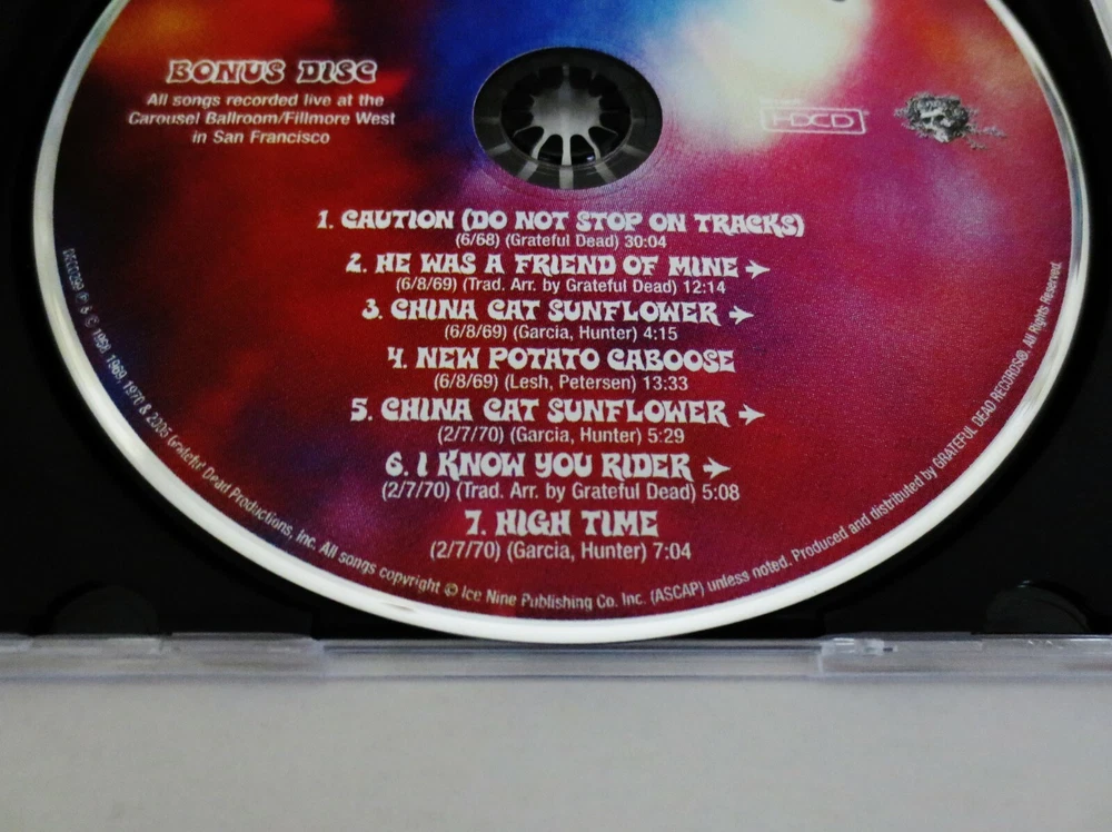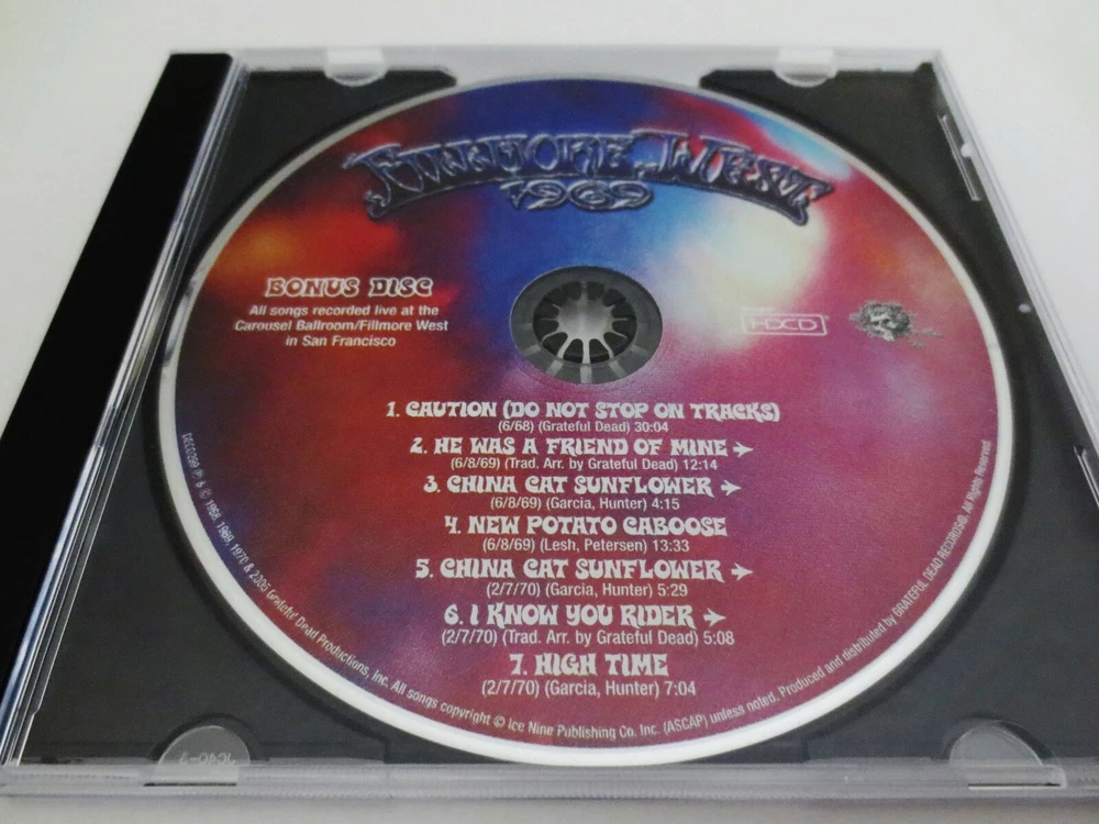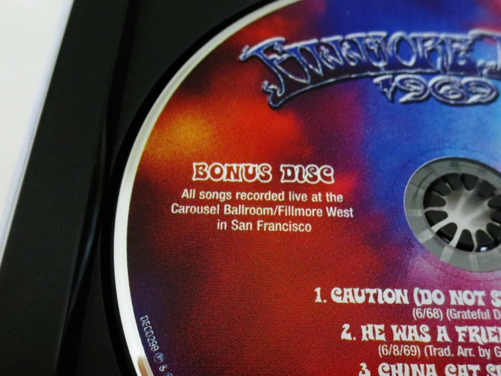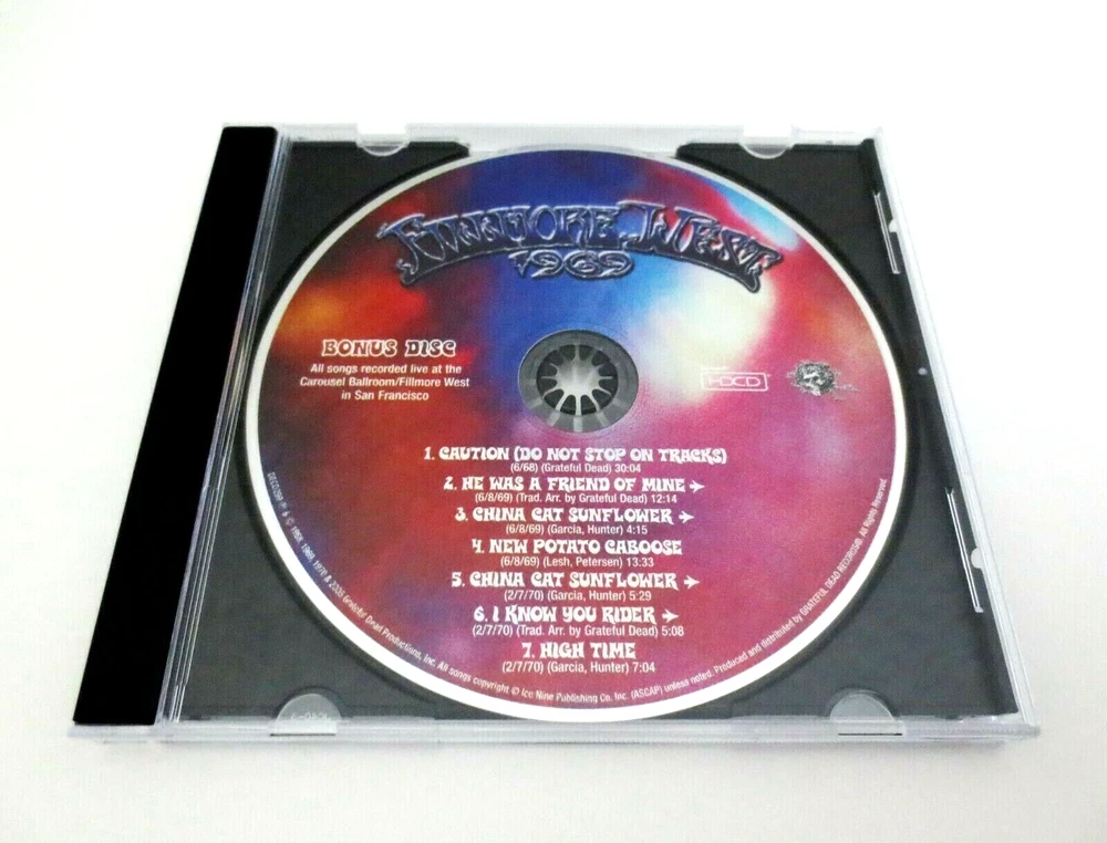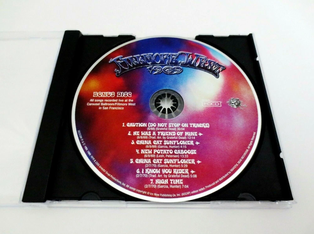 Grateful Dead - Fillmore West 1969 Bonus Disc CD - June 1968 through February 1970 - Carousel Ballroom - Fillmore West - San Francisco, California ( CA ) - CD ( 1-CD ) - 2005 Grateful Dead Productions (1968-1970/2005) - Fillmore West 1969 Box Set ' Bonus Disc CD ' - DECD299 June 1968 - February 1970 Grateful Dead ( Jerry Garcia / Ron Pigpen McKernan / Bob Weir / Bill Kreutzmann / Phil Lesh / Mickey Hart / Tom Constanten ) - 6/68 - 6/8/69 - 2/7/70 - Carousel Ballroom / Fillmore West - San Francisco, CA June 1968 ( 6/1968 ) - Carousel Ballroom - San Francisco, California ( CA ) June 8, 1969 ( 6/8/1969 ) - Fillmore West - San Francisco, California ( CA ) February 2, 1970 ( 2/2/1970 ) - Fillmore West - San Francisco, California ( CA ) Bonus Disc CD released by Grateful Dead Productions in 2005 - with pre/early orders of Fillmore West 1969 box sets. Very Good ( light scratches on CD / brand new CD jewel case included ) ( Originally-issued in generic white paper sleeve only - no single sleeve flat case or hard case was ever issued with this Bonus Disc CD - CD Only )