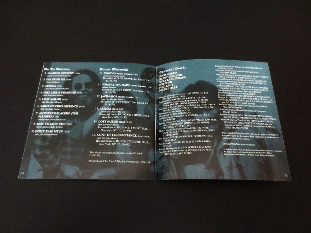 Grateful Dead : Go To Heaven : 19 80 : 2004 Remastered ( 2006 GDP / Rhino ' Individual' Issue Remaster ! ) with Six ( 6 ) Studio Outtakes ! & Live !! Bonus Material Tracks !!! : 1-CD : Grateful Dead ' Band Front Cover Photo ' ( + ' alternate ' internal Liner Notes Photos ) - by Bob Seidemann ... & ' Phoenix Rising ' Back Cover Art - by Stanley Mouse ! : '80's DEAD !!!!! Dead Fans !! ... & " 80's Dead Heads !!! ". Offered here is the Grateful Dead 2004 " Remastered " ( 2006 GDP / Rhino ' Individually ' Issued ) CD ... " Go To Heaven " !! ! The 19 80 Studio Masterpiece ! by The Good Ol' ( '80's ! ) Grateful Dead !! ... commonly-known as the G.D. " Gateway " to the 1980's !!! ... & also ( naturally ... ) - " The Brent-Era !!!!! ". Yum !!! As t his 19 80 Album is nothing - short of Absolutely-Amazing !!... as for me personally - I've always kind of thought that this Album is actually the most ' underrated ' Grateful Dead Studio Album of All-Time ! It got some serious respect upon it's April '80 release and all - and, of course after too. But, it just never reached the ' Historic ' level which I wholeheartedly feel that it deserves, and that it truly has earned. In fact, I remember reading a story long-ago - something about how Clive Davis ( from Arista Records ) actually asked Brent is he would change a ' lyric ' in " Easy To Love You " ?! And, really ... my point being - would he have asked that of Jerry ? I'd at least hope to think not. But ... Brent was indeed the ' new guy ' in the Band, and what was always kind of sad to me ... is that it seemed like he still always ' felt ' like the new guy in the Band ... even up to & during the Massive ! ( & Beyond-Legendary ! ) 1989 & 1990 G rateful Dead Tours - even ' after ' singing a very-impressive Four ( 4 ) ! of the Songs on the Built To Last Album !?! So yeah ... Brent's in the Band for ' over ' 10-years, and still ( at least ' kinda ' ) always felt like the new guy. And ... to me, it's just wrong. It was never any fault of his Band mates, but ... it kind of was the fault of some Fans. This guy was delivering all he had in his heart, night after night, and Show after Show ... and so-often you had to be in the Dead Parking Lot while on Tour, hearing someone ( basically ' incorrectly ' ) downing Brent. I mean hey ... I totally understand that many Deadheads do not like change & all - and ... that's cool - I'm even one of them too, in general. I mean it just can't be '69, '72, '73, '76 & '77 forever though, right ? I just remember being on the Spring '90 Tour, and the Band was-just-Hot !! ... like Red-Hot !!! ( just think ... 3/14/90 ! ) and some guy in the lot was telling me that he thought he might just tour with this new band at the time called Phish - because he was tired of listening to Brent sing. And man ... I have to tell you - " What " on Earth was this guy hearing ? - or listening to ?! Because we walked out of the exact same Cap Centre Show that day - and Brent just helped delivered the Hottest ! Earth-shattering Dear Mr. Fantasy I had ever even seen , or heard ?!? It was just an opinion that would float around a lot in that era, and I just didn't get it ... as for me ? The ' Brent ' action was a main part of what I was looking forward to - and I think Jerry & the Boys all felt like I did !?! I mean this-guy had more soul in his little pinky, then most musicians could ever even dream of. And thankfully Brent kept-at-it, loved the encouragement he did received - from those who matter ... and he was really-really ' key ' in not only making the Dead's final album ' Built to Last ' a great one, but ... he could also completely Smoke ! 100K+ Stadium Crowds - practically all on his Own ! ( when needed ). Just him! ... & that Soul ! - the B-3, the Beard, the Gold Rolex, and even sometimes too ( if you're really lucky ) ... that " Live Free Or Die ! " Harley Davidson Shirt !!! Yeah ! As That's ! ... Rock & Roll !!! No doubt, that Brent did do his best ... to Live Free ! But, don't we all though ... right ? I mean let's put it this way too ... on this Album " Go To Heaven " - as a Guitar Player myself, this is the Album I think I might even go to the Most ?! - if I want to hear something, learn-something, or play along with something that has that solid Grate ! tone & style. It's so " Easy To Love You " Brent ... and that comes from deep-down, when I say it ... as I mean it. So yeah ... this ' Officially ' marked the pro-release " Brent-Era ", and his tone & st yle is heavily present. So-many 1980's G.D. Set staples on here too ... Alabama Getaway - Far From Me - Althea - Lost Sailor - Saint of Circumstance - Easy To Love You - and even... Don't Ease Me In !!! And, as for the " Bonus Material " ( Six ( 6 ) Tracks ! ) ... just Awesome !!! >>> Studio Outtakes of Peggy-O ! - Jack-A-Roe - and too ... the rarity " What'll You Raise " ! And, even Three ( 3 ) ' Live ' Tracks as well ... Althea - Lost Sailor - & Saint !!! A ll offered Sweetly ! on this 2004 " R emastered " version( ' Individually ' issued in 2006 - with an ( Awesome ! ) " Liner Notes " Booklet ! I mean this Remaster is worth its weight in Grateful Dead '80's ! A udio-Gold !! just-for these ( 6) rare bonus material tracks alone ... but, they are With ! " Go To Heaven " - Completely - Remastered !!! Even featuring a Classic !!! Cover Photo(s!) of the Band ! - and ... Stanley Mouse Back Album Cover Art too - in the form of the " Phoenix Rising !!! " . An Absolute! Dead Head ' Must-Have ! '. And, as I always ! like to say ... " Hail ! " to Good Ol' 80's!!! Grateful Dead !!! -- Enjoy !!!!! Grateful Dead : Go To Heaven : 19 80 : ( 2004 Remaster / 2006 ' Individual ' Issue ! ) Alabama Getaway Far From Me Althea Feel Like A Stranger Lost Sailor Saint Of Circumstance Antwerp's Placebo ( The Plumber ) Easy To Love You Don't Ease Me In Bonus Material : Peggy-O ( Studio Outtake ) What'll You Raise ( Studio Outtake ) Jack-A-Roe ( Studio Outtake ) Althea ( Live ) Lost Sailor ( Live ) Saint Of Circu