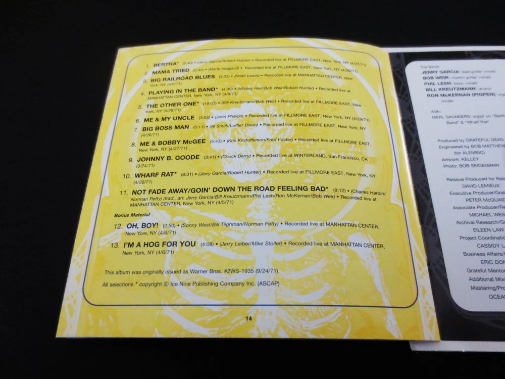 Grateful Dead : " Grateful Dead " - Skull and Roses ( Bertha ! ) : 1971 : Mouse / Kelley " Bertha " Art ! : CD : Remaster ! : 2003 " Individual Issue ! " Release : 2003 (1971/2001/2003) Grateful Dead Productions, Inc. / Rhino ( GDP / Rhino ) - R2 74401 : G.D. '71 " Skull & Roses !!! " Deadheads !!! Offered here is the Grateful Dead self-titled 1-CD Set " Grateful Dead " - " Skull and Roses !!! " ( Live in '71 ! ) ... ' Remastered ! ' ( the 2003 " Individual Issue " release ! ). And so fellow Dead Fans !! ... just why is this " Bertha " Skull & Roses !! chunk of Hot ! ' Live-Dead ' a Must-Have ?? Ooops ... I just gave it away already - because it's " 1971 Live-Dead " !!!!! And all of it - the Eleven ( 11 ) ' Original ' Tracks and the Two ( 2 ) ' Bonus Tracks ' are from Spring Tour '71 !!!!! And yep, looks like I gave it away once again ... because this is indeed the 2003 " Individual Issue Remaster " !!! So in a lot of ways ... this Fantastic ! release is like an Audio-Highlight-Reel ! of the '71 Spring Tour !! The stripped-down lean & Mean ! Grateful Dead " Quintet " unit here ... featuring Jerry Garcia - Ron " Pigpen " McKernan - Bob Weir - Bill Kreutzmann - & Phil Lesh !!!!! And as far as the ' Venues ' played that these Amazing Tracks ! were taken from ? ... Fillmore East ! - Manhattan Center ! - and the Winterland ! So there you go - Three ( 3 ) of the greatest ( Grate!-est ) G.D. Fan Hot-Spots ! to see the Band on both the East & West Coast in '71 !! This Tour is Fresh & Amazing ... and from an ' occasion ' standpoint ? Well, this run also marked the " Closing " of Bill Graham's Fillmore East ! So these recording catch the Dead playing with Passion & Power ... and for Bill too !!! In addition to the ' Original ' Eleven ( 11 ) Tracks from this " Grateful Dead - Skull & Roses " Remastered ! release ... the two additional " Bonus Tracks " feature both Oh Boy ! ... and I'm A Hog For You !! ... making this Monumental ! " Live-Dead " release even Spicier !!! ... Enjoy !!!!! " Grateful Dead " : 1971 ( 2003 GDP / Warner / Rhino " Individual Issue " Remaster ! ) : Bertha Mama Tried Big Railroad Blues Playing In The Band The Other One Me & My Uncle Big Boss Man Me & Bobby McGee Johnny B. Goode Wharf Rat Not Fade Away > Goin' Down The Road Feeling Bad * Bonus Material * Oh, Boy! I'm A Hog For You Baby Item Condition : This Grateful Dead " Grateful Dead / Grateful Dead " Skull & Roses ( 1971 ( 2003 " Individual Issue " Remaster ! (1971/2001/2003) ) is in Good condition. CD is in Very Good condition - close to Very Good/Like New, with faint light marks/scratches on the playing surface (cosmetic-only) - please see photos. Liner Notes ( 15-Page inside case attachment ) are in Very Good condition, with light creasing indentations (please see photos). CD Case ( 1-CD ) in in Good condition, with medium-heavy creasing indentations and surface wear - including a medium/large 1" crease area on the front cover (please see photos/close-up photo #10). This 1-CD Set has been stored inside my professional CD rack next to other CD Cases. Please see all photos provided. Photos included are of the actual item you will receive. Grateful Dead / Grateful Dead - " Skull & Roses " ! 1971 !! - 2003 " Individual Issue " Remaster !!! ... Enjoy !!!!! Please ask any questions before bidding/buying & Best of Luck ! ( also ... please feel free to click the 'see other items' above to check out my other related live listings - Thanks ! ) U.S. & International buyers welcome (additional shipping charges & delivery time will apply for international destinations). Shipping charges include delivery confirmation on every item. Returns accepted within 14 days of purchase if item is returned unused & undamaged (buyer pays return shipping). All items will be shipped as merchandise with the winning bid entered as item value (2023-2024).