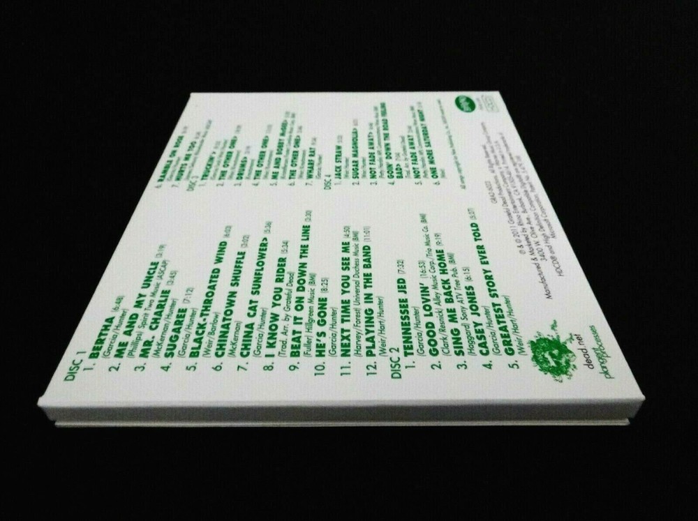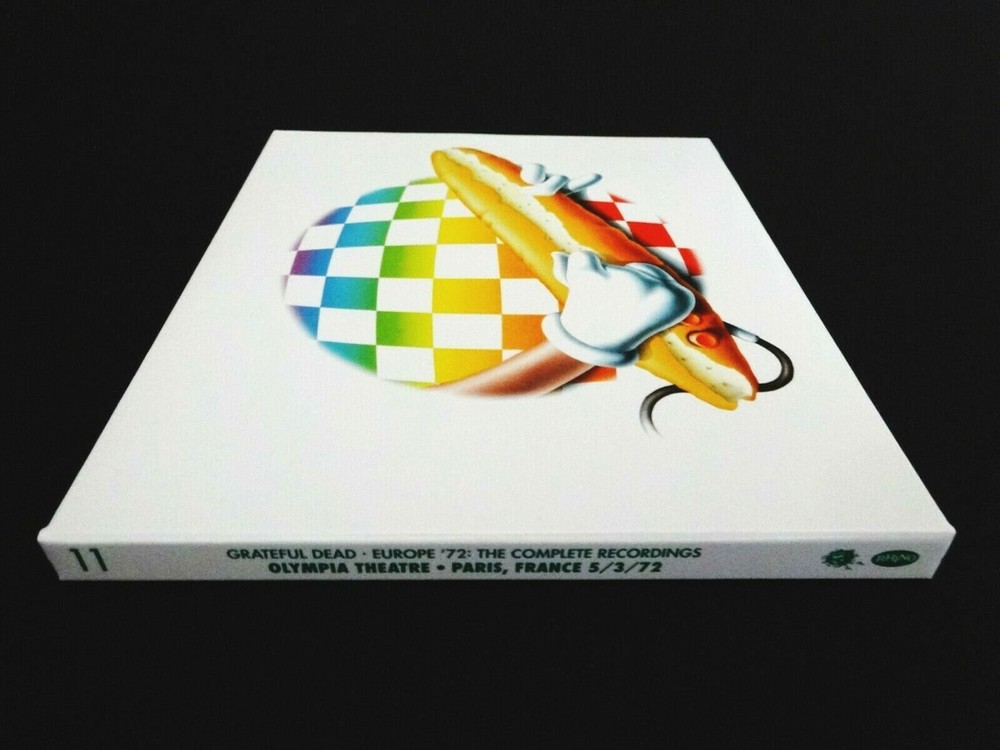 Grateful Dead : Europe '72 : The Complete Recordings : Show # 11 ( of 22 ) : May 3, 1972 ( 5/3/72 : 5/3/1972 ) - Olympia Theatre - Paris, France ( FRA ) : 4 CD : 2011 (1972/2011) Grateful Dead Productions, Inc. / Rhino ( GDP / Rhino ) - GRA2-6023 ( 11 ) : Scott McDougall Cover Art : Very-Rare !!! The Legendary !!! ' Mid-Tour ' Europe '72 Grateful Dead performance at the Olympia Theatre ! in Paris France !! ... on May 3rd, 1972 ( 5/3/72 ) ! ... Featuring " French Baguette ! - Sandwich Guitar !! " Cover Art !! Grateful Dead Fans who Love & even Live-for ! that Good Ol' Grateful Dead sound ... and at its Absolute-Finest ! Offered here proudly is the Monumental ! ' Mid-Tour ' ( 11th ! ) Show from the Grateful Dead Europe '72 Tour on May 3, 1972 ( 5/3/72 ) at the Rock & Roll ' Legendary ' Olympia Theatre in Paris, France !!! And as you might well expect - considering the time & era of Grateful Dead Music we are talking about here ... the band is Red-Hot right out of the gate early ! for this Monumental " Europe '72 " Tour ! ... and, as some may argue -- even More-So ! as this Legendary Tour of Europe was in Mid-Swing !! Seven ( 7 ) shows were played at the Academy of Music in New York City in Late-March ( 3/21-28/72 ), and if you have heard pieces, parts or all of that magnificent run - then you already know how " effective " that NYC run was as the ideal " Tour Warm-Up " for this Big-Time Europe '72 stretch that was right around the corner. Europe '72 kicked off at Wembley Empire Pool in London, England on 4/7/72, as part of a two-night stand. The 2nd tour-stop also took place in England ( Newcastle upon Tyne ) at the City Hall ! Then onto Copenhagen, Denmark ( for the 1st stop ! ) at the Tivoli Concert Hall. Then at Stakladen at Aarhus University in Aarhus, Denmark. Then " back to " the Tivoli Concert Hall in Copenhagen, Denmark ( again ! ). Three Denmark Shows ! And from here ... there were 17 More Shows ( 22 in Total ) stretching from Bremen ( Germany ), to Dusseldorf ( W. Germany ), to Frankfurt ( 100 Year Hall ! ), to Hamburg -- and then ... to the Olympia Theatre in Paris France ! - for 2-Shows ! on both 5/3/72 & 5/4/72 ... with the Entire ! 5/3/1972 Show captured right-here in All ! of it's Sonic Audio-Glory ! -- and, in a 4-CD format !!! From here, it was off to the Bickershaw Festival ( Wigan, England ), then to Amsterdam, to Rotterdam, to France, to Luxembourg, to Munich, and back to London again ! for a final 4-night stand at the Lyceum ! Europe '72 !!! And, though you may have indeed ( very-likely ! ) heard pieces & parts of this Grateful Dead 2-Show stand at the Olympia Theatre ... here indeed is the Entire-Show from the 1st Night - the ' Complete ' recording !! -- 5/3/1972 !!! Which, is important for many-many reasons, considering the ' caliber ' of live-music the Grateful Dead were delivering in mid-stretch of this Europe '72 Tour ! But, what is really cool about these ' Olympia ' Shows is - not only that they were at! the Olympia ( considering it's rich & Historical Tradition of Rock & Roll ... featuring the likes of Led Zeppelin - Black Sabbath - and so-so more ! ) -- But ! as far as these Dead Shows go ... the China > Rider from this 5/3/72 Show was selected for the Original ! 1972 " Europe '72 " Album release ... and -- the Sugar Magnolia ! was also selected & included on the Europe '72 Album from the next night on 5/4/1972. So, you can get my point here ... these Shows in France were so-incredibly Hot ! that there were " Key " selections selected & used on the Original " Europe '72 " Album !!! And, it should be noted that on the Europe '72 Album -- the 5/3/72 China > Rider live-track, is obviously ' just ' the China > Rider. But, here on this " Complete Recording " -- you can hear just exactly what led up to this amazing & classic ! version - and, what came after too ! Because ... after all -- just Look ! at this ' Disc 3 ' !?! >>> Truckin' > Other One ! > Drums > Other One !! > Me & Bobby McGee > Other One !!! Wow ... just a Europe '72 Classic !!! right here Fans, and indeed a true Must-Have for any serious G.D. Fan. A Triple-Other One Sandwich !!! So ... maybe that is what this French Baguette Guitar ! is featured so-colorfully on the Cover ?! Because, if you were in the house - inside the Olympia Theatre on 5/3/72 ... you got an Other One Triple-Sandwich !!! courtesy of the '72 Grateful Dead ... arguably, right ! at their young-Prime !!! There is so-so much goodness on this 4-CD Set, and - quite frankly too ... this is one of those situations from this Europe '72 Tour - where ... you really should have both ! of these 5/3/72 & 5/4/72 4-CD releases in your cherished music collection. Just to compare & contrast how the Band achieved G.D. Magic! for 2-Shows back-to-back ... you know, like they really did all throughout this entire Europe '72 Tour ! But, I must admit ... both of these are Shows that I have always ! been partial too. The Dead Delivering ! at the Paris Theatre, in Paris France ... as in those days in Rock & Roll - the competition was steep ! So-much Incredible music, and ... out Grateful Dead - well, they were right up there at the front ... and leading the Charge ! Simply a rip-roaring Grateful Dead Europe '72 Classic ! - in the fine form of 5/4/72 ... in Paris, France !!! Wow ... at least to my ears -- one of the Best ! from this Legendary Europe '72 Grateful Dead Tour ! -- Enjoy !!!! TRACK LISTING >>> Grateful Dead recorded ' Live ' at the Olympia Theatre in Paris, France on May 3, 1972 ( 5/3/1972 ) - Show # 11 ( of 22 ) on the Europe '72 Tour ! : Disc 1 : Bertha Me And My Uncle Mr. Charlie Sugaree Black-Throated Wind Chinatown Shuffle China Cat Sunflower > I Know You Rider Beat It On Down The Line He's Gone Next Time You See Me Playing In The Band Disc 2 : Tennessee Jed Good Lovin' Sing Me Back Home Casey Jones Greatest Story Ever Told Ramble On Rose Hurts Me Too Disc 3 : Truckin' > The Other One > Drums > The Other One > Me And Bobby McGee > The Other O