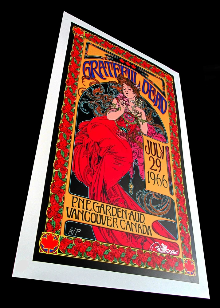 Grateful Dead Poster Special Artist Edition created to commemorate their first appearance outside the USA in Vancouver, July, 1966. Dimensions: 13 ⅞" x 24" Condition: Flawless Mint This artist's giclee print was created by Bob Masse for the official launch of Record Store Day, 2016. It has been signed in silver ink by Bob. This is an A/P print. Bob also created the cover for the special Record Store Day live 50th Anniversary Grateful Dead 180 gram vinyl album set of the recording from this show. The album cover is basically the upper 2/3 or so of this poster. Includes signed Certificate of Authenticity and Lifetime Guarantee (COA) This is an impeccably printed GICLEE on heavy coated stock It is annotated and signed in silver ink by its creator Bob Masse Depicts the historic first international appearance of the Grateful Dead in July 1966 In flawless mint condition, its beautiful art nouveau style fits well in any decor. Includes a signed Certificate of Authenticity and Lifetime Guarantee (COA) Legendary Canadian illustrator Bob Masse is one of rock's most seasoned and prolific poster artists, dating back to the '60s. But as his recent work shows, Bob's work is as cool today as ever. All the Masses we have are very nice -- ultra-mint with nice, bold signatures by Bob, mostly in silver ink. His mastery of typography and composition and his illustrative skill and imagination combined with our choice of great bands from Bob's collection make these nicely-priced posters excellent gifts for a fan of any of these bands, or a great source for decorators looking for fine art lithography with interesting and relevant themes and subjects in a wide variety of color pallets. This is good stuff -- hand-signed and nice to have around at a terrific price. Click Here for More Great Bob Masse Posters Visit My eBay Store: OptikRock Click here to make OptikRock one of your favorite sellers! Why Us: We pack correctly and ship quickly. We hold and combine orders. We accept all payment methods. We have a 14-day, no questions asked return policy. We love to answer questions. Our mission is your satisfaction. Click here to make OptikRock one of your favorite sellers! Why Us: We pack correctly and ship quickly. We hold and combine orders. We accept all payment methods. We have a 14-day, no questions asked return policy. We love to answer questions. Our mission is your satisfaction. _gsrx_vers_301 (GS 5.3.1 (301))