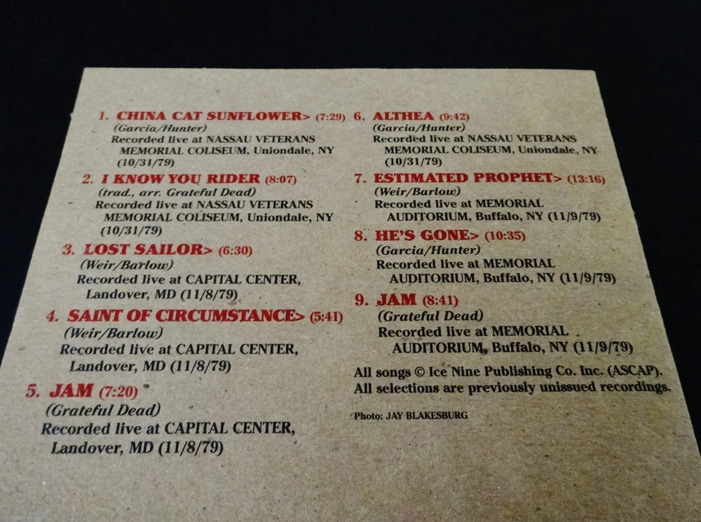 Grateful Dead : Road Trips Vol. 1 No. 1 - Fall '79 - Bonus Disc ! : 1979 Fall Tour in ' Both !! ' Maryland ! & New York ! : ' Bonus Disc CD ! ' : 1-CD : 2007 (1979/2007) Grateful Dead Productions, Inc. / Rhino ( GDP / Rhino ) - GRA2-6001 : Brand New ! : Very-Rare !! Blistering-Hot ! 1979 Fall Tour Grateful Dead in ' both ' Maryland ! & New York ! from >>> Nassau Coliseum ( 10/31/79 ) - Capital Center ( 11/8/79 ) & Buffalo Memorial Auditorium ( 11/9/79 ) !!!!!! The Inaugural ( Very 1st ! ) Road Trips " Bonus Disc CD " ( Vol. 1 / No. 1 ) release from the Amazing ! Grateful Dead " Road Trips " Series !!! ... G.D. Road Trippin' on the East Coast - Mid-Atlantic - on Fall Tour '79 !!!!! Right-On !!!!! Road Trips Volume 1 / Number 1 ... The ' Very 1st ' Inaugural Bonus Disc CD release from this Fantastic ! Series - the one that kicked-off the frenzy, and all of our fellow " Road Trips " addictions. Folks, this one is simply a blistering-hot Fall Tour '79 Grateful Dead treasure ! 1979 Grateful Dead is a beautiful time in the Band's development, and this is coming from someone with a fine-tuned & adoring " '80's Dead " ear. This is the next-step in the evolution from the Pigpen, T.C. and Keith & Donna Eras. It's Brent time now, and he is a Very-Big-Man ! in a small package. This guy can bring the Heat ! ... & the Muscle !! When I've gotten into drag down anti-Brent conversations over the last 25 years, here's what I always would say : " Brent Mydland has more talent & raw soul in his little pinky finger than most musicians could every even dream of - period. " And ' Thanks ' specifically to Bob Weir ( & Jerry Garcia ), Brent very willingly joined their ( & our ! ) Team. ' THE ' Grateful Dead !!! Twelve straight years of Brilliant ! Live and Studio Music for the rabid Dead Fans. Brent played his Very-1st Show with the Band in San Jose, CA on 4/22/79 and the best part of this Rare " Bonus Disc " release is that two key things happen ... Brent & the rest of the Band have begun to work out the kinks of the 1st six-months ( hence, the ' adjustment period ' ), and this release captures them at Three different high-energy East Coast venues in October & November '79 on Fall Tour - which was really the first stage of them letting loose together, and taking daring chances as a true unit. Clearly the Fans ( and the Boys ) were able to reap the rewards of this synergy that was becoming very fine-tuned - with a very bright future ahead. And secondly, Jerry Garcia begins to enter into three fine key stages of appreciation ( or - musical love affairs, if I may ) of Brent and his vocal and musical contributions on stage, his brand new Doug Irwin Axe " Tiger ! ", and his highly-audible & increased passion for his MXR ( script-logo ! ) Distortion + pedal. To put it frankly, Jerry's increased aggressive picking attack & nastier / moodier tone begin to have more guts ! with the increased use of distortion, and with the swiftest of authority & command. This '79 Fall Tour is just downright Smokin' Hot !, and this initial Road Trips " Bonus Disc " effort remains very true-to-form in the fact that it pulls smoking-segments & many Moments of Magic ! from both Maryland & New York >>> 10/31/1979 ( Nassau Coliseum NY ) - 11/8/1979 ( Cap Center MD ! ) & 11/9/1979 ( Buffalo Memorial Aud. NY ). Unlike some of the later releases in this Series ( full-Shows + addl. segments from other Shows ), this one is a True ! " Road Trip " and it takes you on a portion of the exact one the Band took 40-years ago ! - thus sharing a nice chunk of the true-goodies, in order as they authentically happened live on stage. I've talked to people that feel this 1st ' Inaugural ' Road Trips Vol. 1 No. 1 Bonus Disc CD release was actually the very best of all, and that it continued to stand above all others throughout the rest of the series. I personally enjoy plenty of them, and it would be hard to pick favorites - but I can certainly understand this valid argument - and, especially if you love your '80's G.D. - as this is indeed the mouth & the gateway of that Magical ! G.D. Decade + !!! This Bonus Disc release is just a plain and simple Heater ! Also, like many of these releases - many of the main gems & jams ( but not all - i.e. the Morning Dew !!! ) do happen on the ' Bonus Disc ' portion. I think I'm going to take the initiative at this time to label this one an Absolute ... " Must-Have for Deadheads ", and it's a complete no-brainer for all of the Early-80's Enthusiasts ! who can just never get enough of this stuff ... Just a Truly-Incredible ! '79 release - Amazing !!! Fall '79 in New York !!! & in the Good Ol' MD !!!!! Enjoy !!!!!!! TRACK LISTING >>> Grateful Dead ' Live ' from the Nassau Coliseum in Uniondale, NY ( 10/31/1979 ) - Capital Centre in Landover, MD ( 11/8/1979 ) - and Memorial Auditorium in Buffalo, NY ( 11/9/1979 ) : Grateful Dead Road Trips Vol 1 No. 1 " Bonus Disc CD " ( 1-CD ) : China Cat Sunflower > : ( Nassau Veterans Memorial Coliseum, Uniondale, NY ( 10/31/1979 ) ) I Know You Rider : ( Nassau Veterans Memorial Coliseum, Uniondale, NY ( 10/31/1979 ) ) Lost Sailor > : ( Capital Centre, Landover, MD ( 11/8/1979 ) ) Saint Of Circumstance > : ( Capital Centre, Landover, MD ( 11/8/1979 ) ) Jam : ( Capital Centre, Landover, MD ( 11/8/1979 ) ) Althea : ( Nassau Veterans Memorial Coliseum, Uniondale, NY ( 10/31/1979 ) ) Estimated Prophet > : ( Memorial Auditorium, Buffalo, NY (11/9/1979 ) ) He's Gone > : ( Memorial Auditorium, Buffalo, NY ( 11/9/1979 ) ) Jam : ( Memorial Auditorium, Buffalo, NY ( 11/9/1979 ) ) * Item Condition * : This Very-Rare ! Out of Print ( 2007 GDP / Rhino release ) Grateful Dead Road Trips Vol. 1 No. 1 ( Fall '79 ) Bonus Disc CD ( 1-CD ) is Brand New ! - ( Brand New ( not factory-sealed ) ). This CD was very-carefully removed from a Brand New / Factory-Sealed Road Trips Vol. 1 No. 3 3-CD Set in 2007 ( upon the initial release ), and was placed directly into protective plastic sleeves ( internal & external s