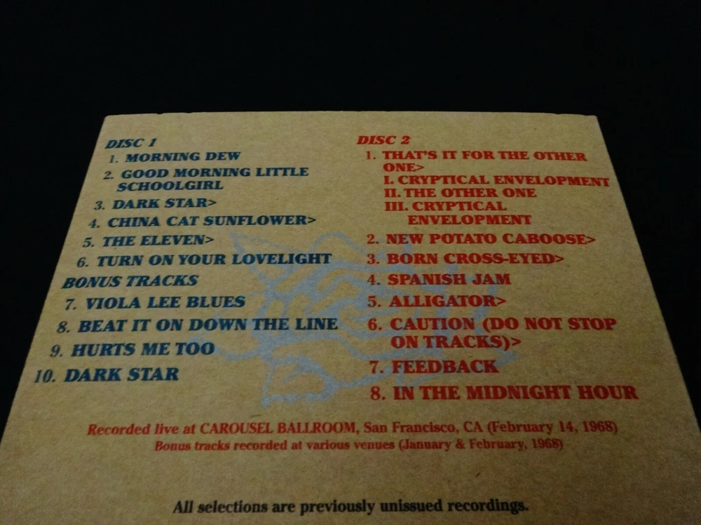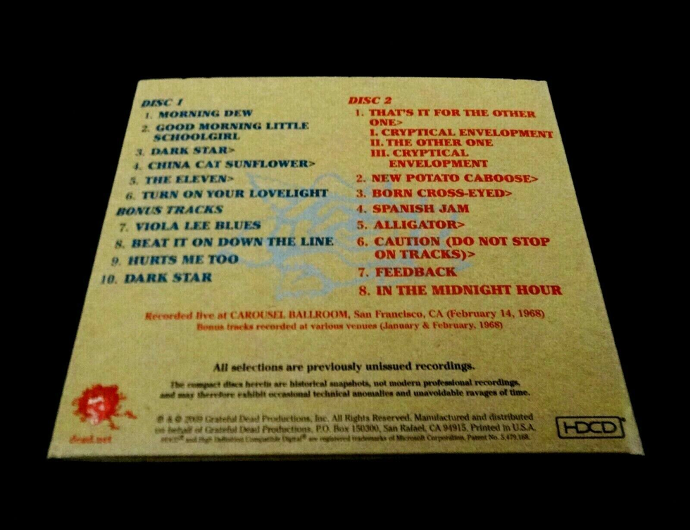 Grateful Dead : Road Trips Vol. 2 No. 2 - Carousel 2-14-68 : Carousel Ballroom - San Francisco, California ( CA ) - February 14, 1968 - " Valentine's Day '68 ! ) + Bonus Tracks from Winter Tour '68 ! : Seattle, Washington ( WA ) - Portland, Oregon ( OR ) - Eureka, California ( CA ) : 2 CD : 2009 (1968/2009) Grateful Dead Productions, Inc. / Rhino ( GDP / Rhino ) : Out of Print !!! " Valentine's Day 1968 ! " at the Carousel Ballroom !! in San Francisco !!! - ' Plus ' Bonus Tracks from " The Quick & The Dead ! " 1968 Winter Tour !! in the Pacific Northwest !!! " Good Ol' Grateful Dead " Fans !!! Offered here is the Quintessential ! Grateful Dead " Carousel 2-14-68 " Road Trips ( Vol. 2 / No. 2 ) 2-CD Set from the Legendary ! 1968 " Valentine's Day ! " Show at the Carousel Ballroom - in San Francisco, California. This is a massively-heavy & aggressive " Early '68 " performance all throughout ... truly-establishing the Grateful Dead as a " Great-Band ! " - and a Huge Force ! to be reckoned with throughout the Late-60's Live Music World ! And ... in addition, you also receive Four ( 4 ) Absolutely-Amazing ! ' Bonus Tracks ' on this CD Set ( on Disc 1 ( Tracks 7 - 10 ) ) from the Band's 1968 Pacific Northwest " The Quick & The Dead " Tour ( Eugene / Portland / Seattle + Eureka, CA ) !! All that can really be said about this one is just ... " Wow !!!! ". Taking into consideration that you receive Two ( 2 ) !! Inter-Galactic ! '68 Dark Stars on this release - one from San Francisco ( Carousel ) ! - and one ( 1 ) from Portland, Oregon ( at the Historic Crystal Ballroom ! ) !! These January & February " 1968 Live Dead " Tours offered numerous ' Moments of Magic ! ' So-Incredibly-Awesome !! - that some of these Tracks from both this '68 NW Tour ( & from the Carousel as well ) were used directly on the Grateful Dead's November 1969 ( Studio / Live ) Hybrid Album Masterpiece : " Live / Dead ! ". If there was indeed such a thing as a ' Time-Machine ' & I could magically-transport back to a G.D. Tour of yesteryear ? ... this one may very-well be a ' prime ' contender. I'm so-happy for those of you who were there to experience this Grateful Dead Magic " Live " ! ... Enjoy this '68 G.D. Treasure !!!!! TRACK LISTING >>> Grateful Dead recorded ' Live ' at the Carousel Ballroom in San Francisco, California ( CA ) on " Valentine's Day 1968 " 2-14-1968 : Disc 1 : Morning Dew Good Morning Little Schoolgirl Dark Star > China Cat Sunflower The Eleven Turn On Your Lovelight Disc 1 : ' Bonus Tracks ' from early 1968 - Grateful Dead recorded ' Live ' on the 1968 " The Quick & The Dead " Pacific Northwest Tour : Viola Lee Blues ( 1/20/68 - Eureka, California ( CA ) ) Beat It On Down The Line ( 1/23/68 Seattle - Washington ( WA ) ) Hurts Me Too ( 1/23/68 - Seattle, Washington ( WA ) ) Dark Star ( 2/2/68 - Portland, Oregon ( OR ) ) Disc 2 : That's It For The Other One New Potato Caboose Born Cross-Eyed Spanish Jam Alligator Caution ( Do Not Stop On The Tracks ) Feedback In The Midnight Hour Item Condition : This Very-Rare ! Out of Print ( 2009 GDP / Rhino release ) Grateful Dead Road Trips Vol. 2 No. 2 Carousel 2-14-68 2-CD Set is in Very Good condition - close to Like New overall. CD's ( Disc 1 & Disc 2 ) are in Like New (Near Mint/Mint!) condition (please see photos). Liner Notes ( 12-Page Insert Booklet ) are in Like New (Near Mint/Mint!) condition (please see photos). CD Case ( 2-CD Tri-Fold ) is in Very Good condition - close to Very Good/Like New overall - with light-medium corner/edge indentations (please see photos/photo #2). This CD Set was purchased factory-direct brand new / factory sealed upon its initial 2009 release - each CD has been played very carefully only one-time. Please see all photos provided. Photos included are of the actual item you will receive. Grateful Dead ! ... " Valentine's Day '68 ! " - ' Live ' at the Carousel Ballroom in San Francisco !! + " More !!!! " Huge ! Prime-Era '68 Winter Tour Good Ol' Grateful Dead !!! ... Enjoy !!!!! Please ask any questions before bidding/buying & Best of Luck ! ( also ... please feel free to click the 'see other items' button above, to check-out my other related live listings - Thanks ! ) U.S. & International buyers welcome (additional shipping charges & delivery time will apply for international destinations). Shipping charges include delivery confirmation on every item. Returns accepted within 14 days of purchase if item is returned unused & undamaged (buyer pays return shipping). All items will be shipped as merchandise with the winning bid entered as item value (2025-2026).