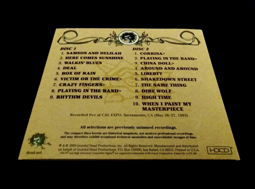Grateful Dead : Road Trips Vol. 2 No. 4 - Cal Expo '93 : May 26 & 27, 1993 ( 5/26/1993 & 5/27/1993 ) - Cal Expo Amphitheatre - Sacramento, California ( CA ) : 2 CD : 2009 (1993/2009) Grateful Dead Productions, Inc. / Rhino ( GDP / Rhino ) : Out Of Print ! & Very Rare !!! The Amazing !!!!! May 1993 Cal Expo run - featuring the 5/26/93 & 5/27/93 Rex Foundation Benefit Shows ! - in Sacramento, CA !!! ... Good Ol' 1993 !! Grateful Dead !!!!!!! Let's see ... well, I'll openly warn you that I run the risk of getting a little emotional over this one, this Super-Hot ! Cali Dead Run !!! All I can say is that I hope that you were able to catch a Show ( or Shows ) on this Absolutely-Historic ! '93 Cal Expo stand. I was so fortunate to not only warm up at the Shoreline run prior, but also catch each of these incredible nights of Historic ! Grateful Dead at the Cal Expo Amphitheatre in Sacramento. Two thoughts -- 1st thought : Many critical fans are less-fond of 90's ( post-Brent ) Dead and obviously there are some good reasons for feeling that way - especially from the ' consistency ' standpoint, and at times the apparent lack of energy & even the achievement of a grippy musical tone. And then, the 2nd thought : During these May 1993 Cal Expo Shows there was a very-special brew stirred up for these California Rex Foundation performances, as follows : A song-by-song Jerry Garcia Guitar Clinic ! each ! & every-night !! + When Phil's On The Band's On ! + When Things Get Weir'd ! = what many Deadhead's consider the Band's last Great, and Triumphant Stand !! I don't personally feel that way ( i.e. Autzen '93 / '94, Oakland Feb. '94 ( Chinese New Year " of the Dog ! " run ), and I'm sure a few ' big ' others ) -- however, if you were there for this glorious May '93 run of shows at Expo - I can see just exactly why you might feel this way. I completely understand. An absolutely Perfect atmosphere : California Sunshine, a Rex Benefit occasion(s), the Band clearly feeling the great vibes throughout, all in probably the last small ( and most intimate ) outdoor venue the Grateful Dead were still able to play due to crowd sizes, fan behavior problems, and etc.. I mean you have Gotta-Love ! the old Cal Expo, just gotta ... But here's the scoop, and who will ever know why exactly ? this happened ( except for each one of the Boys, naturally ... ) : Jerry Garcia was simply ready to go all-throughout this whole run - Big-Time !!! He comes straight out of the gates, guns ( Rosebud ! ) blazing & Phil immediately follows suit as lead ( bass ) guitarist -- then Bob Weir at his best ( looking like he'd been anxiously waiting for this moment & opportunity ! ). Garcia's fret board / picking-attack & tone ! is aggressive, pristine & flat-out vicious ! all throughout the power-moments in this run - and the ballads are heartfelt, sweet & played with excellence. Shakedown Street clearly proclaims that Sacto ! does-indeed have Heart !! Samson & Deal !?! Whoa !! Look out Jerry-Freaks ! because here-comes the Boss Turbo-Overdrive that you-all Live For !! A Killer ! Playing In The Band version & set-placement(s) - with reprise included ! I mean Here Comes Sunshine ... indeed ! I truly challenge the fans of 60's, 70's & 80's Dead, to give this Early/Mid-90's ! Good Ol' Grateful Dead a try !! No guarantees naturally, but I think you'll be very-pleasantly surprised. Some speak of the 5/26 show as being the true last great " Hurrah " for the Grateful Dead, and me - myself -- well, I feel the entire 5/27/93 Show was one of the Best ! Grateful Dead Shows that I ever saw - Ever ! Right up there near the same level as some of the scorching-hot nights with Brent in the Late 80's / Early 90's. I bet this may very well be the ' latest ' Vault selection / release the Grateful Dead will ever professionally re-master & release for sale, and there are some real good reasons why they picked this '93 Expo run - and ... they are all right here in the Music ! Definitely, definitely, Enjoy ! this one ... Just some fabulous " 1993 " Good Ol' Grateful Dead !!!!! TRACK LISTING >>> Grateful Dead ' Live ' at the Cal Expo Amphitheatre in Sacramento, California ( CA ) on May 26th & 27th, 1993 ( 5/26/1993 & 5/27/1993 ) - Rex Foundation Benefit Shows !!! : Disc 1 : Cal Expo Amphitheatre - Sacramento, California ( CA ) - ( 5/26/1993 ) >>> Samson and Delilah ( 5/26/93 ) Here Comes Sunshine ( 5/26/93 ) Walkin' Blues ( 5/26/93 ) Deal ( 5/26/93 ) Box of Rain > ( 5/26/93 ) Victim Or The Crime > ( 5/26/93 ) Crazy Fingers > ( 5/26/93 ) Playing In The Band > ( 5/26/93 ) Rhythm Devils ( 5/26/93 ) Disc 2 : Cal Expo Amphitheatre - Sacramento, California ( CA ) - ( 5/26/1993 & 5/27/1993 ) >>> Corrina > ( 5/26/93 ) Playing In The Band > ( 5/26/93 ) China Doll > ( 5/26/93 ) Around and Around ( 5/26/93 ) Liberty ( 5/26/93 ) Shakedown Street ( 5/27/93 ) The Same Thing ( 5/27/93 ) Dire Wolf ( 5/27/93 ) High Time ( 5/27/93 ) When I Paint My Masterpiece ( 5/27/93 ) Item Condition : This Very-Rare ! Out of Print ( 2009 GDP / Rhino release ) Grateful Dead Road Trips Vol. 2 No. 4 Cal Expo '93 ( Cal Expo Amphitheatre - Sacramento, California ( CA ) - 5/26/1993 & 5/27/1993 ) 2-CD Set is in Like New condition. CD's ( Disc 1 & Disc 2 ) are in Like New (Near Mint/Mint!) condition (please see photos). Liner Notes ( 12-Page Booklet Insert ) are in Like New (Near Mint/Mint!) condition - please see photos . CD Case ( ' Artistic ' 2-CD Tri-Fold ) is in Like New (Near Mint/Mint!) condition (please see photos). This 2-CD Set was purchased Brand New / Factory Sealed upon it's initial 2009 release - each CD has been played only one-time, and this Set has been very carefully stored inside protective plastic in my professional CD rack. Please see all photos provided. Photos included are of the actual item you will receive. The Good Ol' 1993 ! Grateful Dead ... just simply bringing the Heat !! at Good Ol' Cal Expo ! - for Rex !!! ... Enjoy !!!!! Please ask any questions before bidding/buying & Best