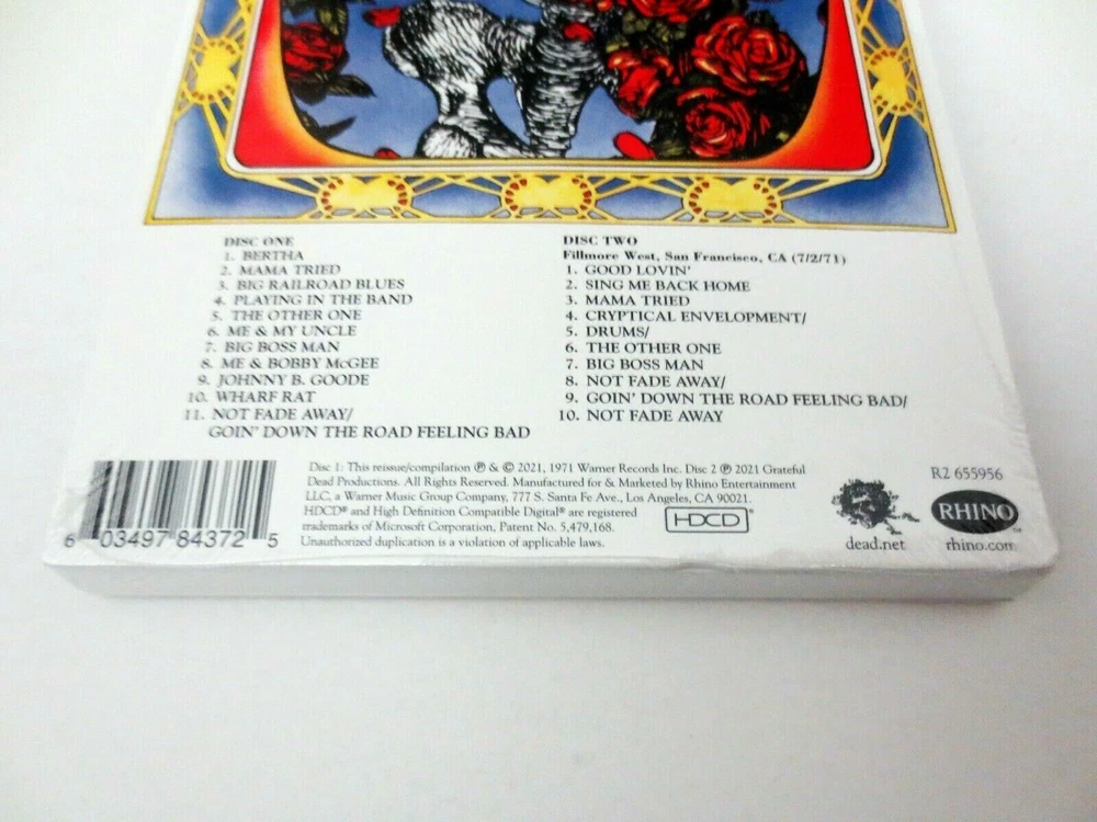 Grateful Dead - Grateful Dead / Grateful Dead ( Skull & Roses ) - 1971 - 2 CD - Remastered / Expanded - 2021 Warner Bros. Records - Grateful Dead Productions - Rhino (1971/2021) - 2021 Remastered ( & Expanded ) Reissue ( 2-CD Set ) - R2 655956 - Recorded Live ( March 24, 1971 - April 29, 1971 ( + July 2, 1971 ) ) - Brand New / Factory Sealed 1971 Grateful Dead ( Jerry Garcia / Ron Pigpen McKernan / Bob Weir / Phil Lesh / Bill Kreutzmann / Mickey Hart ) - ( 3/24/71 - 7/2/71 ) Recorded Live in 1971 - ( March 24, 1971 ( 3/24/1971 ) through April 29, 1971 ( 4/29/1971 ) + July 2, 1971 ( 7/2/1971 ) ) Originally Produced by The Grateful Dead with Bob Matthews & Betty Cantor Originally Released on September 24, 1971 ( 9/24/1971 ) Released " Remastered - Expanded " on June 25, 2021 ( 2-CD Set with 7/2/1971 Fillmore West ) - " 50th Anniversary Expanded Edition " Features Ten ( 10 ) Live Tracks " Previously Unreleased " from the ' Last ' Grateful Dead Show at the Fillmore West - July 2, 1971 ( 7/2/71 ) in San Francisco, California ( CA ) 2021 Newly Remastered and Expanded 2-CD Set (1971/2021) Warner Bros. Records, Inc. / Grateful Dead Productions / Rhino Brand New / Factory Sealed ( 2-CD Set )