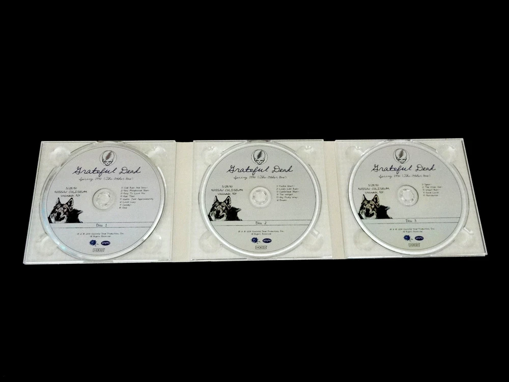 Grateful Dead : Spring 1990 Too ( The Other One ) : March 28, 1990 ( 3/28/1990 ) - Nassau Coliseum - Uniondale, New York ( NY ) : 3 CD : 2014 (1990/2014) Grateful Dead Productions, Inc. / Rhino ( GDP / Rhino ) - R2 543660 ( 3/28/90 ) : Show # 5 ( of 8 ) from the Very-Rare ! Out of Print Spring '90 Too " The Other One " Box Set !!! Show # 5 from the Grateful Dead Spring 1990 Too ( The Other One ) Box Set ! ... the " 11th Show " of the Spring '90 Tour & the ' First-Night ' of a 3-Show stand at the Nassau Coliseum ! in Uniondale, New York !! on 3/28/90 !!! Dead Fans ! & Live-Music Lovers !! Offered here is a Very-Rare ! & Awesome ! chance to acquire the Grateful Dead Spring 1990 ' Too ' ( The Other One ) 3/28/1990 Nassau Coliseum - Uniondale, New York ( NY ) Show !!! This is a 3-CD Set featuring the Entire 3/28/90 Nassau ! Show ( 19 Live Tracks ! ) - which was available for sale ' Only ! ' inside the Limited Edition G.D. Spring 1990 ' Too ' Box Sets issued in 2014 by Grateful Dead Productions. So, the only way to acquire this 3/28/90 3-CD Set was to purchase the ' entire ' Out of Print Limited Edition Box Set, which was limited to only 9,000 copies in 2014 - and, as a result is a highly-collectible & hard to find 23-CD Box Set. So, in ' Other ' words ... here-is ' The ' 3/28/90 G.D. Nassau! Show !! Were You ! There ?!! ... Hopefully-So ! This Set is Digitally-Mastered, and is Pristine ! in its sound quality ... a simply Amazing ! release from one of the many Smokin'-Hot ! Shows on this Grateful Dead Spring '90 Tour. And ... if you were fortunate enough to catch any of these Magical ! 16 East Coast Tour dates on this '90 Spring Tour run - then you already well know just exactly what I am talking about here. The eager anticipation of the Dead Fans was at a new high, and the ' Mighty ' Energy ! of the Band was just completely infectious - as they were downright " ON " !!! And ... as far as this 3/28 Show at the Nassau Coliseum goes ... this was ' Night 1 ' of the 3-Show stand at the Good Ol' Hockey Rink ! A Venue the Grateful Dead became Quite ! familiar with over their 30-Year Career ... of delivering Live Rock & Roll ! Wow ... as that truly-is what I personally love best about the Spring '90 Tour ... is that they are indeed delivering " Rock & Roll " !!! Just as one of my long-time Dead Buddies once so eloquently stated ... " Man, I just really prefer '80's & '90's Dead ... because they are just like ... so-much more " Rockin' " ! Ha !! And, when Spring '90 hits New York ! - you just know what's coming next ... Rock & Roll !!! And, keep in mind too that this 3-Show ' Nassau ' stand actually directly followed the Boys delivering 3-straight Shows at the Knickerbocker Arena - in Albany, New York ... likely best known to you as --- " Dozin' At The Knick " ! More Legendary " Spring 1990 " Tour, and some of the 1st boards that were let out of the oh-so-precious G.D. " Vault " way-back in like 1996 ! So-funny too, to think that '96 is actually now close to 30-Years Ago ! Dang, time flies ... and especially when there is so-much Grate ! Dead to listen to. I mean remember way-back in 1991 - when it was pretty much just " One From The Vault " - unless you had your racks of Tapes ! Which, so-thankfully ... pretty much all of us did ! Ha ! So ... as far as this 3/28 Nassau Show goes - it is truly beyond me why it pretty much came out ' last ' of the Albany & Nassau runs ( pretty-much ) - well, you know ... unless the powers that be were indeed saving some of the Best! for Last !! ... Easy To Love You ! - Loose Lucy ! - Cassidy > Deal !! -- Foolish Heart > L.L. Rain > Cumberland !! - The Weight ! - Hey Pocky Way !!! > Drums/Space > The Other One !!!!! -- a Hot ! Good Lovin' to close ... with a Revolution !!! Encore!! Dang ... I mean - see what I-mean !!? A Hot Setlist ! - and an even Hotter ! Dead Show !! I distinctly remember getting these board tapes myself right-before my '92 Spring Tour run - and I ( We ! ) were Totally-Stoked ! I fully know people were really head over heels ( in the breezeway ... literally ! ) over the whole Branford thing - but, at least to me - and my Rock & Roll ear ... I think this is a superior Show ! - all things considered ... and most importantly ( naturally ... ) - Garcia's chops sound fresher ! ... with more Rosebud " Kick " !! And too, he was just so-into delivering the Loose Lucy ! on this run - to the Dead Fan Faithful ... Jerry knew what that meant to all of us - because it meant the same to him ! I mean just pull one of these Lucy's from Spring '90 up on YouTube ... and you'll be jaw-dropped by intricacy, command & overall power ! in his fret board attack !! ... Gar~cia !!! The-Master ! Oh yeah too - as how could I even ' almost ' forget ... " Drums > Space > Other One !!!!! ". Wow ... I mean I don't even know what else to say ' Other ' than ... I'm so incredibly lucky that I caught this G.D. Tour ! - darn-close now to 30-Years Ago ! here today. I mean what can you say ... Time-Flies ! - when You're Havin' Fun !! The Band meant real-serious business all throughout this Nassau run, were Red-Hot ! and -- here for sure is the ' Proof ' in this exceptional pro-released format CD Set ! Which, only took like 25-Years ! ( or 24-ish ?! ) to deliver ... but, my goodness - was it ever worth the entire wait ! It's no secret at-all why this Spring 1990 Tour ( Spring 1990 & Spring '90 'Too' ! ) was very-popularly selected for its Amazing ! pro-release, with this 3/28/90 Show most-definitely being one of the ' main ' treasure pieces ( like a Golden-Crown Jewel ! ... Ha !! ) to thoroughly prove this fact. A completely Glorious ! Spring Tour '90 performance to say the very-least, and thankfully for us all ... this 3-CD Set is one of the Ultimate ! representations of how just well the Band was playing, clicking, sounding & feeling ... with heavily Infectious-Energy ! & Live Rock & Roll Magic !! - Everywhere !!! Enjoy !!!!! TRACK LISTING >>> Grateful Dead : March 28, 1990 ( 3/28/1990 