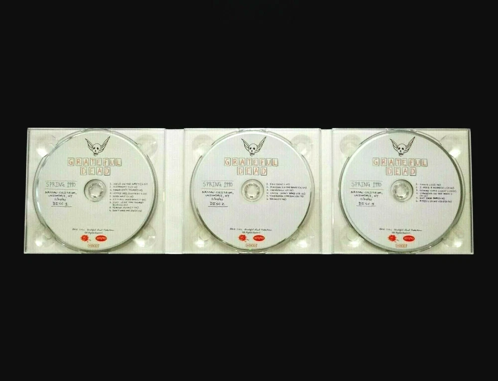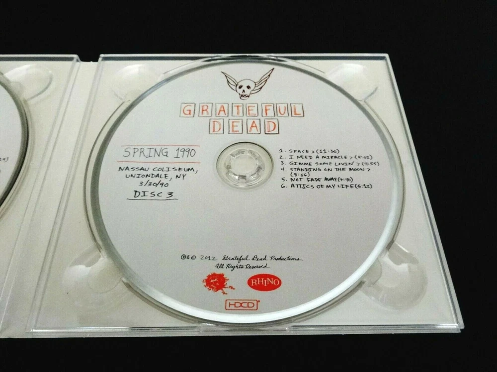 Grateful Dead : Spring 1990 : March 30, 1990 ( 3/30/1990 ) - Nassau Coliseum - Uniondale, New York ( NY ) : 3 CD : Wes Lang " Motorcycle " Art !!! : 2012 (1990/2012) Grateful Dead Productions, Inc. / Rhino ( GDP / Rhino ) - R2 531873 ( 3/30/90 ) : Show # 5 ( of 6 ) from the Very-Rare ! Out of Print Spring '90 Box Set !!! Show # 5 from the Spring 1990 Box Set ! ... the 3rd Night a 3-Show Live-Dead run at the Nassau Coliseum on 3/30/90 - the 5th Tour-Stop & the ' Lucky ' 13th ! Show of the Legendary Grateful Dead Spring 1990 Tour !!!!!!! Dead Fans ! & Live Music Lovers !! Offered here is a Very-Rare ! chance to acquire the Grateful Dead Spring 1990 3/30/1990 Nassau Coliseum - Uniondale, New York ( NY ) Show ! This is a 3-CD Set featuring the entire 3/30/90 Nassau ! Show ( 21 Live Tracks ! ) - and it was solely available for sale inside the Limited Edition Spring 1990 Box Sets issued in 2012 by Grateful Dead Productions. The only other way to acquire this 3-CD Set is to locate & purchase the ' entire ' Out of Print Limited Edition Box Set, which was limited to only 9,000 copies - and, as a result is a highly-collectible, hard to find, and extremely valuable 18-CD Box Set. So, in other words ... here-is the 3/30/90 Nassau Coliseum Show ! Digitally-mastered, and Pristine ! in its sound quality ... and a simply Amazing ! release from one of the most Legendary ! Shows on this Grateful Dead Spring '90 Tour. This Show was the 3rd & Final Night at the Nassau Coliseum - on a 3-Show Long Island ( Uniondale, New York ) stand ! I was lucky enough to catch the Spring Tour '90 Cap Centre run that Launched ! this Amazing Tour, and ... if there are sure-shot G.D. Shows that equal, rival, and at some points ... even top ! those Cap Centre ' Tour-Opening ' Shows - this 3/30/90 Show at Nassau ... is without any-question one of those ! Basically, this Show is simply all-out & Huge ! Live Grateful Dead - right during the midst of a Tour ... that unarguably catches the Band at a late-best - and, arguably ... a, or even ' The ' Best ! So ... if you're a ' Prime ' Brent-Era Fan like me ? Whoa !! - there ever some Shows on this Tour that mowed-us-down !!! You know ... in a seriously Grate ! way. There was so-much Big-Big ! stuff that happened on this Tour, and this 3/30 Show ? My goodness, does it ever capture the essence. Or, as I should probably more precisely say - it succeeds ! in capturing Live & Prime ! Grateful Dead Lightning In A Bottle !!! So-hot ..... this Show is one that circulated Lightning-Quick ! in the tape traders circuit, and thankfully - it got around fast in the Crispy-Soundboard ! format. So, yeah ... we all knew what was coming next, the chord changes, and all the rest of that good stuff - by the time the 1990 Summer Tour rolled around. This 3-Show run leaked around in bits, pieces, and parts tape-wise - but, without any question ... it was this Last/Final 3/30/90 Nassau Show that was truly the Talk of Town - and Tour ! Heck, I mean it wasn't hard to ' hear ' this one a few times in the RFK and/or Three Rivers Parking Lots ! Blasting loud too - on Cassette Tapes ! - naturally Ha ! ... Varoooommm !! - just-like this smooth looking Wes Lang Art designed Chopper ! on the Cover of this 3-CD Set !! Wow ! The Help > Slip > Franklin's came soaring straight out of the gate !!! The Rooster came in super-bluesy slide-trade fashion - and, sweetly ... the mid-1st Set delivered Dire Wolf ! - All Over Now ! - and Tom Thumb Blues ! - basically, the 1st Set stuff you went in hoping for ! And, a power-alley of a Picasso > Don't Ease! drove this Set home - back into the Hacienda ! - or, at least I'd assume ... Ha !! Set II Smoked-out real Fast ! with an Iko Iko !! And then, what happened next - was pretty much All ! G.D. History, and stuff of pure Grateful Dead Folklore ! >>> Playin' > China Doll > Uncle John's > Terrapin > Drums / Space > Miracle > Gimmie Some Lovin' > Standing On The Moon > Not Fade Away !!! And with too ... an Atttics Of My Life ! Encore !!!!! Wow ... just Wow !!! What a Beautiful ! G.D. Show, and ... I'm not the only-one saying it either - by a long shot, as the Help > Slip > Frank's was even ' selected ' by the Band ( produced by Phil Lesh ?!! ) for the soon after released & now Classic ! " Without A Net ". This Show is Red-Hot ! ... and the Band ! meant real-serious business all over these 3/30/90 Sets, and - here indeed is That ! Proof in this exceptional pro-released format ! Which, only took like 22-ish years ! to deliver ... but, my goodness - is it ever worth the wait ! It is no secret at all why this Spring 1990 Tour was selected for its Glorious ! pro-release - and 3/30/90 is indeed one of the Finest ! treasure pieces to prove this fact. A completely Amazing ! Spring Tour '90 G.D. Show to say the very-least, and thankfully for us all ... this 3/30/90 Show is pretty much one of the Ultimate ! representations of just how well the Band was playing, and sounding... with that one of a kind Infectious Energy ! & Live-Magic !! - simply Everywhere !!! Enjoy !!!!! TRACK LISTING >>> Grateful Dead : March 30, 1990 ( 3/30/1990 ) : Nassau Coliseum - Uniondale, New York ( NY ) : Spring 1990 5th Venue Tour-Stop ( Show # 3 of 3 at Nassau ) : Setlist : CD 1 : Set I : Help On The Way > Slipknot ! > Franklin's Tower Little Red Rooster Dire Wolf It's All Over Now Just Like Tome Thumb Blues Picasso Moon Don't Ease Me In CD 2 : Set II : Iko Iko Playing In The Band > China Doll > Uncle John's Band > Terrapin Station > Drums CD 3 : Set II ( continued ) : Space > I Need A Miracle > Gimmie Some Lovin' > Standing On The Moon > Not Fade Away Encore : Attics Of My Life Item Condition : This Very Rare ! Out of Print ( 2012 GDP / Rhino release ) Grateful Dead - Spring 1990 - 3/30/1990 - Nassau Coliseum - Uniondale, New York ( NY ) 3-CD Set is in Very Good condition - close to Very Good/Like New. CD's ( Disc 1, Disc 2, Disc 3 ) are in Very Good condition - close to Very Good/Like New overall with light scratches