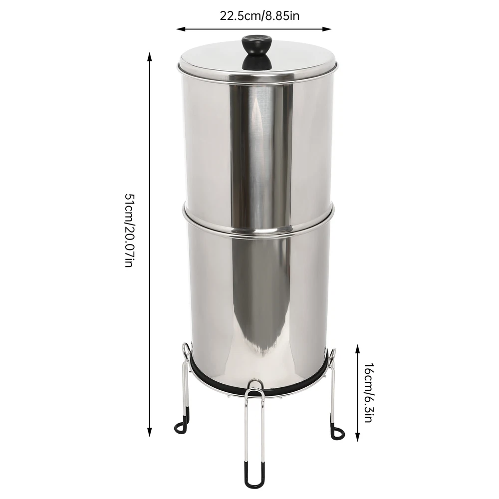 Package Included 1 * Gravity-fed Water Filter System 2 * Cartridges All Accessories for Installation Gravity-fed Water Filter System 2.25 Gallon Stainless Steel Countertop System Welcome to my store ♥♥ Description The gravity-fed water filter system removes suspended solids, turbidity, parasites, disease-causing bacteria , residual chlorine, and more to provide great-tasting water for the whole family. It is also a highly efficient water filter that does not require electricity and utilizes gravity, making it ideal for those who want to improve the quality of their drinking water with a highly portable, easy-to-use system. Key Features 1️⃣Sturdy and Durable: This product is mainly made of food-grade 304 stainless steel and is finely polished, which is rust-proof, leak-proof, and BPA-free . 2️⃣Clean and Hygienic: The high stand(6.3 inches) keeps the product away from the floor, thus making it more hygienic. The two cartridges with 0.01 µm pore size utilize 3-stage filtration (activated carbon, silver ion, hollow fiber UF membrane), effectively filtering chlorine, pollutants, sediment, heavy metals, plastic, and more, bringing more protection to each stage, and providing clean water of up to 6,000 gallons for the whole family. 3️⃣Emergency Use: The electricity-free design, gravity filtration system, and lightweight make this product easy to take on the go and suitable for natural disasters, camping, or everyday use. It works independently of the plumbing system, giving you the freedom to install it anywhere. 4️⃣Humanized Design: The gravity-fed water filter system is divided into two chambers. The upper chamber can be filled with unfiltered tap water, while the lower chamber can be filled with filtered purified water, thus making the water safer and healthier. 5️⃣Large Capacity: The 2.25gal capacity makes this product filter and store more water at one time, meeting the water needs of the whole family while traveling. 6️⃣High Stability: The non-slip bottom design of the bucket, the stopper around the bracket, and the non-slip feet of the bracket can effectively enhance the stability of the product, ensuring good performance even outdoors. 7️⃣Easy to Install: The product can be installed without tools by rotating the double buckets clockwise, and you only need to unscrew the hexagonal screws to change the faucet quickly, even inexperienced users can install it quickly. 8️⃣Effortless Cleaning: Simple product structure and polished smooth surface make the product easy to clean with a wet rag. Details Round Handle: The round handle of the bucket lid is easy to grip, thus making the product easier to open and close. Faucet: It is durable and sturdy while avoiding leakage and allowing you easily and conveniently take water. Rounded Corners: The rounded corners protect you from abrasions during use, thus providing you with a higher level of safety. Application This product is a great water purification system for small kitchens, apartments, college dorms, or outdoor activities such as camping and picnics. Specification Color: Silver Process: Polished Material: 304 Stainless Steel Assembly Required: Yes Mounting Type: Free Standing/Countertop Filter Cartridge Type: 2* Charcoal Filter Cartridges Capacity: 8.5L/2.25gal Product Size(H*φ): 51*22.5 cm/ 20.07*8.85 in Bracket Height: 16cm/6.3in Gross Weight: 4kg/ 8.82 lbs Package Size: 31*29*40.5 cm/ 12.2*11.42*15.94 in Package Included 1 * Gravity-fed Water Filter System 2 * Cartridges All Accessories for Installation Notes Please remove the protective films on the two cartridges before using them. Please do not add tap water to the upper chamber when the lower chamber is filled with filtered water, otherwise, the water will leak out. Please flush the filter for several minutes before use, if the faucet is not fully compatible, splashing may occur but won't affect the product. After installing the filter, do not use the first 6 gallons of water that passes through the filter. Instead, let the water run freely and do not use it for any purpose. This will flush out any loose carbon dust and other particles that may have accumulated in the filter during transportation or storage. After flushing out the first 6 gallons of water, the filter will be ready for all your water filtration needs. You can clean the cartridge once a week or once a month depending on the water quality and frequency of use. Proper cleaning of the cartridge will reduce secondary contamination and extend its life. Please do not use any detergent when cleaning the cartridge as this may cause clogging. A noticeable decrease in water flow may be caused by a buildup of deposits on the surface of the cartridge, so you can try cleaning the cartridge. Please allow the slight color difference caused by the shooting light and the 1-3 cm error due to manual measurement, and make sure you do not mind before ordering. Description 2 Welcome to our store for shopping. Our store has a wide range of product categories for you to choose from. Welcome to click on our store to make a purchase or consult us, and we will recommend the products you need. Welcome Payment Delivery details Terms of sales About us Contact us Payment We accept ebay payment 。 Fees such as import duties, taxes are not included in the item price or shipping costs. These charges are the buyer's responsibility. Delivery details Shipping: 2-9 working days to: USA Terms of sales We maintain high standards of excellence and strive for hundred percent customer satisfaction. Feedback is very important to us. We hope that you contact us immediately before you give neutral or negative feedback, so that we can address your concerns. It is impossible to address issues if we do not know about them! About us Your satis faction is our ultimate goal. We work hard to earn your trust and future business. Our certified technicians have tested each item before shipping. The unit comes with 1 year limited warrant