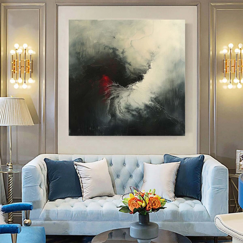Gray Abstract Oil Painting Thick Textured Hand Painted On Canvas Wall Art 31in