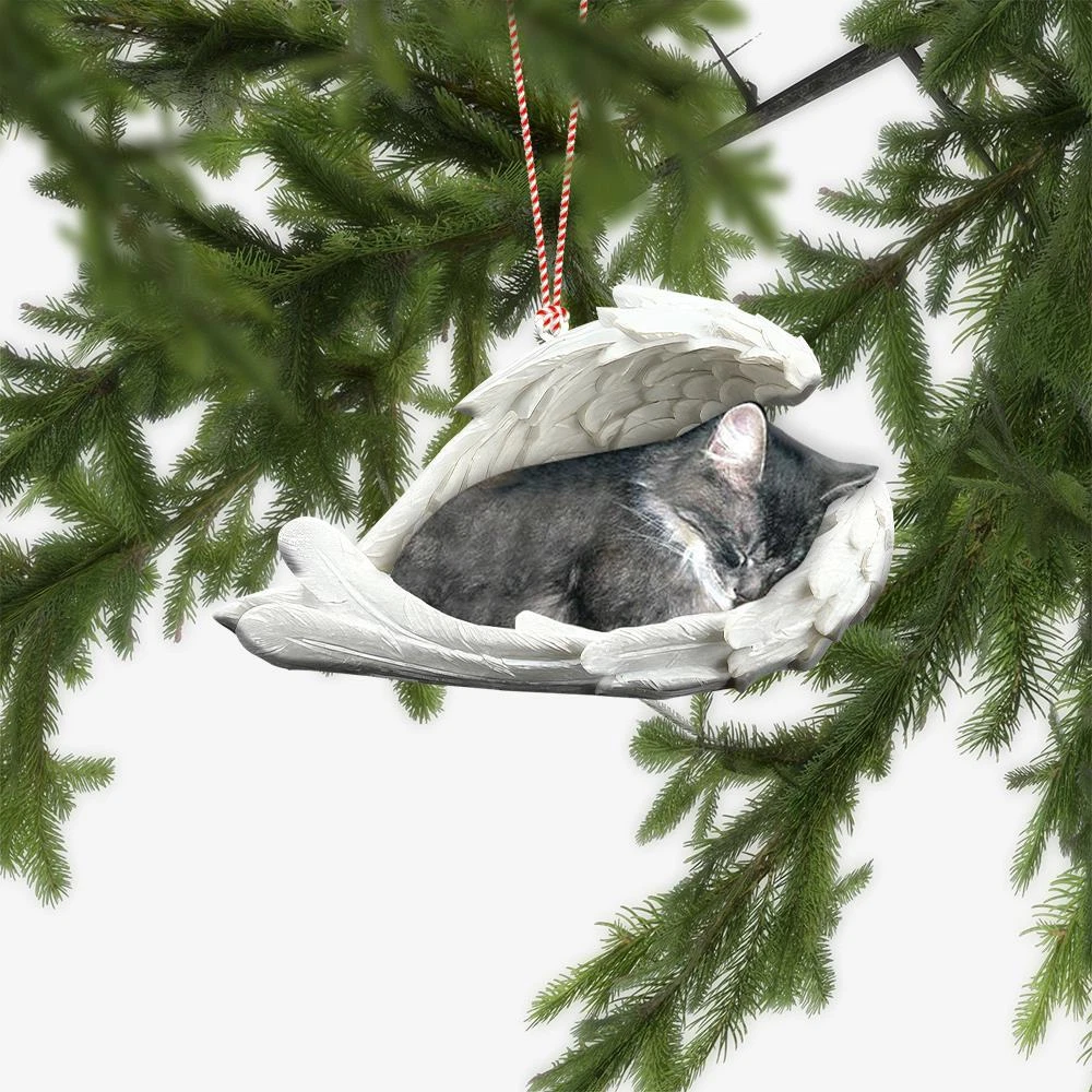 Gray Cat Sleeping Angel Wings Car Ornament Gray Cat Christmas Ornament Gift