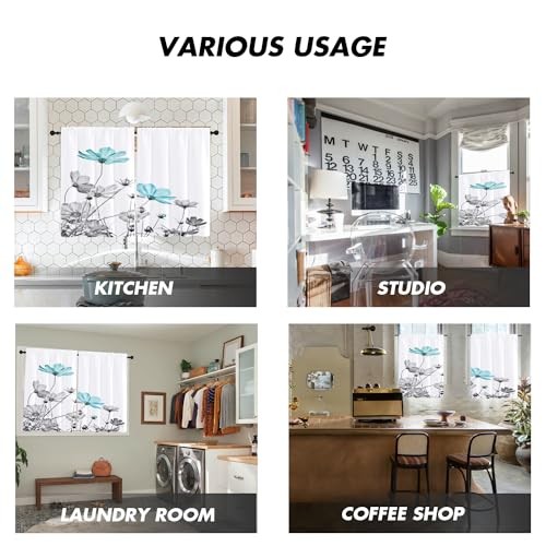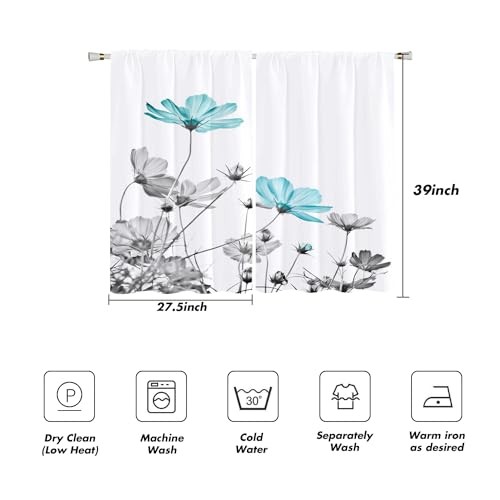 Return Policy Fast Delivery Trusted seller Teal and Gray Floral Kitchen Curtains Mini 27.5'' W x 39'' L Daisy Flowers Elegant Wildflower Plant Design Short Small Cafe Room Window Drapes Treatment Tiers Fabric 1 Pair Product Description Package Includes: Each package include 2 panels; Each panel measures 27.5 inch width by 39 inch length; Total width is 55 inch Material: Using premium polyester; Not easy to fade Function: The curtains for kitchen; bedroom; living room; dining room; Please be kindly noted that these are unlined drapes and only can block out 30-50% sunlight while still provide privacy Easy Care: Machine washable in cold water; Do not bleach or tumble dry Service: Please measure the size you need before selecting the product you like and contact us if you have any issue; Our team will provide you sincere and superior service Shipping Returns Payment Shipping Shipping is FREE to all addresses other than APO/PO boxes in the lower 48 states. All our stock ships from US-based warehouses. Shipped via USPS or UPS (depending on location and package weight) Unless stated otherwise, all orders will ship within 24-72 hours of your payment being processed. Check our feedback to see the great reviews of FAST shipping we offer. Returns Seller does not accept returns Payment We currently accept payment via eBay managed payments only. Once payment is cleared, we will dispatch your shipment within 1-3 business days. Please refer to the "Shipping" tab for more information regarding shipping speed to your destination.