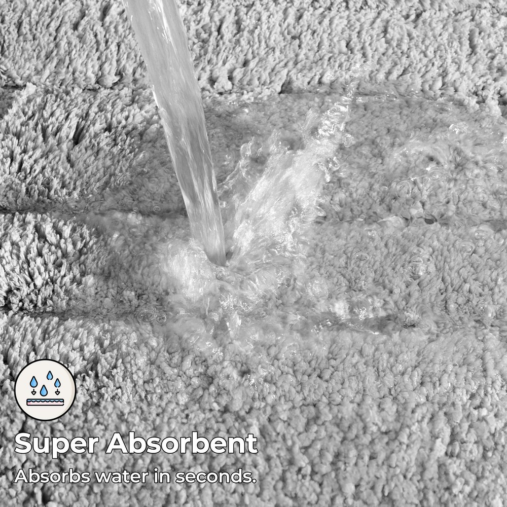 Ultra Absorbent - With its thick, plush, high-density microfiber, the bathroom mat is super absorbent and can quickly absorb water and moisture to keep your floors clean and dry. In just a few seconds, it will absorb as much water as possible from your wet feet. Non-Slip TPR Backing - The bath mat is made with a premium, skid-resistant thermoplastic rubber backing for added security and durability. Keep the bottom of the bath rug dry, as water under the bath rug can make it slip. Soft and Plush - The bath rug is densely tufted with ultra-soft microfiber. Its cloud-like, cut-pile surface provides warmth and comfort for your feet and helps relieve stress and fatigue. Multi-Purpose Use - The bathroom rug goes well with any decor style and is perfect for any part of your home, including single or double sinks, outside the shower or bathtub, or anywhere else in the bathroom, kitchen, bedroom, living room, door entry, stairs, balcony, laundry room, pet house, and more. Machine Washable - Machine wash the bathroom floor mat with cold water and mild detergent. Make sure the dryer is on low heat setting when tumble dry and keep away from chlorine and bleach. After professional testing, the color will remain vibrant after many washes.