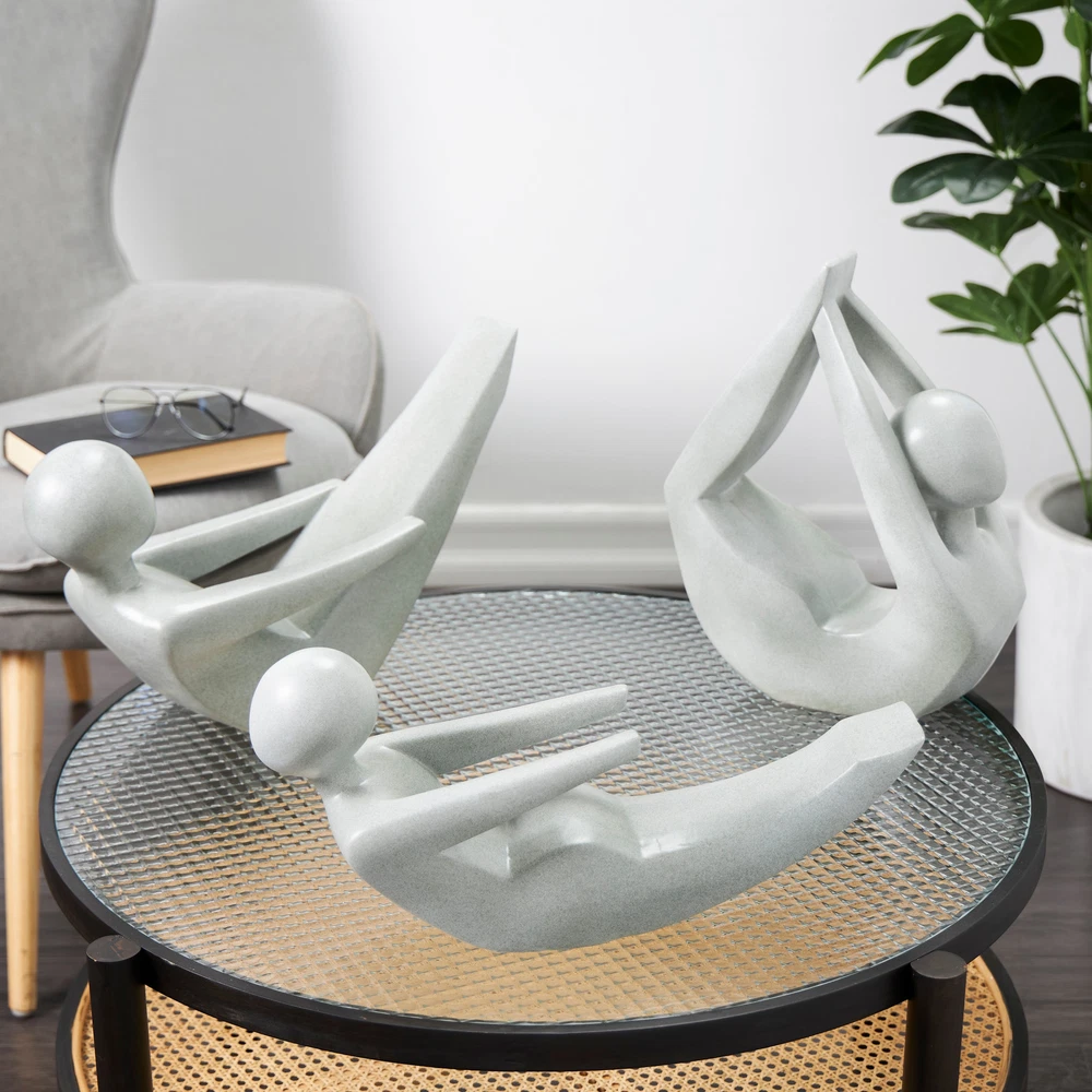 Perfect for adorning your living room table, this yoga set of 3 garden statues brings an artistic touch to your interior. Designed with felt or rubber stoppers at the base that prevent scratching furniture and table tops, as well as sliding around. This item ships in 1 carton. Resin garden sculpture makes a great gift for any occasion. Suitable for indoor and outdoor use. This item ships fully assembled in one piece. This gray colored resin garden statue comes as a set of 3. Eclectic style.Designed with a free-spirited charm where vibrant hues, eye-catching patterns, and whimsical accents transform your space and showcase your personalityCrafted from high-quality resin, this gray decorative garden sculpture set promises durability and long-lasting beautyThis yoga sculptural garden accents Free Shipping Over $49.99* Details Gray Resin Abstract Yoga Decorative Garden Sculpture with Various Poses (Set of Product Description: Perfect for adorning your living room table, this yoga set of 3 garden statues brings an artistic touch to your interior. Designed with felt or rubber stoppers at the base that prevent scratching furniture and table tops, as well as sliding around. This item ships in 1 carton. Resin garden sculpture makes a great gift for any occasion. Suitable for indoor and outdoor use. This item ships fully assembled in one piece. This gray colored resin garden statue comes as a set of 3. Eclectic style. Designed with a free-spirited charm where vibrant hues, eye-catching patterns, and whimsical accents transform your space and showcase your personality Crafted from high-quality resin, this gray decorative garden sculpture set promises durability and long-lasting beauty This yoga sculptural garden accents set boasts a sophisticated matte gray finish, lending an elegant and modern aesthetic to any space This resin set of 3 garden sculptures features a unique design of humans doing yoga, adding a touch of whimsy and personality to your decor Each gray resin garden sculpture measures 18.7L x 6.2W x 11.2H , 18.7L x 5.5W x 8.8H, 12L x 5.65W x 15.05H inches, and collectively weighs 10.195 lbs
