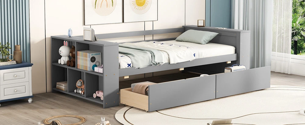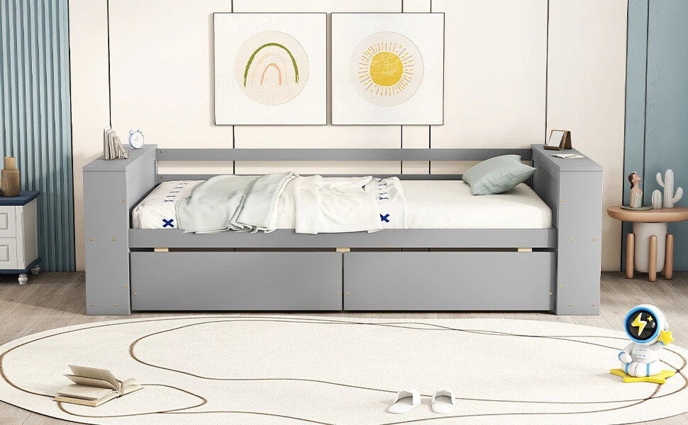 ☀Twin Size Daybed with Shelves and Drawers,Gray ☀【Description】Twin Size Daybed with Shelves and Drawers, Gray Enjoy sleeping and long naps on this modern and elegant sofa bed. Made of solid wood and MDF, this bed guarantees safety and stability, providing you with an extraordinary experience. The bed is designed with storage shelves on both sides, which is convenient and practical. 2 under-bed drawers for storing clothes, bedding and other items. Equipped with a hollow-free headboard, it can also be used as a double bed for children, and its compact design makes it suitable for any room, living room, bedroom, children's room, spare room, etc. Description Material Pine wood+MDF Size Twin Color Gray numbers of package 1 Spring box No... NEW Twin Size Daybed with Shelves and Drawers,Gray ☀Twin Size Daybed with Shelves and Drawers,Gray ☀【Description】Twin Size Daybed with Shelves and Drawers, Gray Enjoy sleeping and long naps on this modern and elegant sofa bed. Made of solid wood and MDF, this bed guarantees safety and stability, providing you with an extraordinary experience. The bed is designed with storage shelves on both sides, which is convenient and practical. 2 under-bed drawers for storing clothes, bedding and other items. Equipped with a hollow-free headboard, it can also be used as a double bed for children, and its compact design makes it suitable for any room, living room, bedroom, children's room, spare room, etc. Description Material Pine wood+MDF Size Twin Color Gray numbers of package 1 Spring box No need Assembly Required Yes Dimensions Overall Product Dimension 91.4''L*43''W*26.8''H Bed Dimension 76'' x 39.3'' Total height 26.8'' Number of Bed Slats 10pcs Overall Product Weight 115.5lb Bed Weight Capability 250lb Recommend mattress thickness of Bed 6-8'' ☀[Large Storage Space] Storage compartments on both sides and under-bed drawers provide plenty of storage space for everyday items. ☀[Minimalist Appearance] The minimalist look of this daybed can match the various styles of the bedroom. ☀Solid Construction] Made of high-quality solid pine wood and MDF with reliable construction, this daybed frame can last for long time use. ☀[No Box Spring Required] The wood slats support the mattresses not to slide and increase the service life. ☀[Easy Assembly] Each order comes with a clear and detailed assembly instruction guide and all necessary tools are provided to get your bed assembled in no time. Item Specifics Type Beds, Frames & Bases Color Gray Main Material Pine Item Length 80.31 in Item Width 13.58 in Item Height 9.25 in Weight 134.48 lbs Brand Unbranded Number of Items in Set N/A Set Includes N/A About us Dear buyer, Thank you for visiting my store! Our warehouses are located in many regions around the United States. According to the customer's delivery address. Use USPS/UPS/DHL logistics transportation service. Prioritize the best quality logistics solutions to transport packages. Ensure package delivery time, At the same time. Have any after-sales problems, Feel free to contact us. At your service Payment PayPal is our preferred method of payments it's the quickest, easiest and most secure way to pay for your goods or services online. PayPal offers buyer and seller protection should there be a problem. If you do not have a PayPal account, to get started and buy your first item with us is very easy. Simply click on the 'Buy It Now' button and follow the eBay checkout steps. Select PayPal as the payment method you then will be given the chance to enter your card details in to PayPal's secure checkout in order to pay for your order. Shipping 1. Your purchase is shipped directly to you as soon as we have received your cleared payment. 2. Normally all of parcels would be shipped within 3days(From Monday to Saturday). 3. We will send information on eBay or email if the parcel was delayed due to our holiday. 4. We provide three kinds of shipping for choice. Shipping way depend on delivery address. Returns If an unit is received defective, of course we take it back or replace it. If the unit is received as expected, we must charge for our expenses if you want to send it back. We have to charge for the work of handling, retesting and restocking. DESCRIPTION PAYMENT SHIPPING RETURN POLICY CONTACT US Shop Category Store Home Home & Garden ▷ Furniture ♢ Primary Living Space Other Hot Item 17" Dually Steel Wheel for 2005-2022 Ford F350 Super Duty Replaces#560-03615 USD 196.20 Front Door Lower Molding Right Passenger Side for Hyundai Tucson 1.6 2.5L 2022- USD 72.40 Spiral Cable Clock Spring Fit Toyota Highlander Tundra Tacoma RAV4 CAMRY LEXUS USD 14.20 2Pcs Rear Suspension Shock w/ ADS Strut For Mercedes-Benz W166 GL550 ML550 2013 USD 172.00 Fuel Tank Sending Unit for Ford F-350 F-450 F-550 1999-2003 F81Z9275DB FG295A P USD 96.20 Picture New List Item NEW TV Stand for TV´s up 60",Double Door Cabinets,One Flexible Cabinet,Dark Waln USD 234.00 NEW Lyon Tv Stand for TV´s up 55",One Cabinet,Double Door -Dark Walnut USD 187.00 NEW Lyon Tv Stand for TV´s up 55",One Cabinet,Double Door-Dark Walnut USD 181.00 NEW Tv Stand for TV´s up 55" Dext,One Cabinet,Double Door,Dark Walnut Finish USD 207.00 NEW FurnisHome Store Mid Century Modern Tv Stand 4 Shelves Open Storage Entertai USD 190.00 Help & Info Payment Policy Shipping Policy Return Policy FAQ About Us NEW Twin Size Daybed with Shelves and Drawers,Gray ☀Twin Size Daybed with Shelves and Drawers,Gray ☀【Description】Twin Size Daybed with Shelves and Drawers, Gray Enjoy sleeping and long naps on this modern and elegant sofa bed. Made of solid wood and MDF, this bed guarantees safety and stability, providing you with an extraordinary experience. The bed is designed with storage shelves on both sides, which is convenient and practical. 2 under-bed drawers for storing clothes, bedding and other items. Equipped with a hollow-free headboard, it can also be used as a double bed for children, and its compact desi