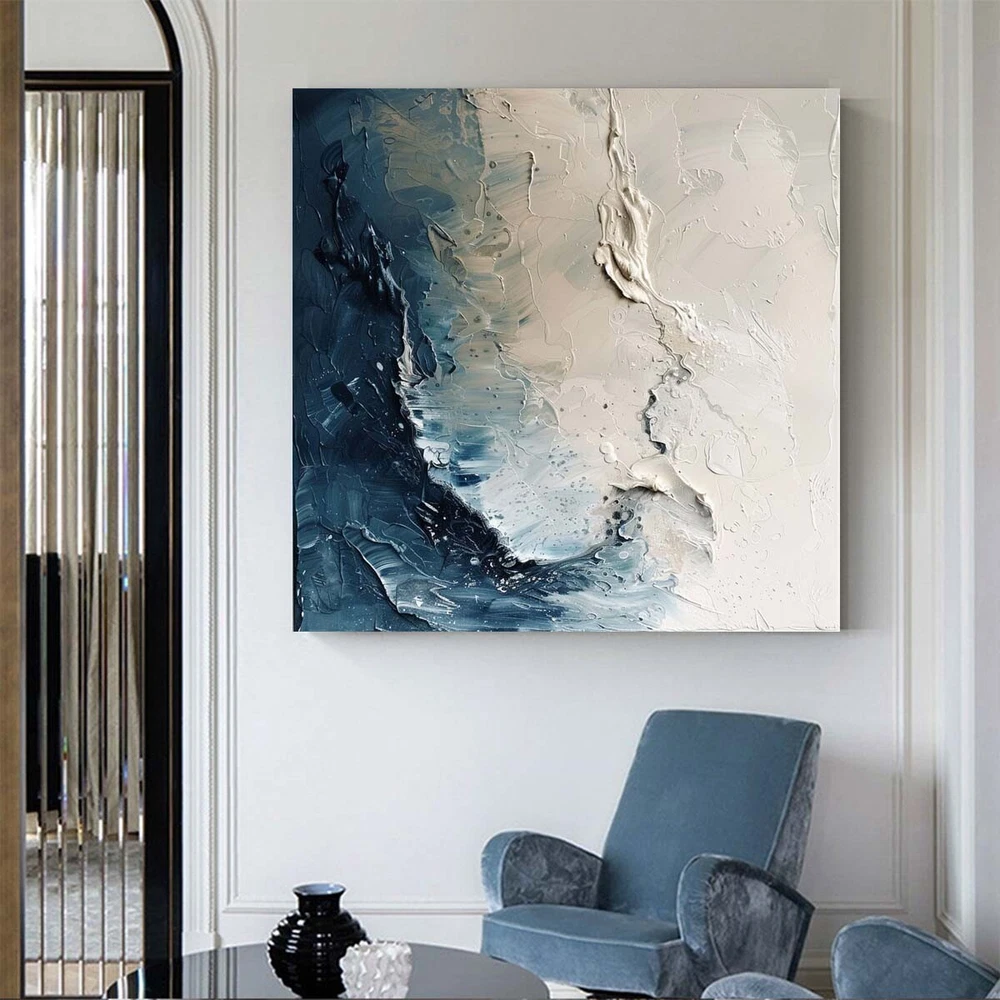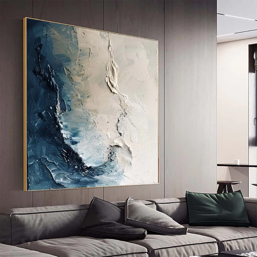 Gray sea Modern Handmade Abstract Oil Painting on canvsa Living Room blue