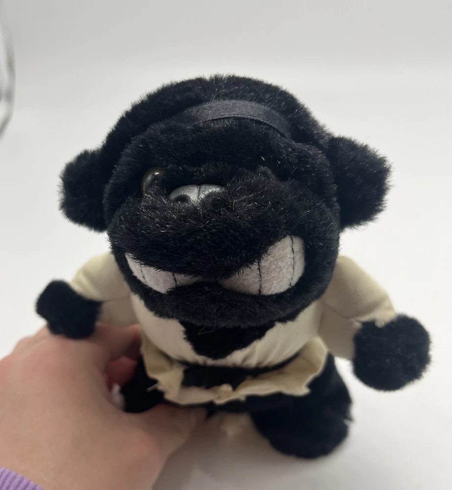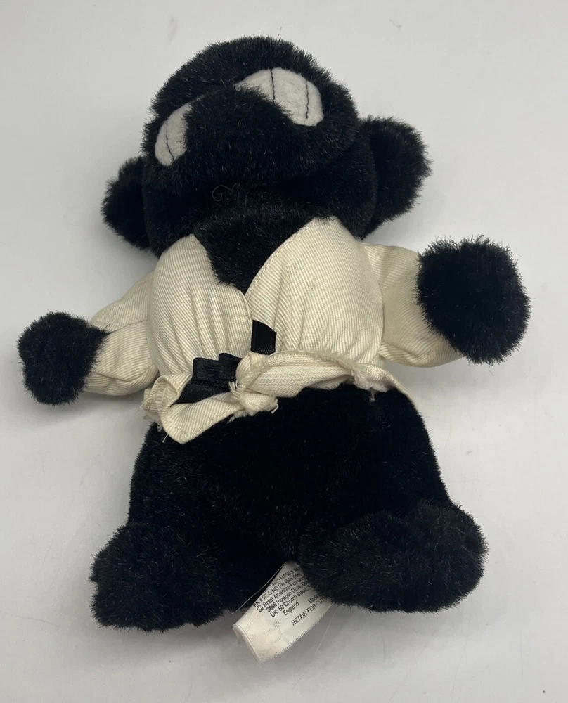 This Great American Fun Corp Black Shadow Nightmare Martial Arts Karate 6” Monkey is a must-have for any stuffed animal lover. With its unique design and attention to detail, this hybrid animal is sure to capture the hearts of many. Made in China, this small plush toy features a black and white color scheme and is part of the Karate character family. Perfect for kids and adults alike, this toy is sure to bring joy to anyone who adds it to their collection. Monkey unfortunately produces no sound.