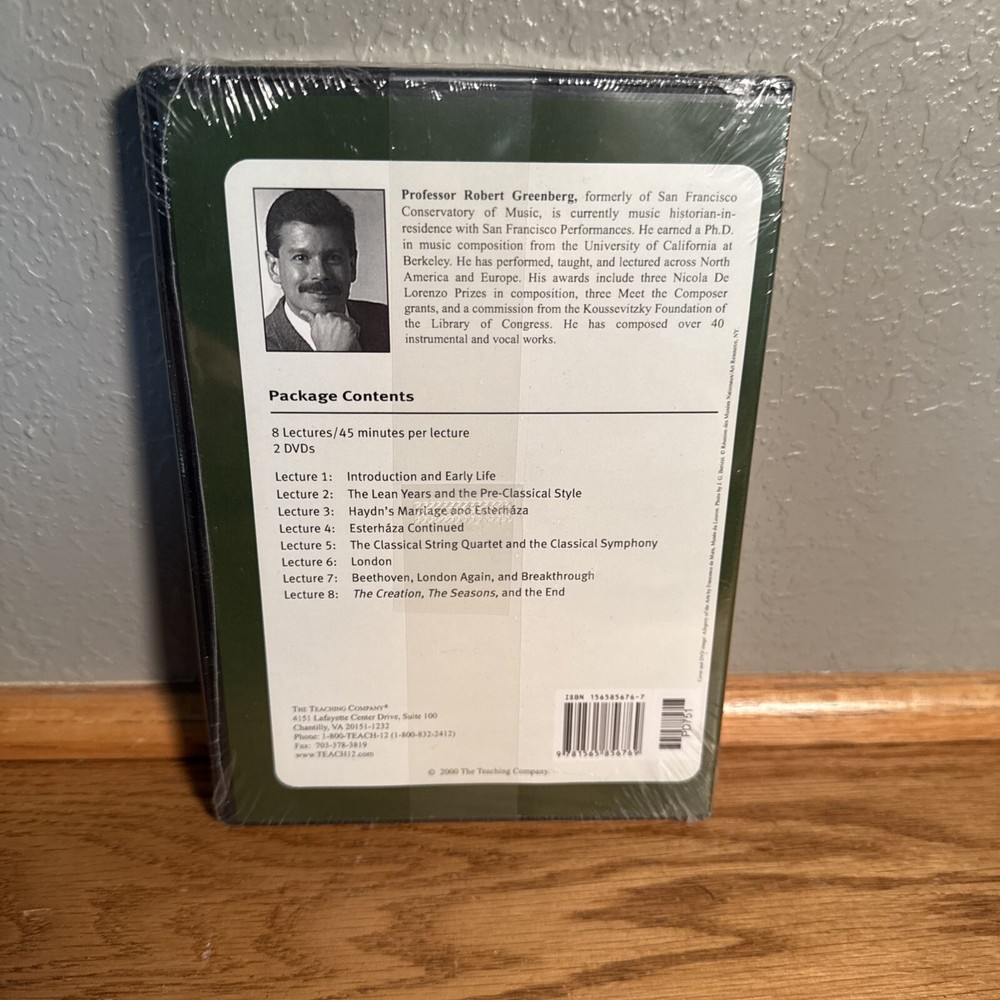 The product is a Hardcover DVD set titled "The Great Courses Great Masters Haydn His Life and Music," authored by Robert Greenberg. It focuses on the biography and music of composer Joseph Haydn and is published by Teaching Company, LLC, T.H.E. The set includes a guidebook and is part of the "Great Masters" series.
