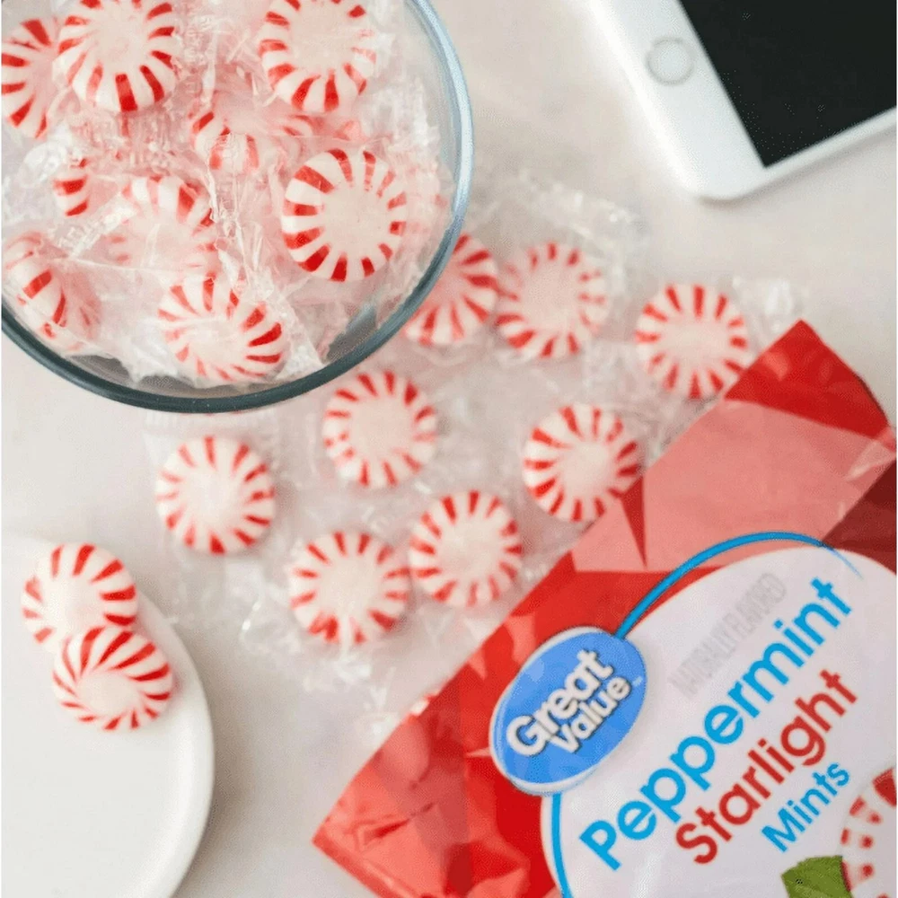 About this item Nutrition information Product details Great Value Peppermint Starlight Mints Hard Candy, 60 oz Peppermint 60oz Specifications Food Allergen Statements Contains bioengineered food ingredients Brand Great Value Allergen-Free Statements Gluten-Free