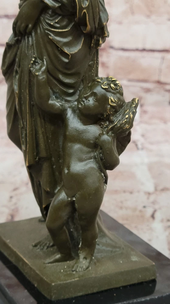 Greek Goddess Venus with Cupid Bronze Statue Sculpture Signed Classic Roman Figu Greek Goddess Venus with Cupid Bronze Statue Sculpture Signed Classic Roman Figu Condition : This sculpture is in perfect condition. Bronze Dimensions with Marble Base: Height 11" X Width 5.5" Marble Dimensions:5.5" X 4" Height without base:10" Weight:6 LBS Inventory:17GTS2076671 This elegant bronze sculpture captures the timeless beauty of Venus, the Roman goddess of love, accompanied by Cupid, her playful and mischievous son. Venus is portrayed with classical grace, her flowing form embodying both femininity and divine allure. Beside her, Cupid clings affectionately, adding charm and emotional depth to the composition. Handmade using the traditional lost wax method, this piece reflects exceptional craftsmanship and artistic sensitivity. The rich brown patina adds warmth and enhances the fine detailing in their hair, drapery, and expressions, bringing the mythological figures vividly to life. Signed by Jean Patoue, the sculpture is securely mounted on a polished black marble base, offering a striking contrast and a touch of sophistication. This captivating piece is perfect for lovers of classical mythology, fine art, or those looking to add a romantic and elegant focal point to their space. Signed Original Jean Patoue Venus with Cupid Bronze Sculpture Hand Made Video will open in a new window Using the eBay App? Paste link into a browser window: [isdntekvideo] Shipping Terms : Most of our items are shipped via USPS (United States Postal Service) mail or UPS. Most orders are shipped within 24-48 hours of purchase. Please be aware that not all items are available for USPS shipping due to size and weight. We do ship to Hawaii, Alaska, Canada, Puerto Rico, APO/AE, and U.S. Virgin Islands, however, an additional charge may be required. Please contact us before making any purchases in these areas. For Non-USA customers, you may be responsible for all duty, tax, brokerage fees that may be due upon delivery (shipping costs cover freight charges only). We also ship internationally. Please refer to the "Shipping and Handling" chart for the rates for each area. Payment : We accept just about any form of payment. PayPal, Master Card, Visa or American Express credit cards. Money orders, cashiers checks, and even personal or business checks. For governmental institutions, we will also accept a purchase order. Please understand that for personal or business checks we have to wait for the check to clear (usually 7 days) before shipping. Condition : New Detailed Hand Crafted Hot Cast Bronze Satisfaction Guaranteed. This is Stock Photo, Slight Color Variation!! Listing and template services provided by inkFrog
