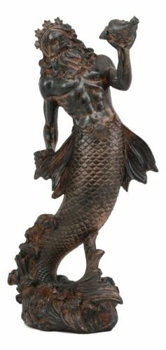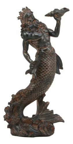 • This Poseidon Holding Conch Statue stands 10.25" tall, 5" long and 3.25" deep approximately. It weighs about 1 pound. • This Poseidon Holding Conch Statue is made of designer composite resin, hand painted and polished individually. • In Greek mythology, Poseidon was the god of the sea, as well as of horses and of earthquakes. Poseidon was a major civic god of several cities: in Athens, he was second only to Athena in importance; while in Corinth and many cities of Magna Graecia he was the chief god of the polis. • Poseidon was seen as creating new islands and offering calm seas. When offended or ignored, he supposedly struck the ground with his trident and caused chaotic springs, earthquakes, drownings and shipwrecks. • This is an Ebros exclusive collection. Coke can placed next to the statue is not included with the listing. It is meant to provide size perspective of the item. Ebros Greek Mythology God of The Seas And Tremors Merman Poseidon Statue Neptune Decor Video will open in a new window Using the mobile app? Copy this link into your browser: