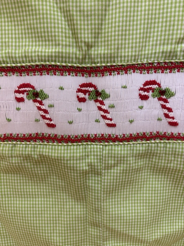 Green And White Checkered Smocked Christmas Romper, Size 24 Months